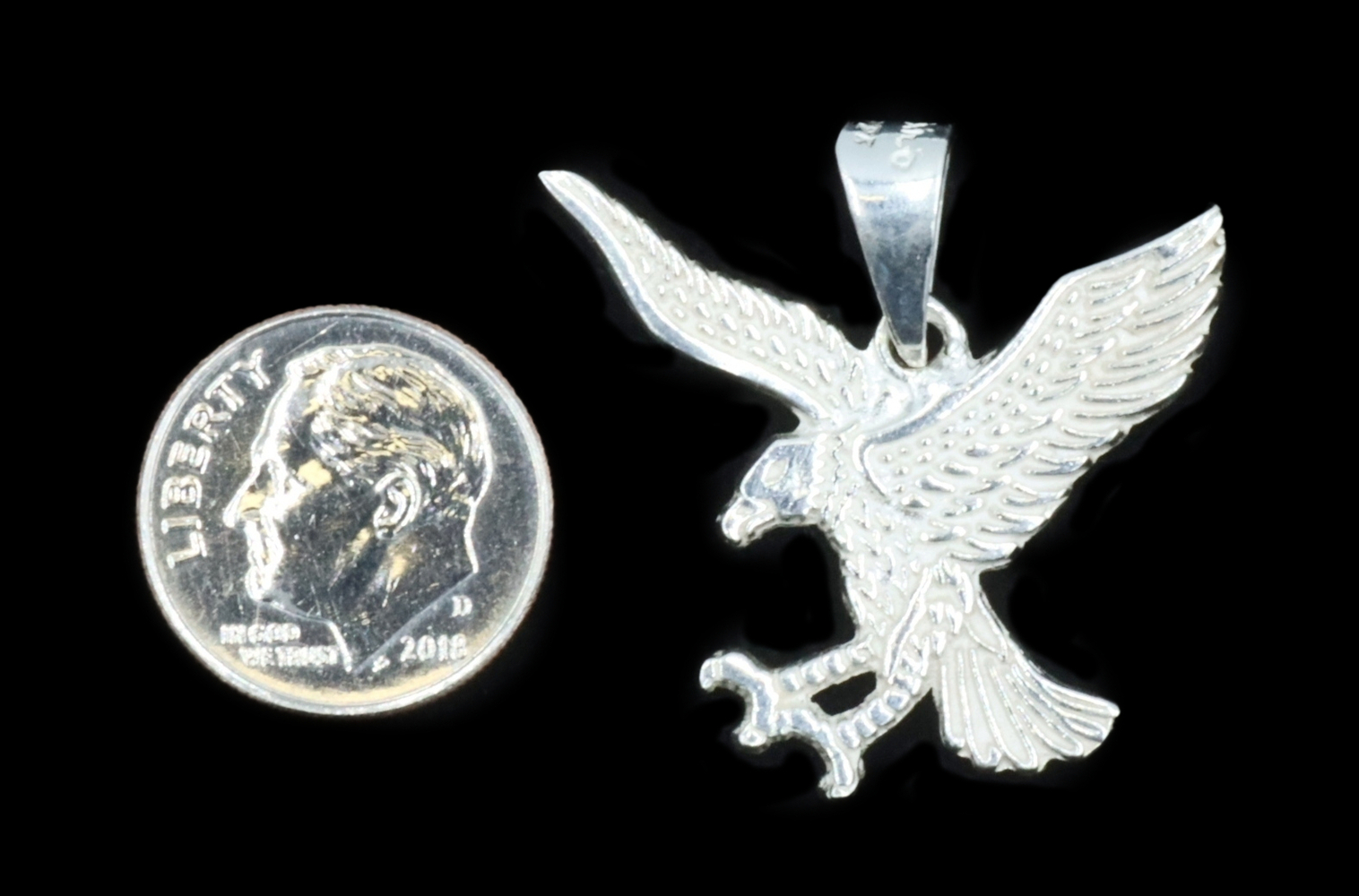 1.2" Sterling Silver 925 Soaring Eagle Detailed Estate Necklace Pendant 3.6g | USA Pawn