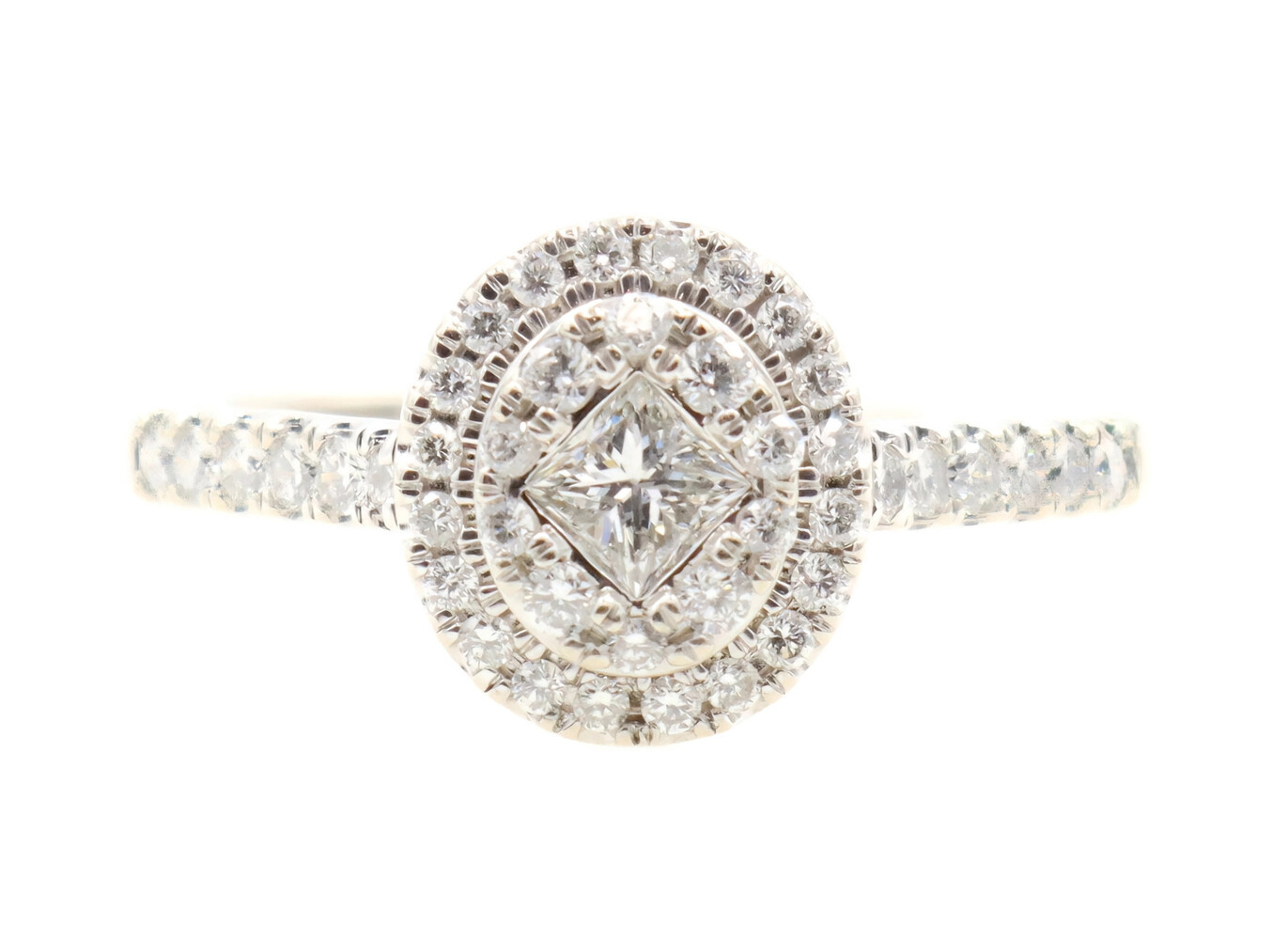 1.22 Ctw Princess & Round Diamond 14KT White Gold Oval Double Halo Wedding Set | USA Pawn