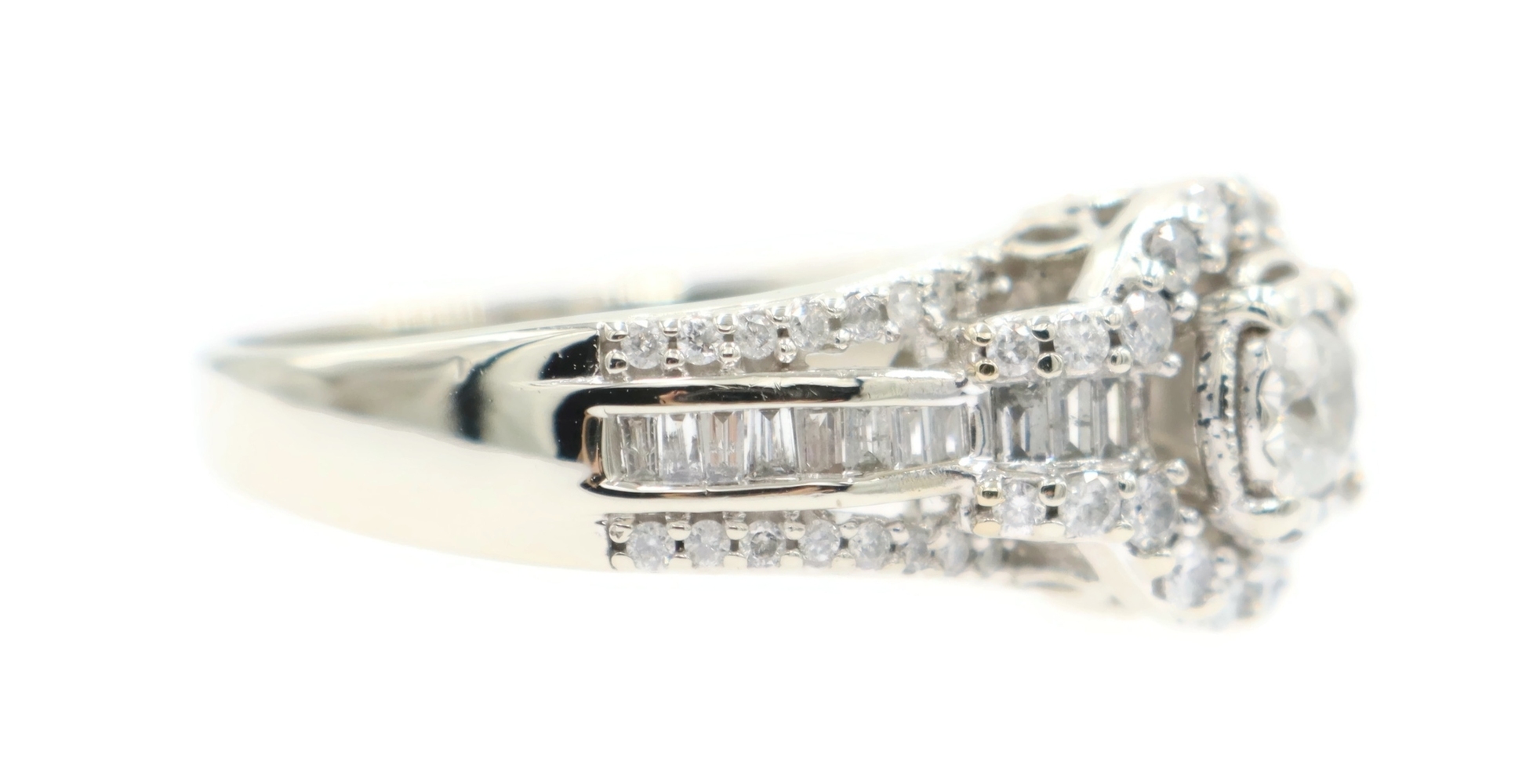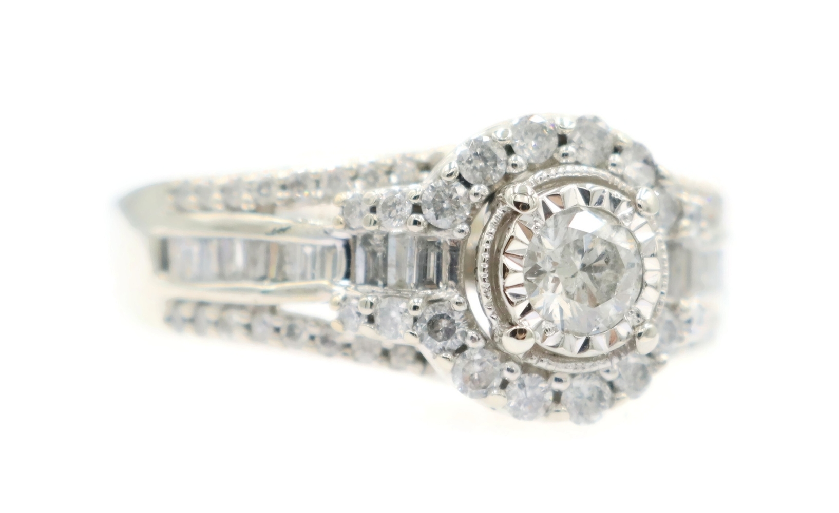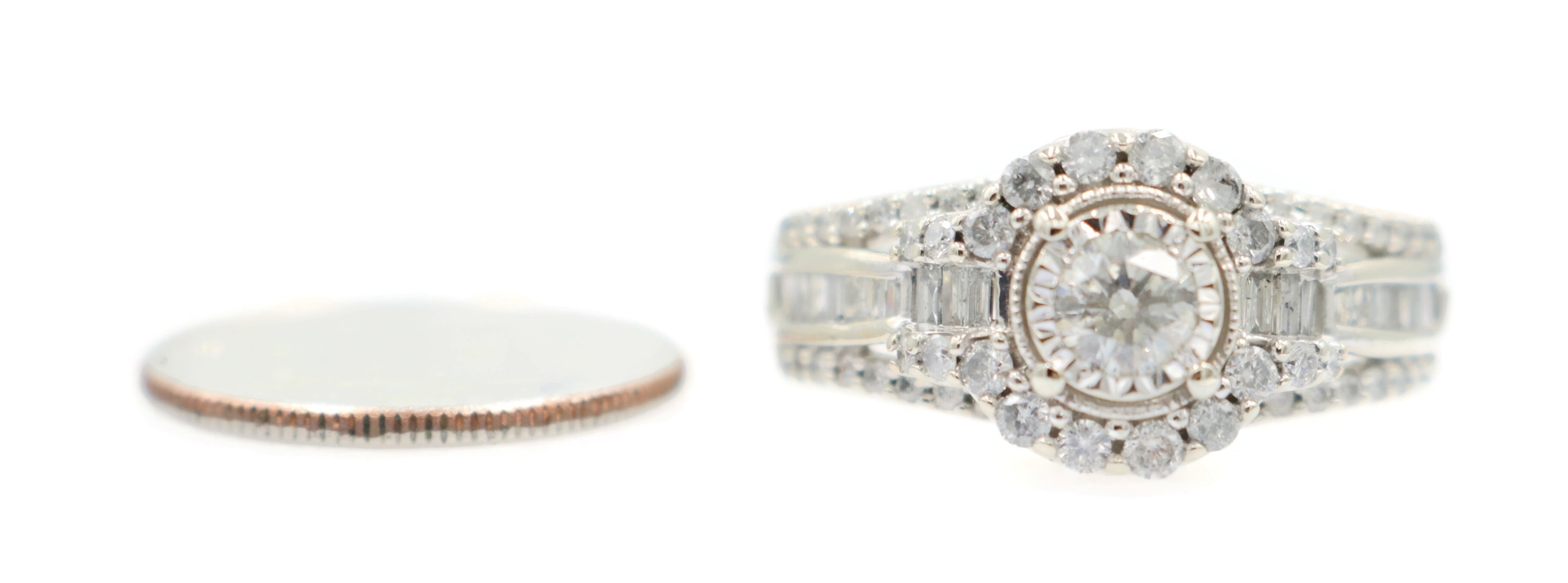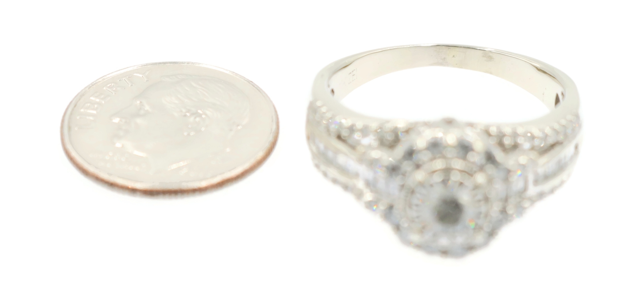 1.30 Ctw Round & Baguette Diamond 10KT White Gold Halo Engagement Ring 5.8g ZEI | USA Pawn