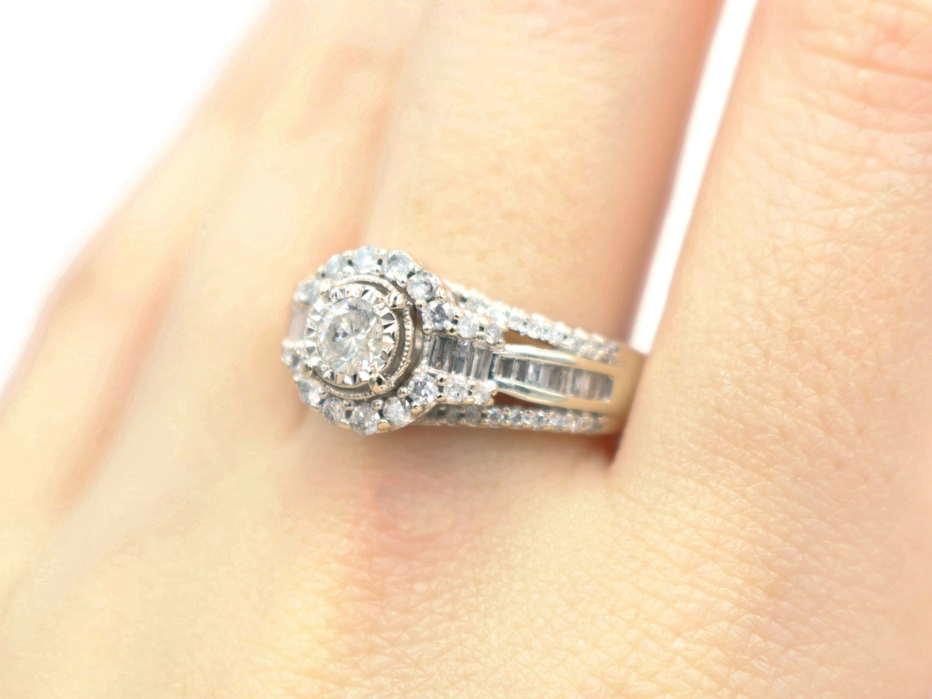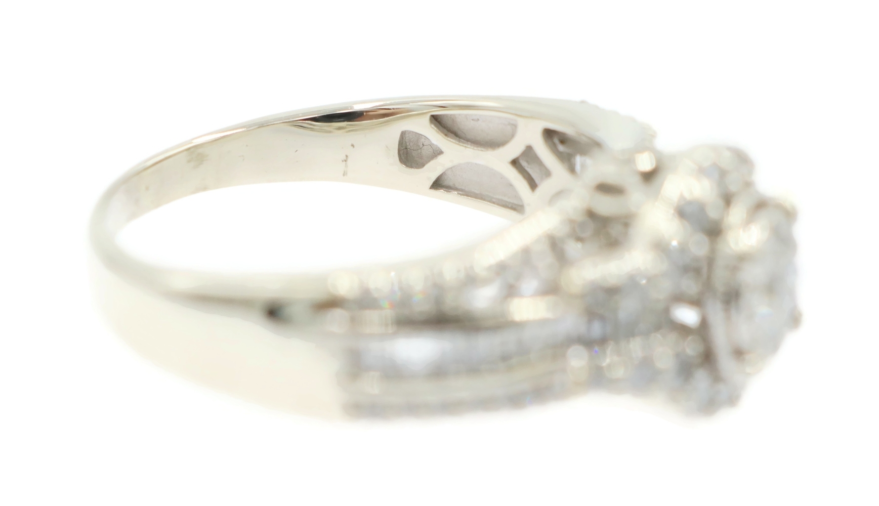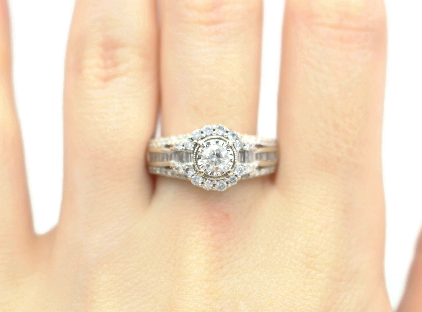 1.30 Ctw Round & Baguette Diamond 10KT White Gold Halo Engagement Ring 5.8g ZEI | USA Pawn