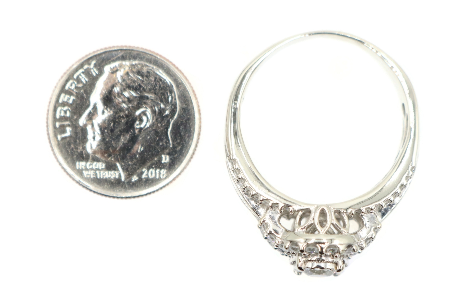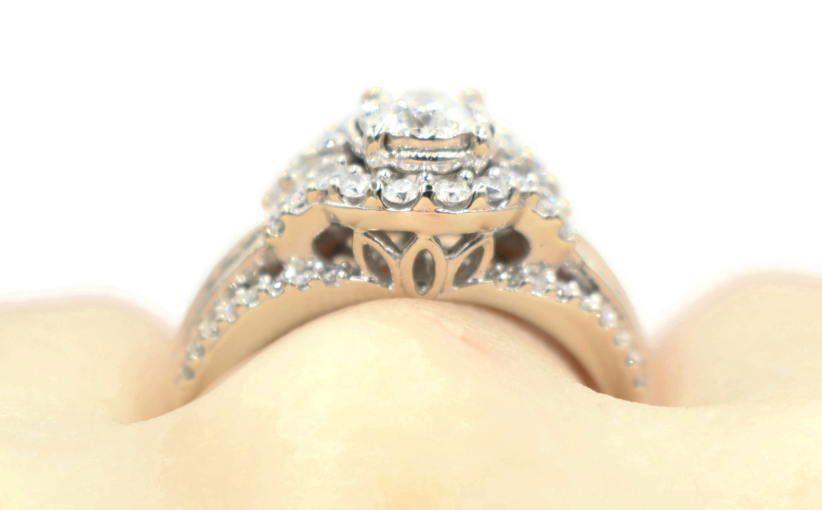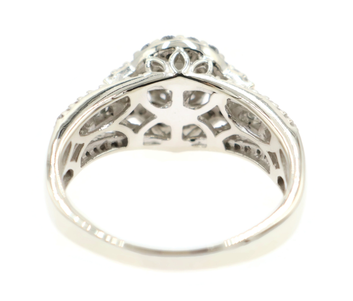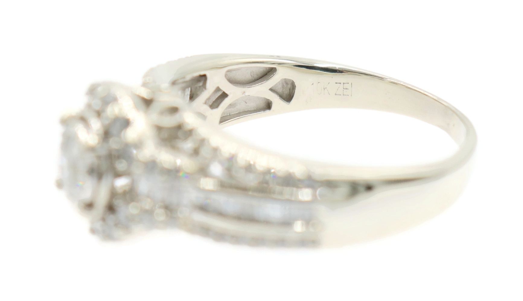 1.30 Ctw Round & Baguette Diamond 10KT White Gold Halo Engagement Ring 5.8g ZEI | USA Pawn
