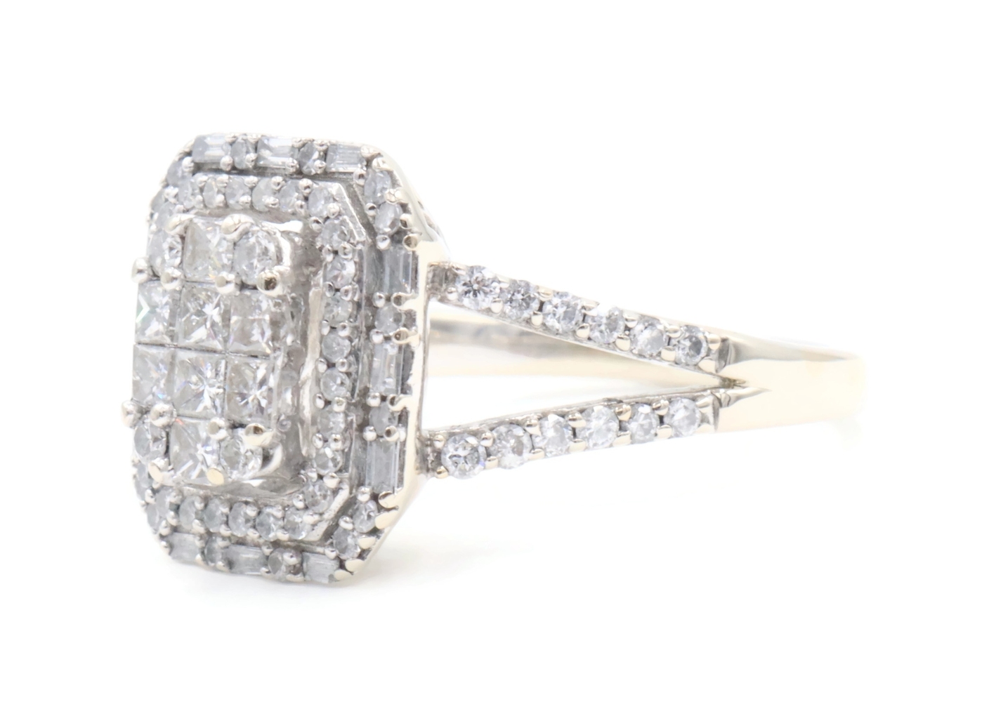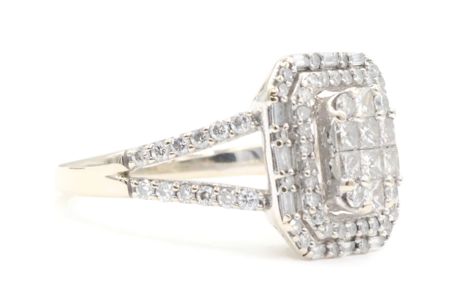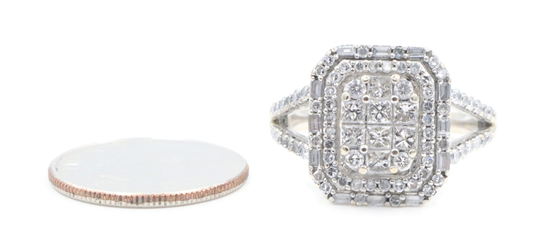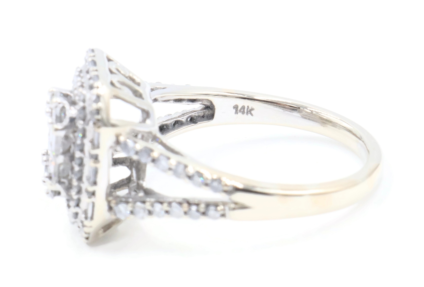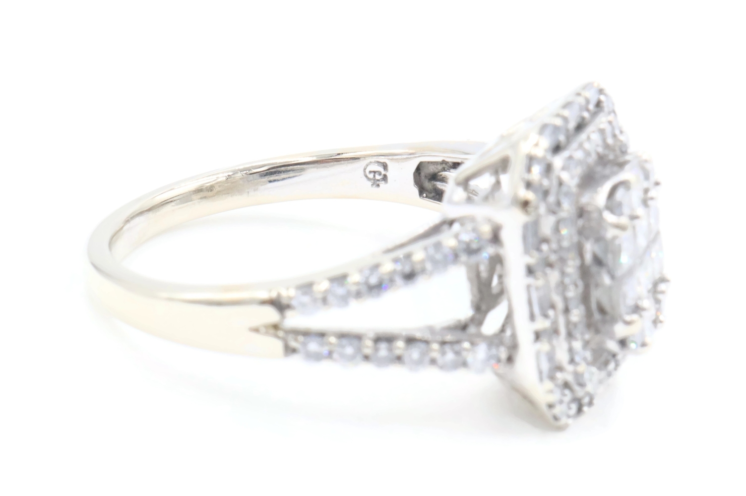 1.32 Ctw Princess, Round & Baguette Diamond 14KT White Gold Double Halo Ring CT. This ring is a size 7.