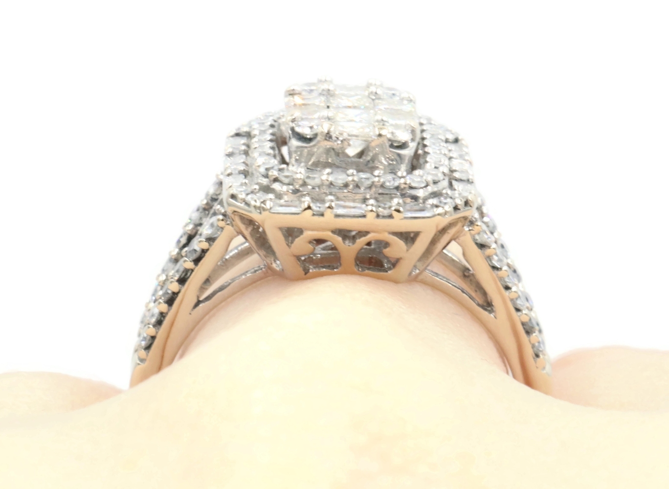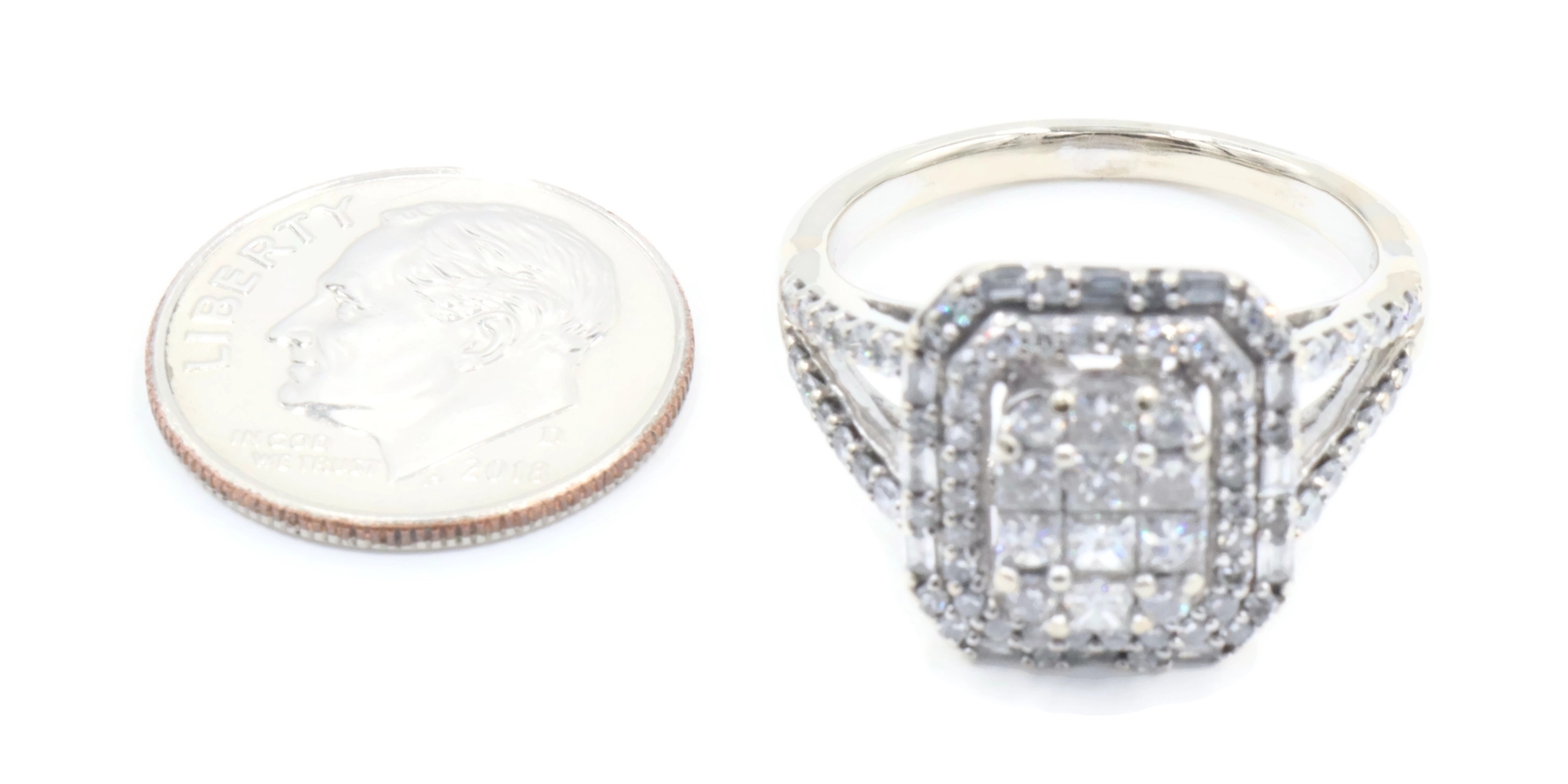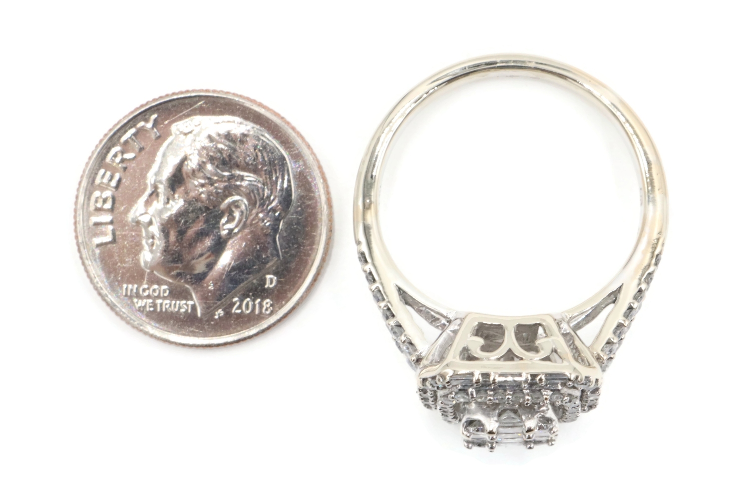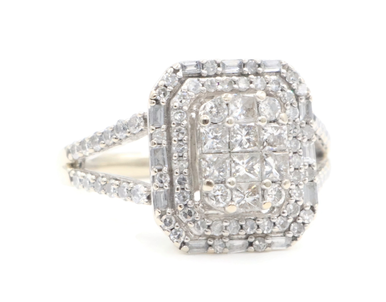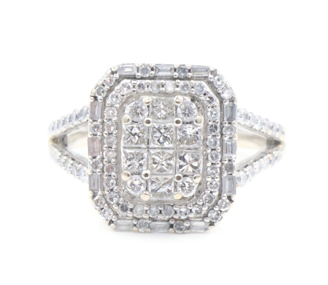 1.32 Ctw Princess, Round & Baguette Diamond 14KT White Gold Double Halo Ring CT. This ring is a size 7.