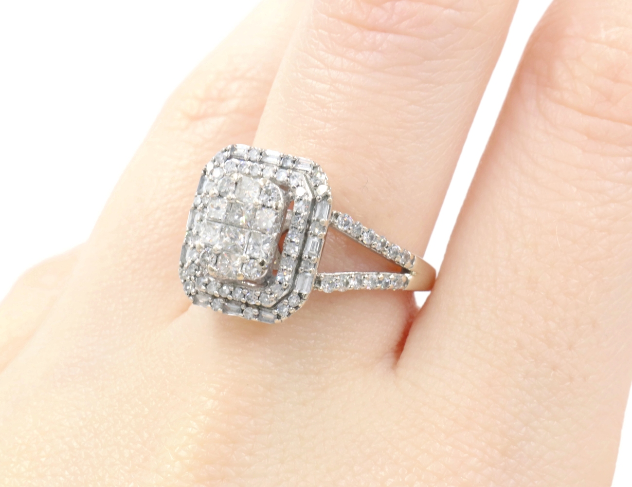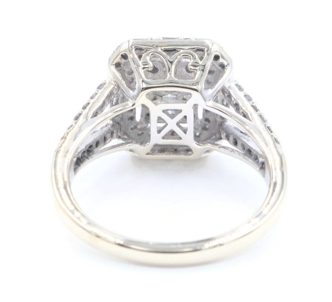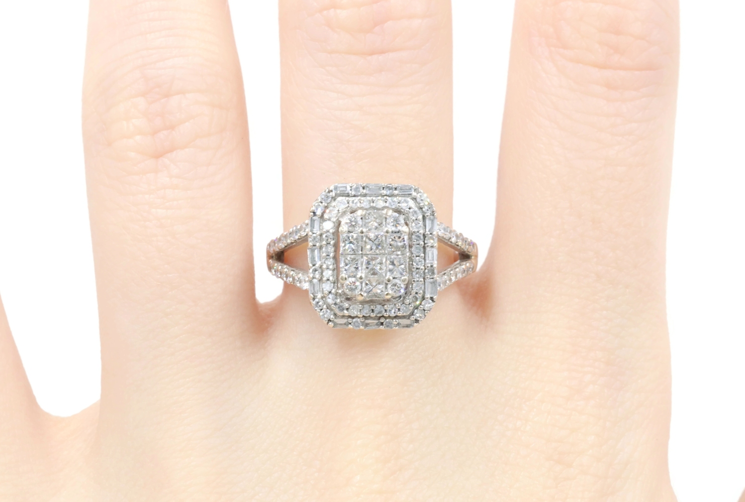 1.32 Ctw Princess, Round & Baguette Diamond 14KT White Gold Double Halo Ring CT | USA Pawn