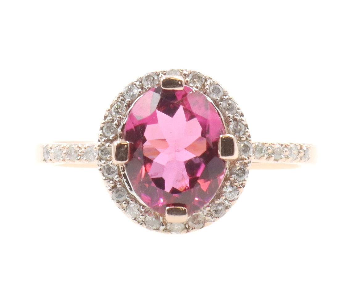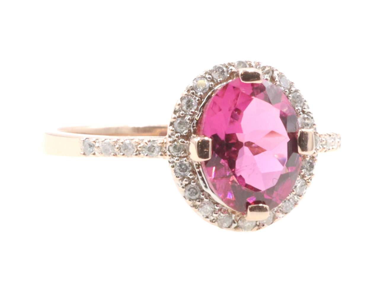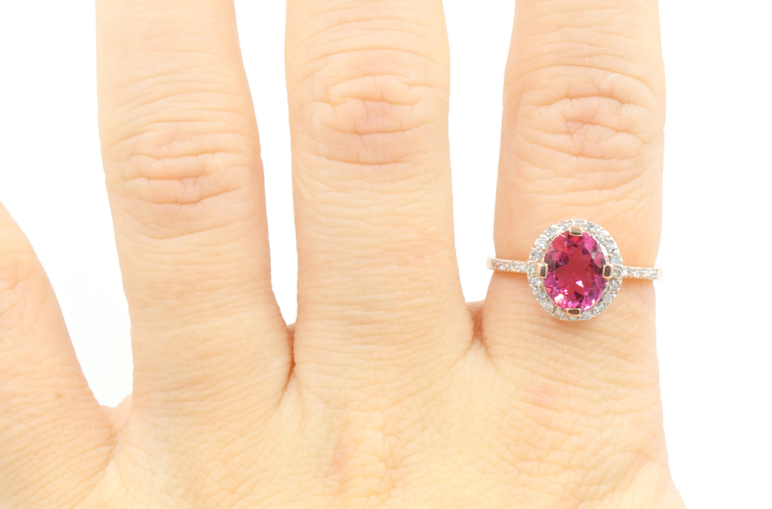 1.35 ctw Oval Pink Tourmaline & 0.30 ctw Round Diamond 14KT Rose Gold Halo Ring | USA Pawn