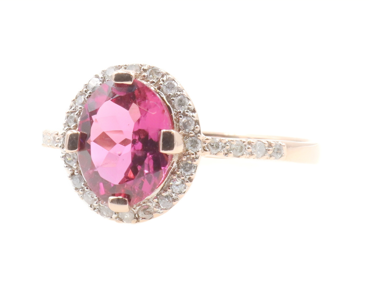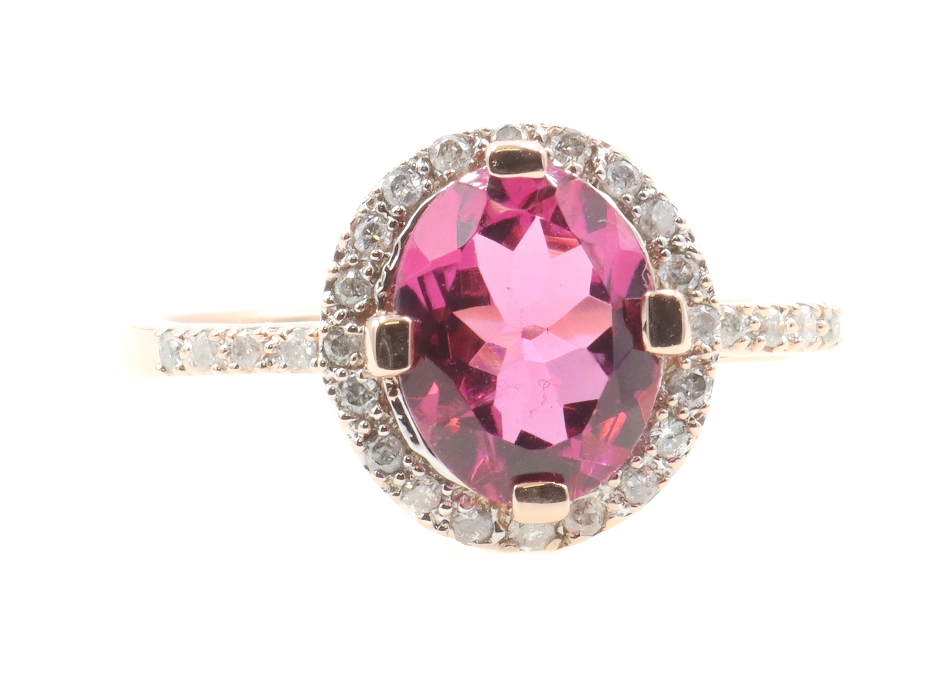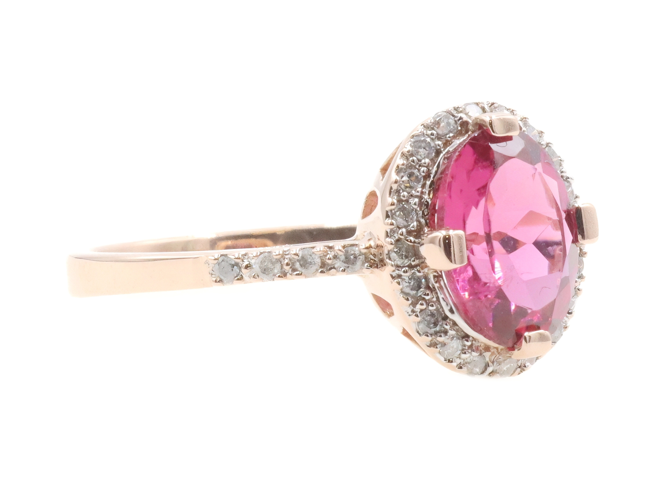 1.35 ctw Oval Pink Tourmaline & 0.30 ctw Round Diamond 14KT Rose Gold Halo Ring | USA Pawn