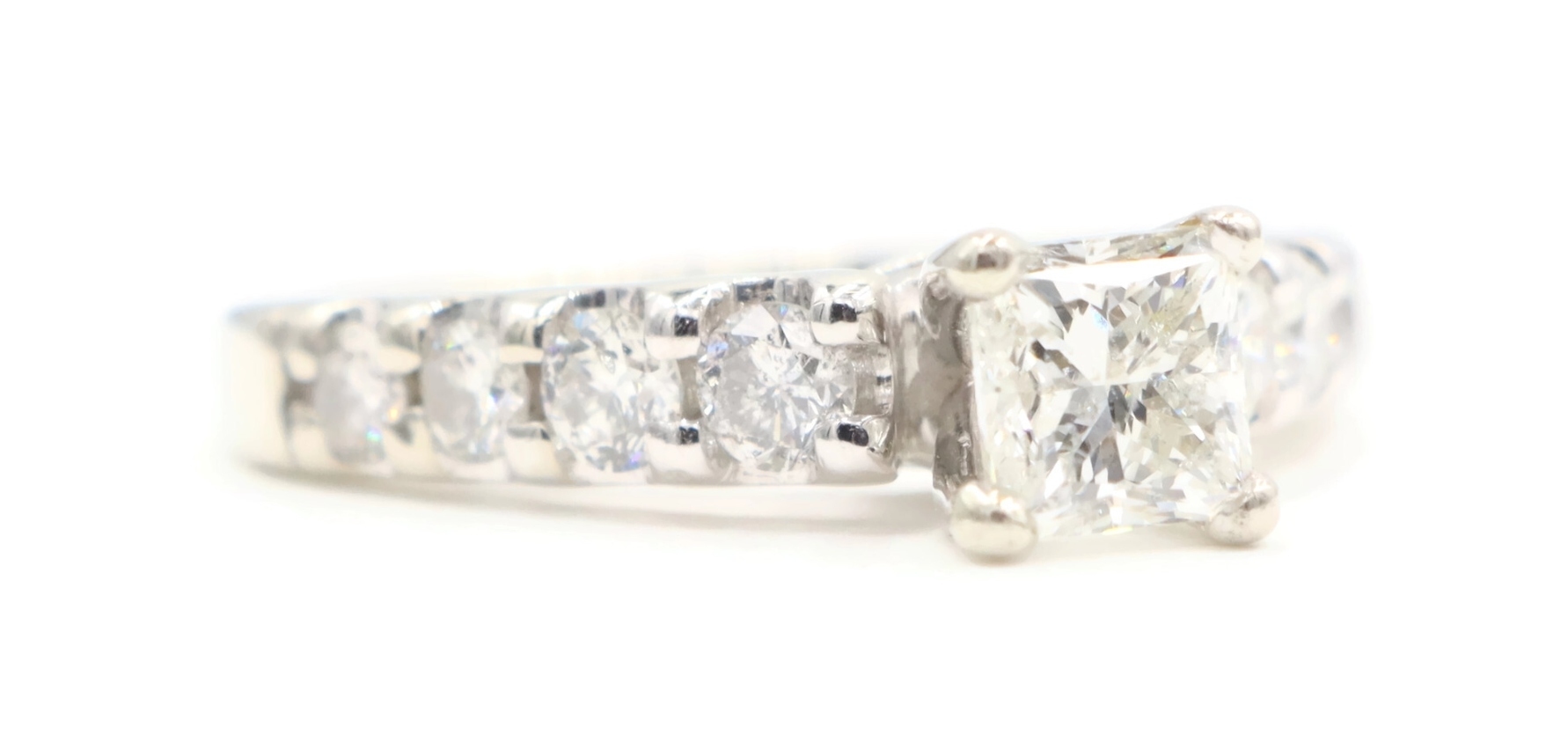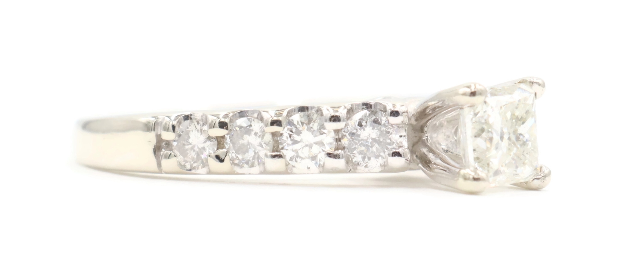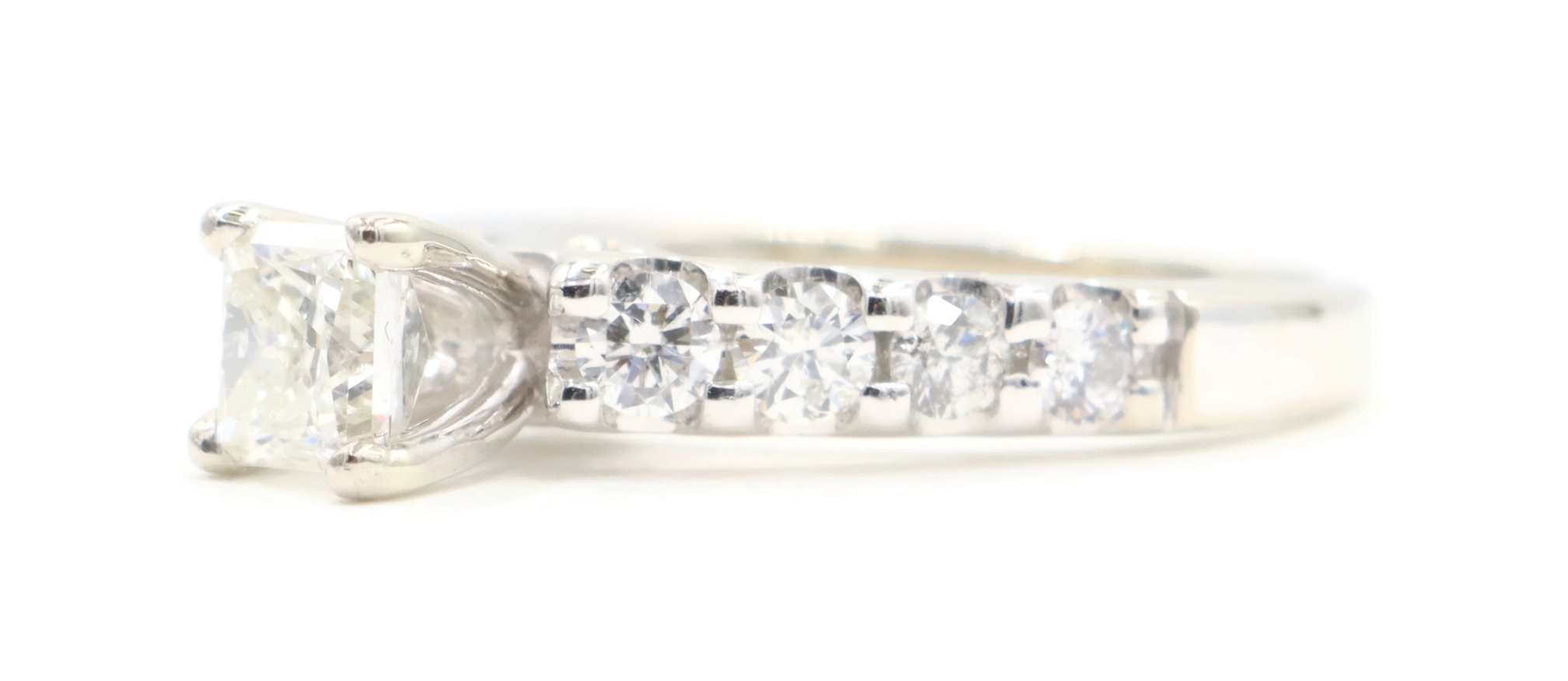 1.37 Ctw Princess & Round Diamond 14KT Gold Semi-Eternity Engagement Ring F.D. This ring is a size 7.