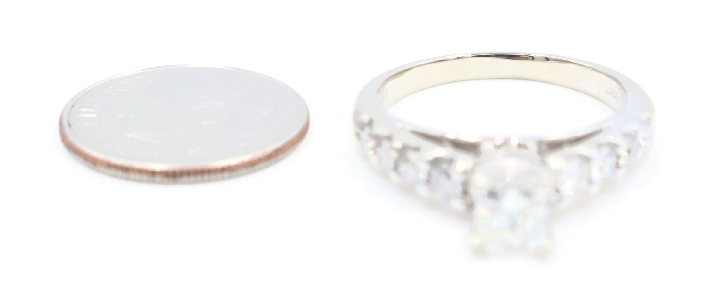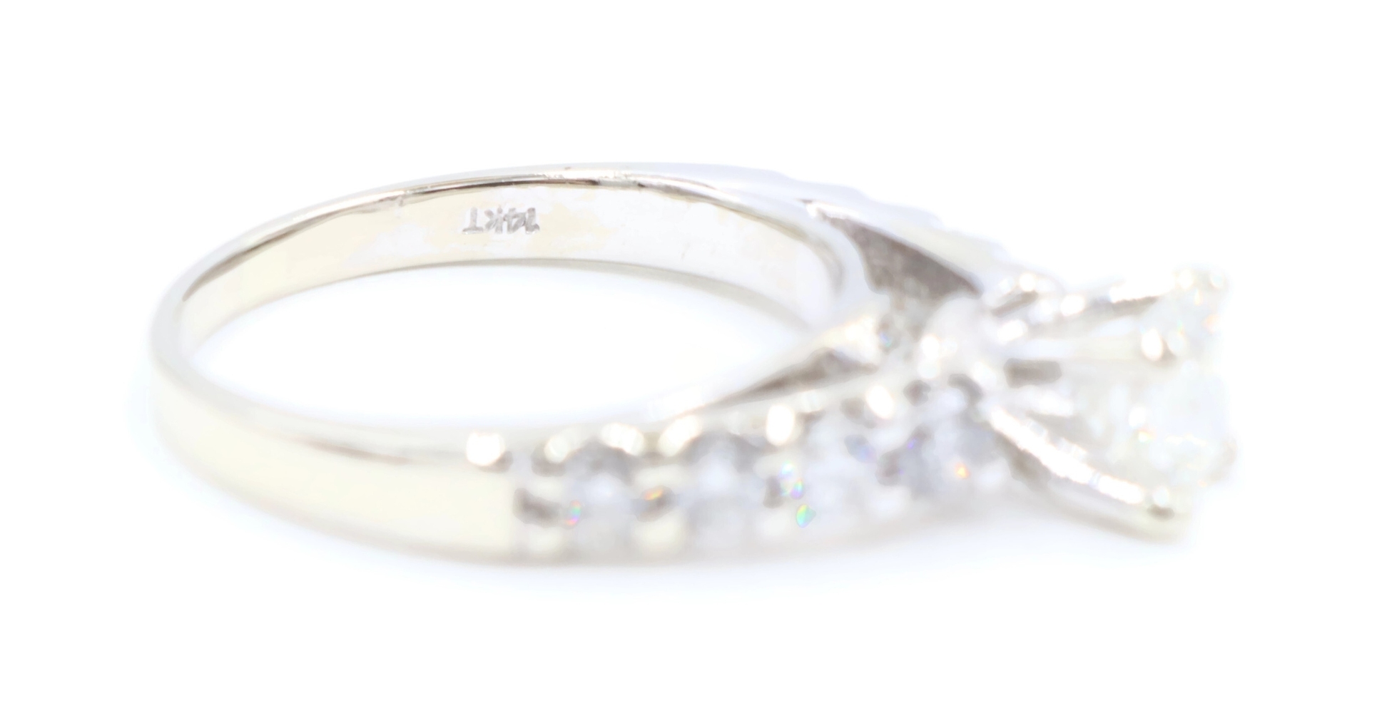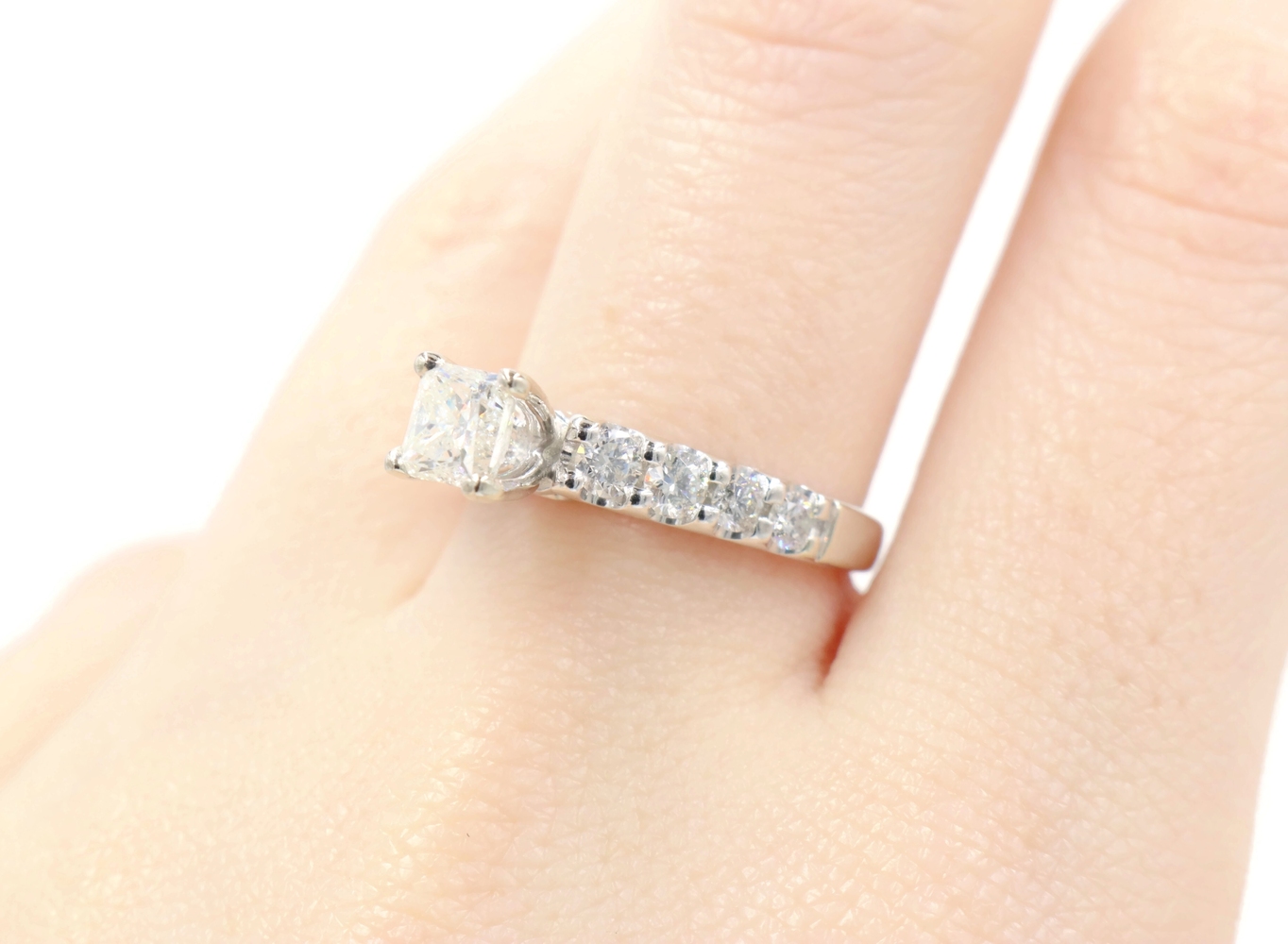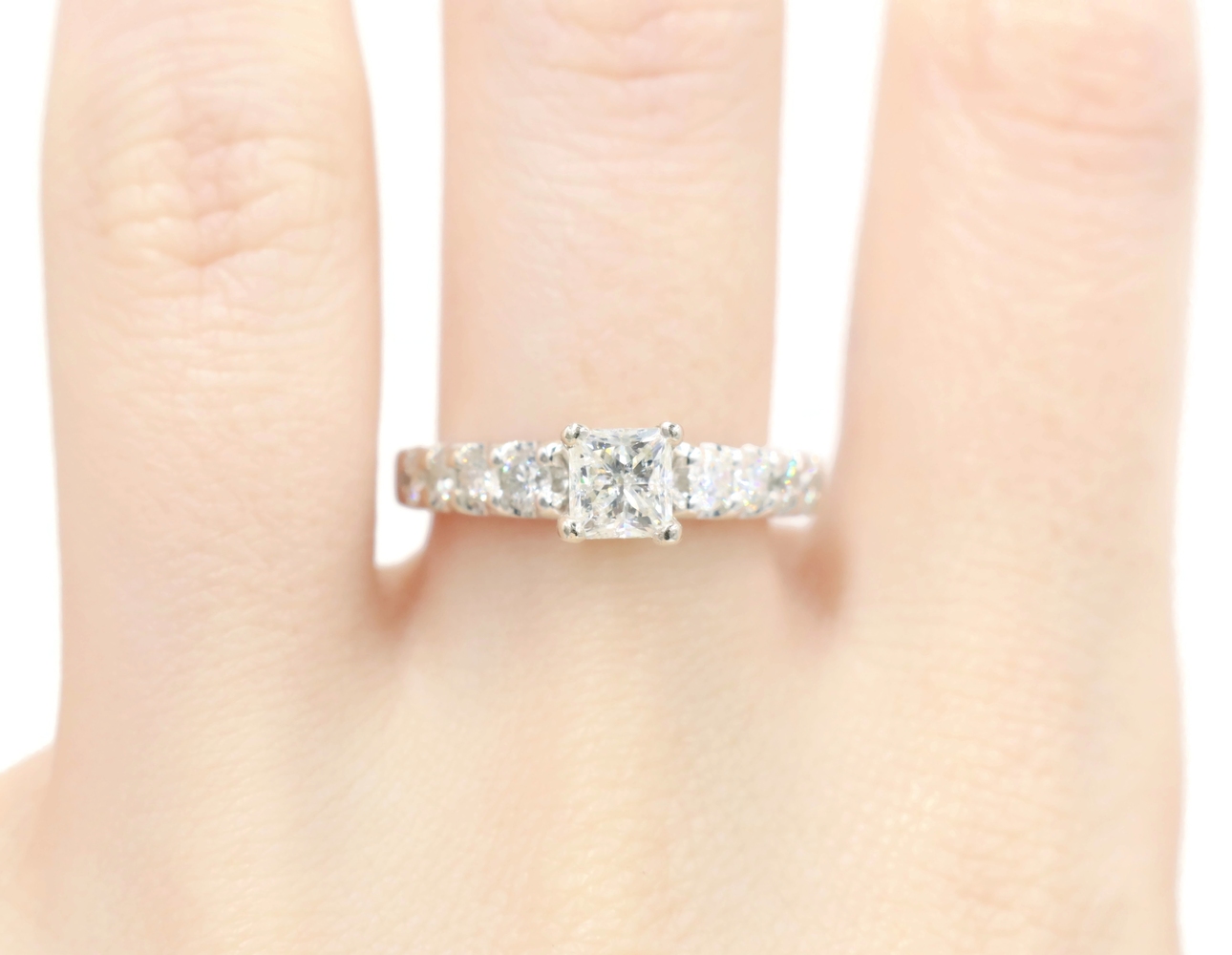 1.37 Ctw Princess & Round Diamond 14KT Gold Semi-Eternity Engagement Ring F.D. This ring is a size 7.