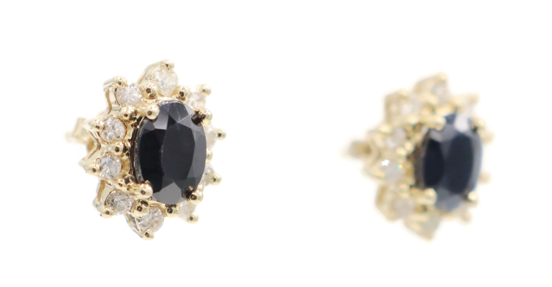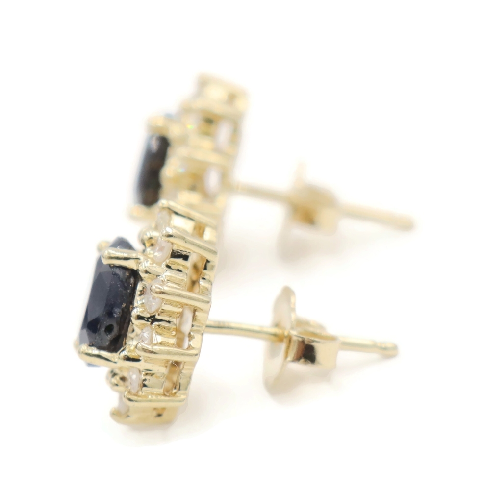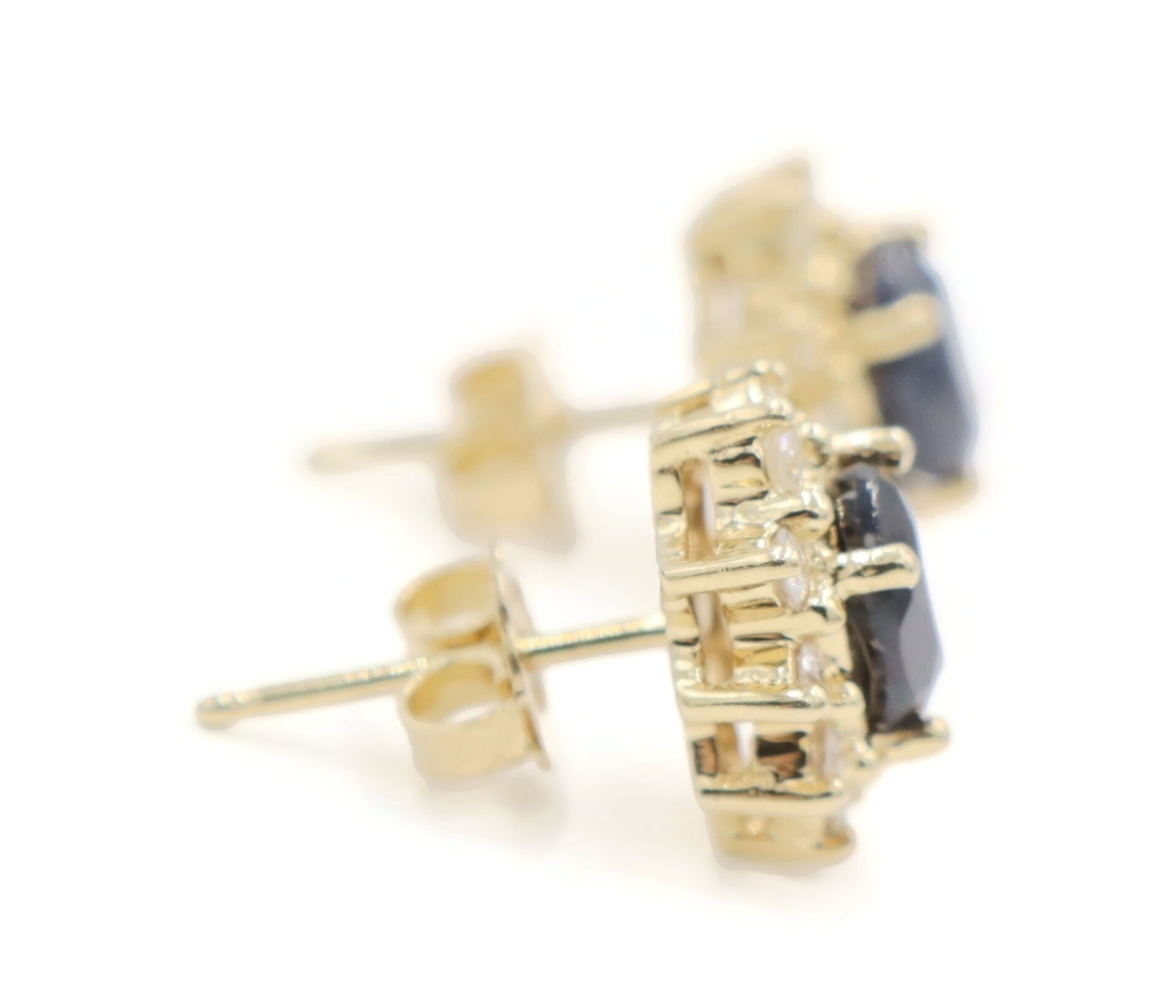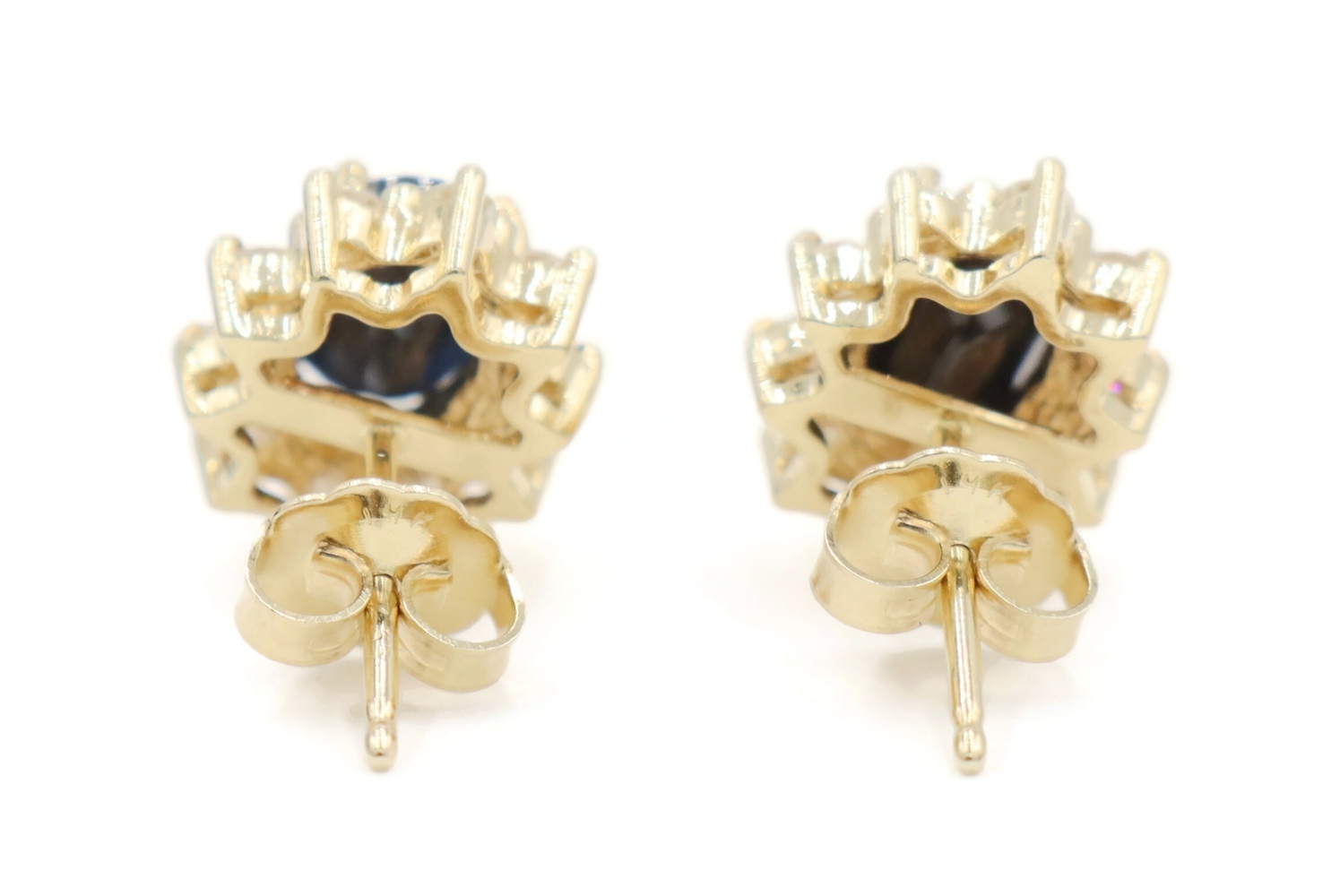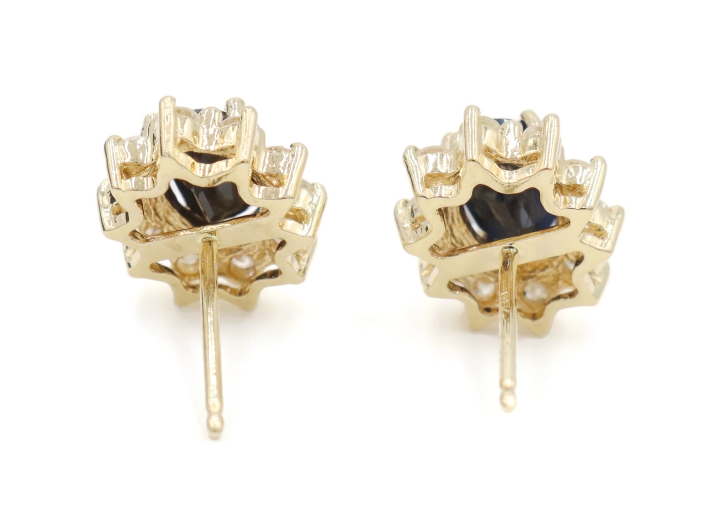 1.40 Ctw Natural Blue Sapphire & Diamond Halo 11.9mm 14KT Gold Stud Earrings | USA Pawn