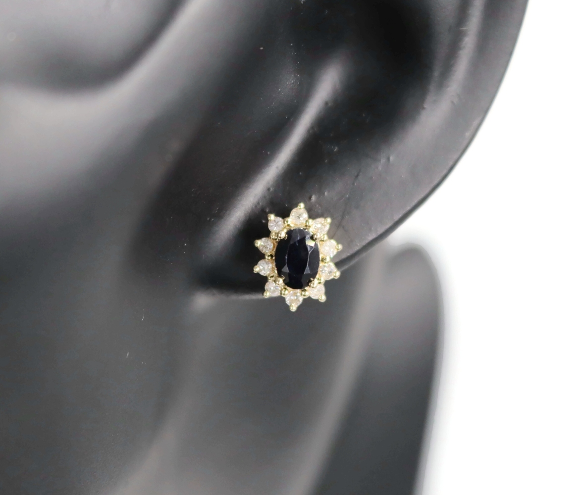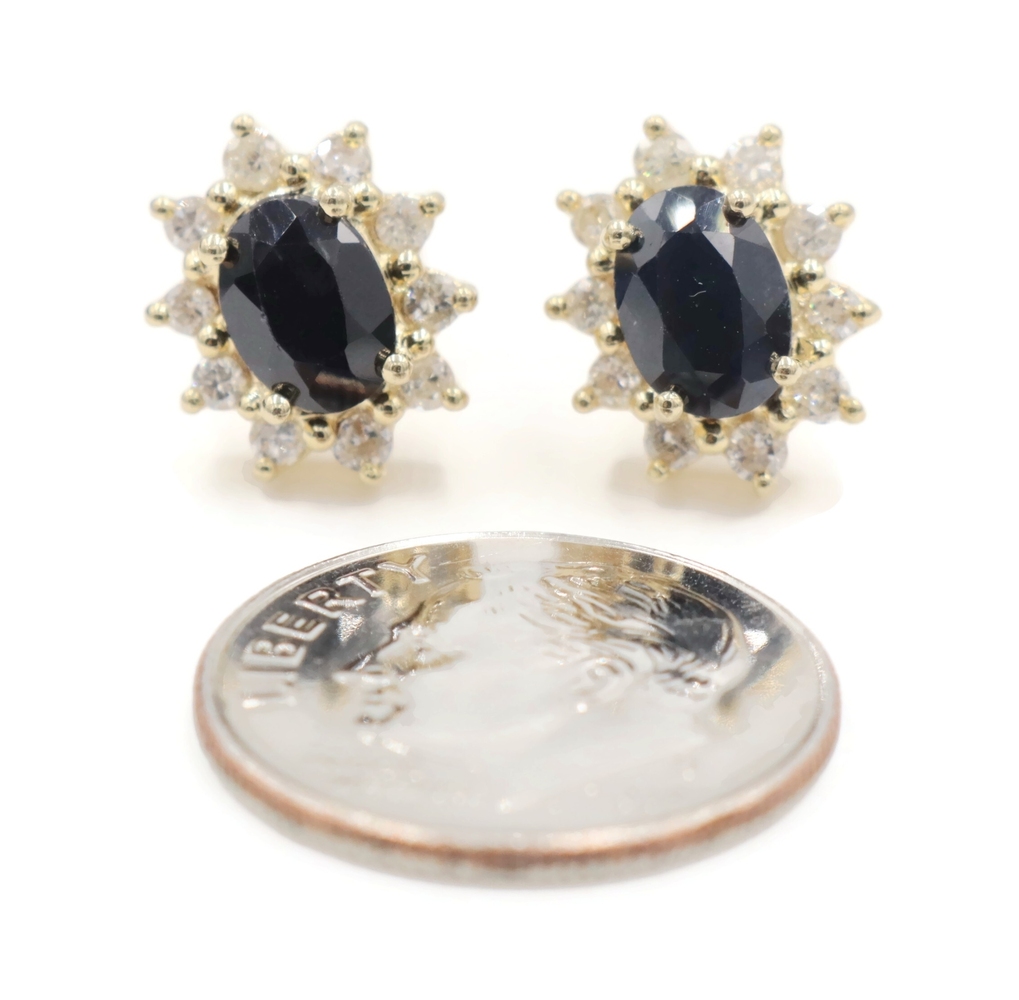 1.40 Ctw Natural Blue Sapphire & Diamond Halo 11.9mm 14KT Gold Stud Earrings. These earrings each have an approximate length of 11.9mm.