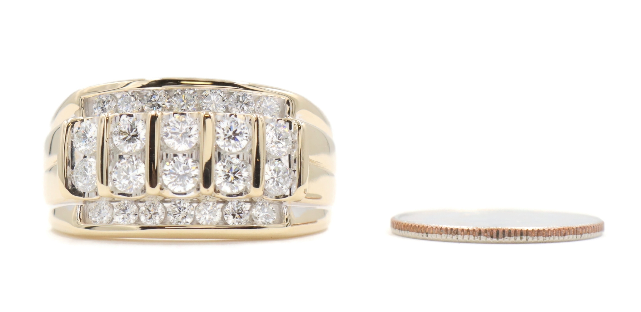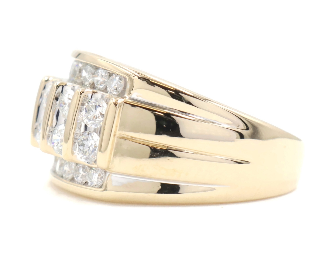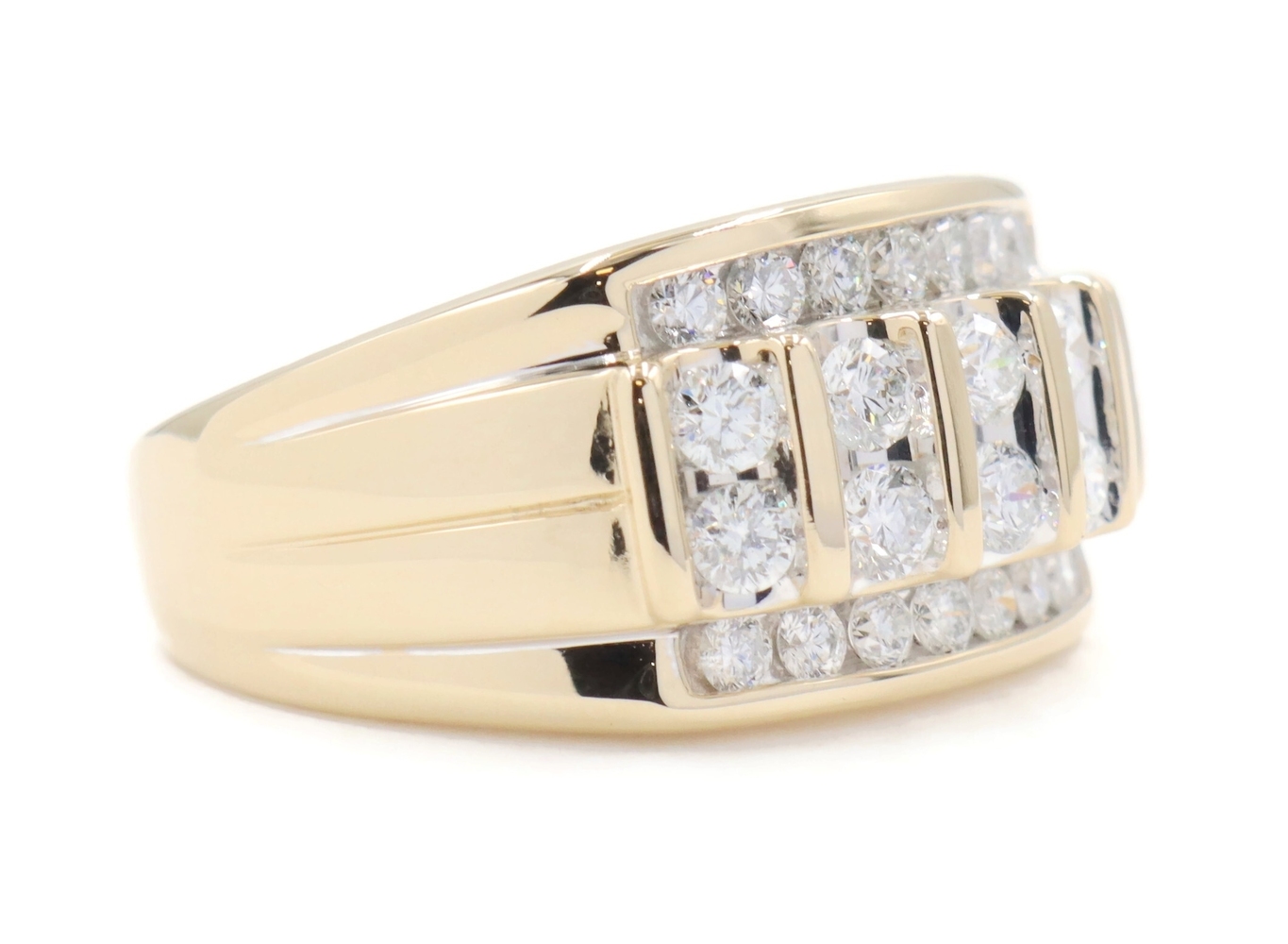 1.40 ctw Round Cut Diamond Bar Set Channel Statement 14KT Yellow Gold Band Ring. This ring is a size 10.