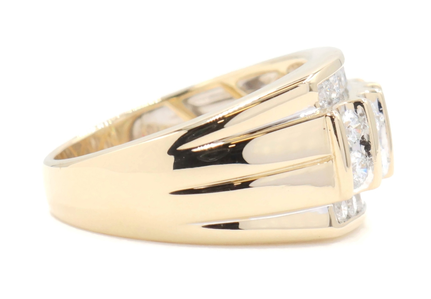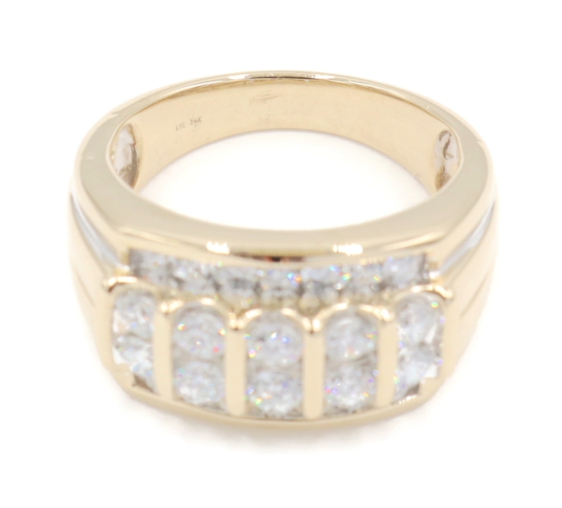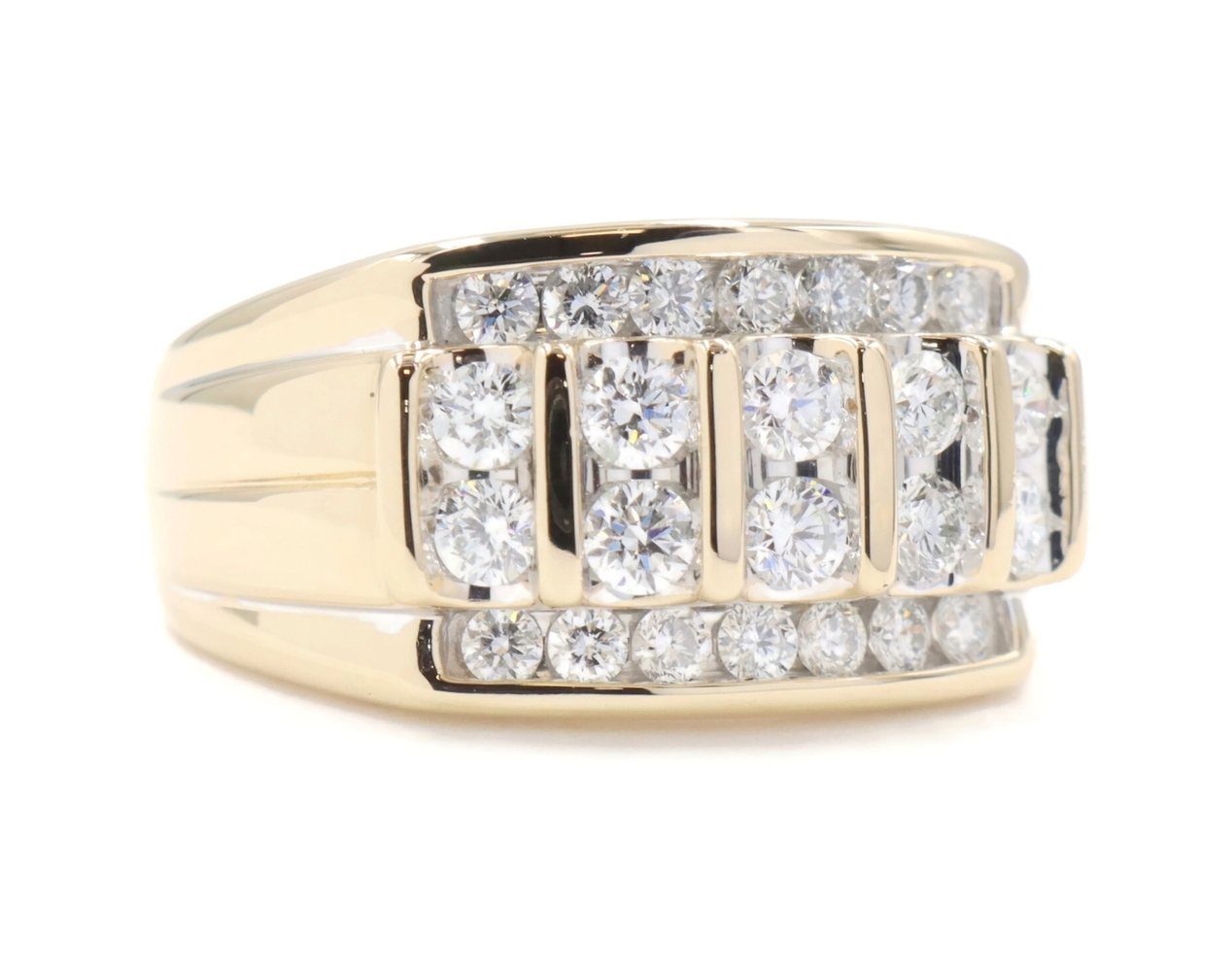 1.40 ctw Round Cut Diamond Bar Set Channel Statement 14KT Yellow Gold Band Ring. This ring is a size 10.