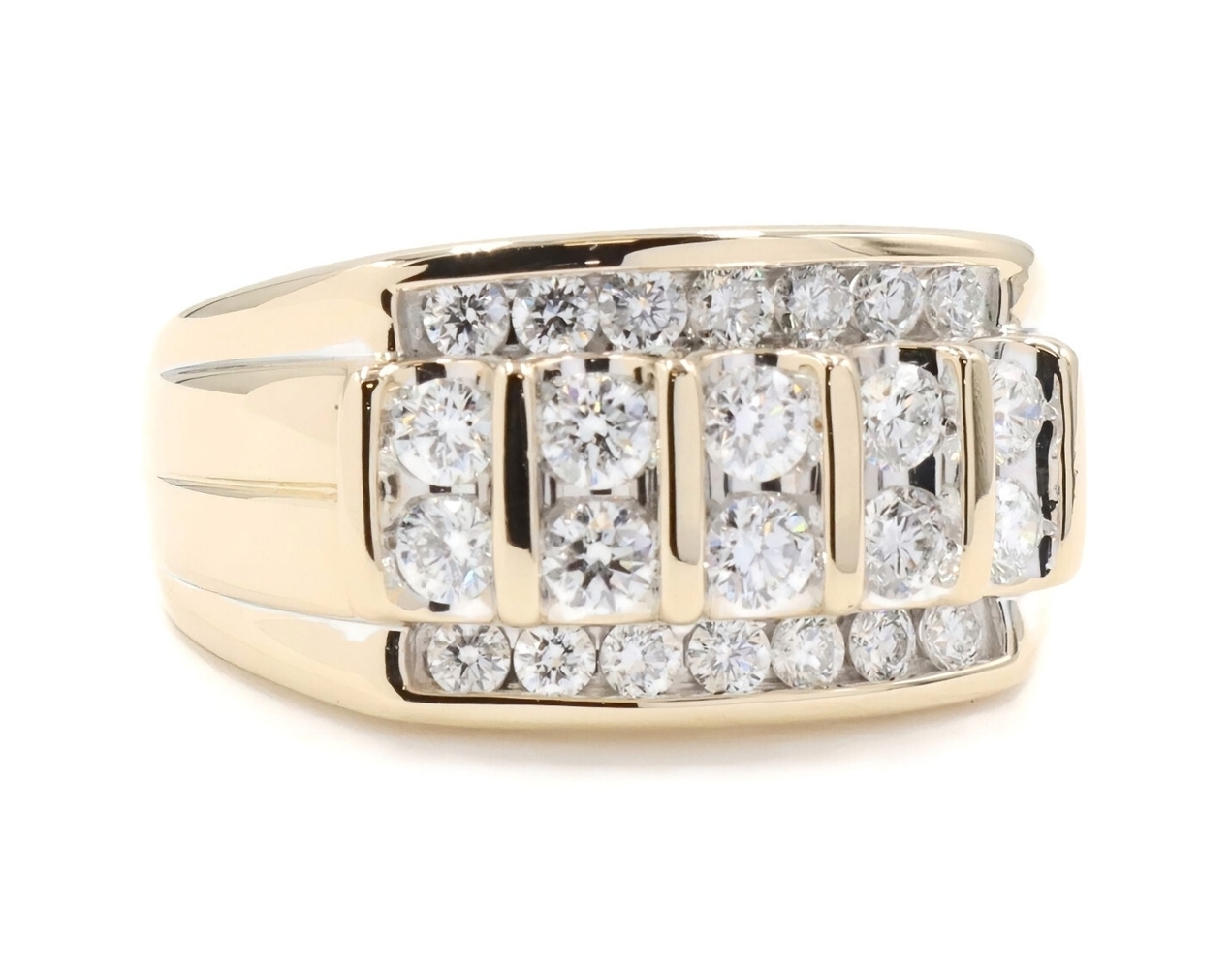 1.40 ctw Round Cut Diamond Bar Set Channel Statement 14KT Yellow Gold Band Ring | USA Pawn