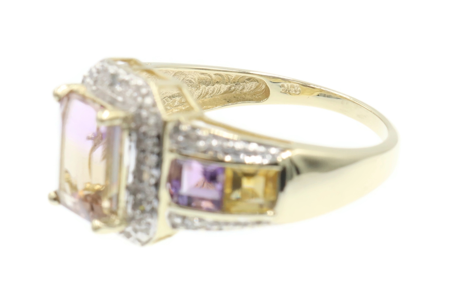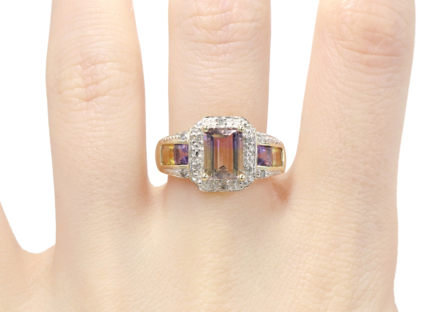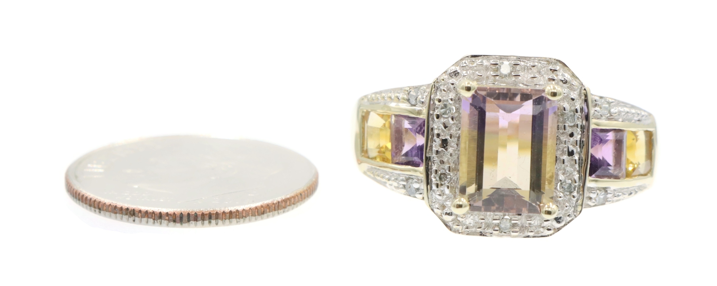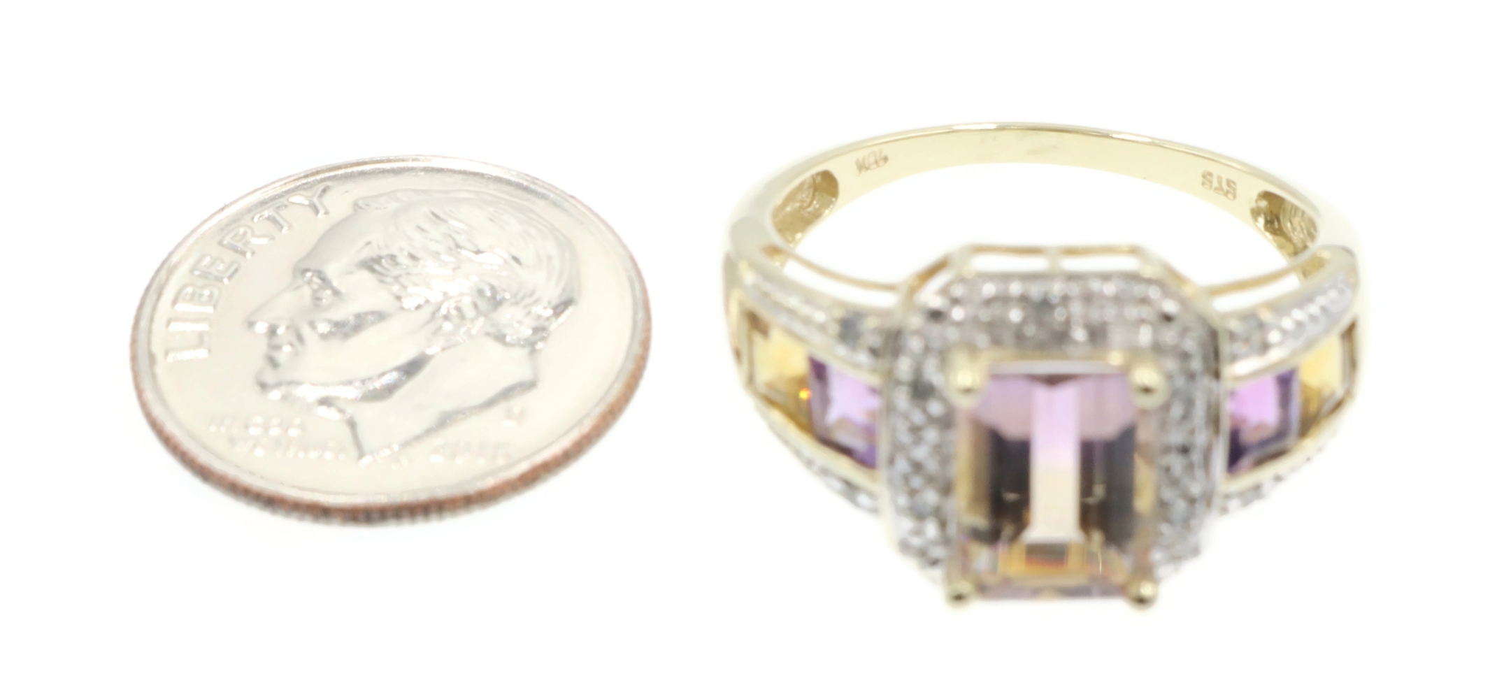 1.45 Ct Emerald Cut Ametrine w/ Amethyst, Citrine & Diamonds 10KT Gold Ring STS | USA Pawn
