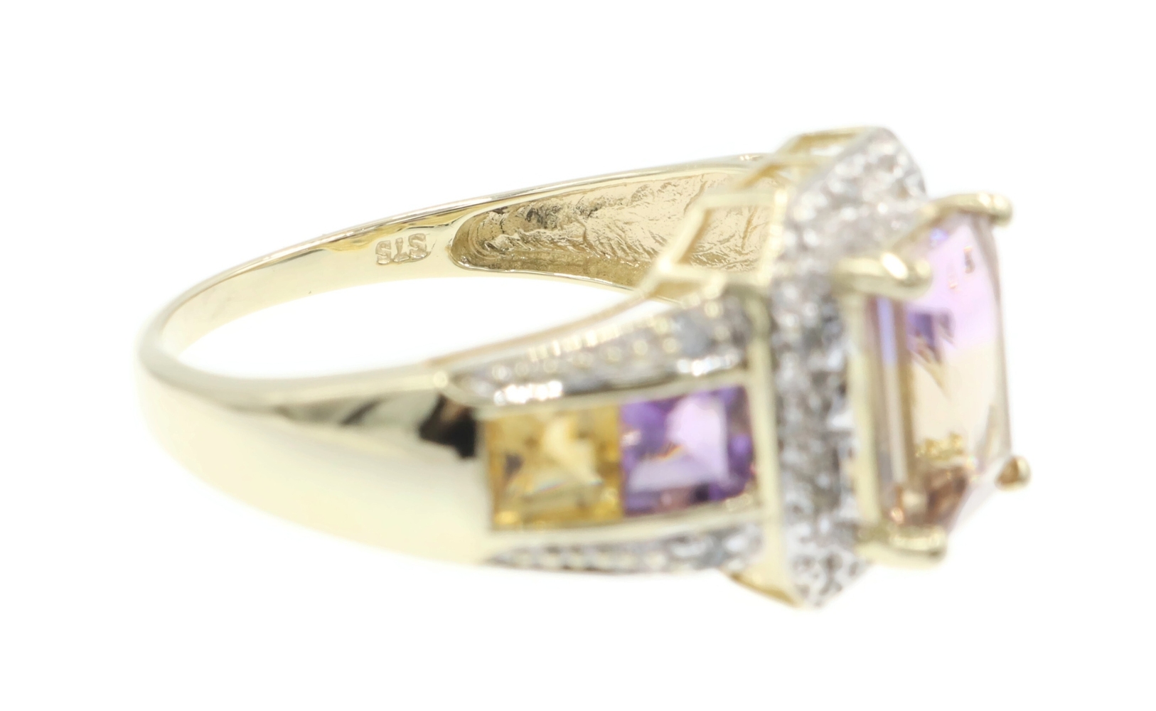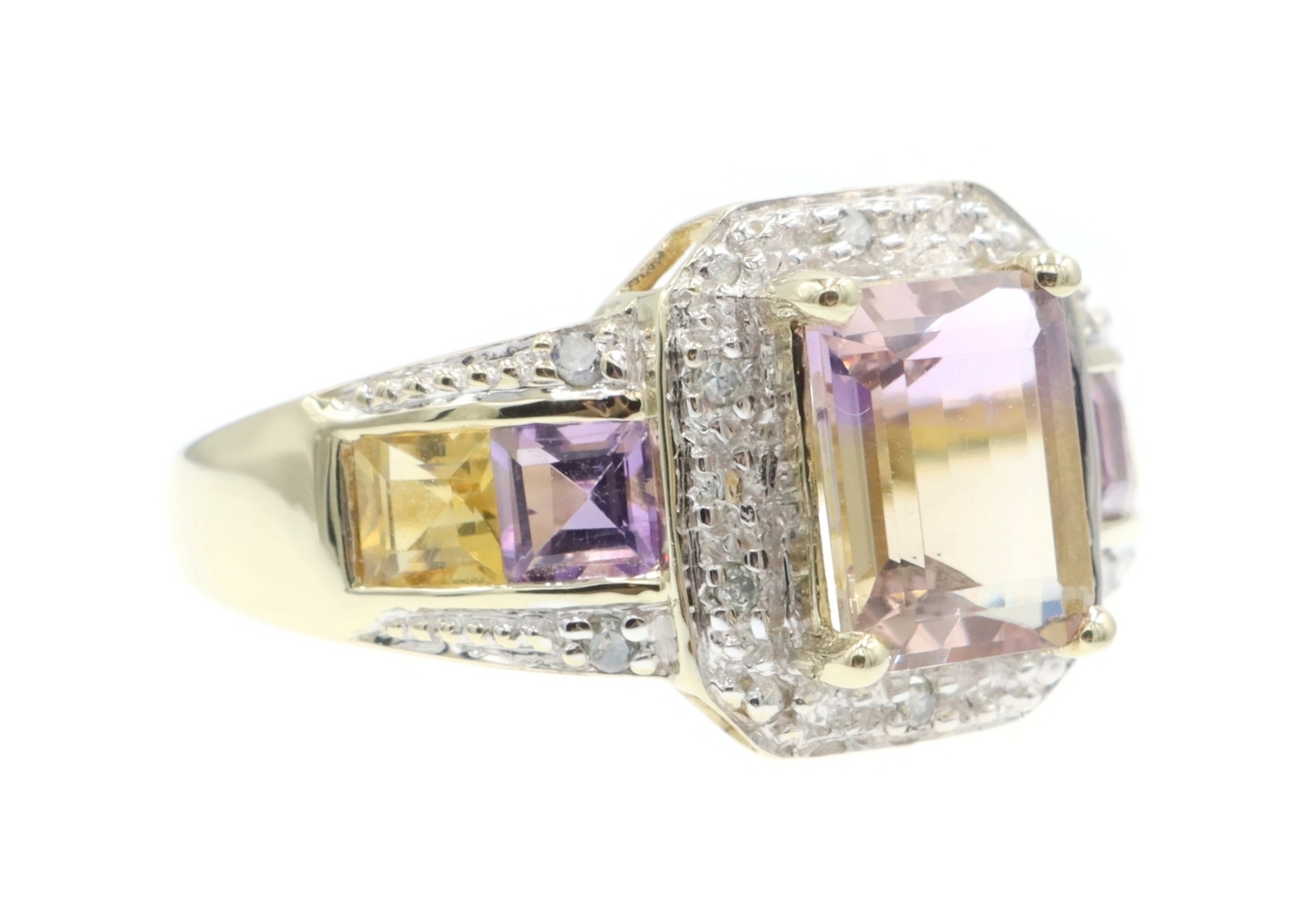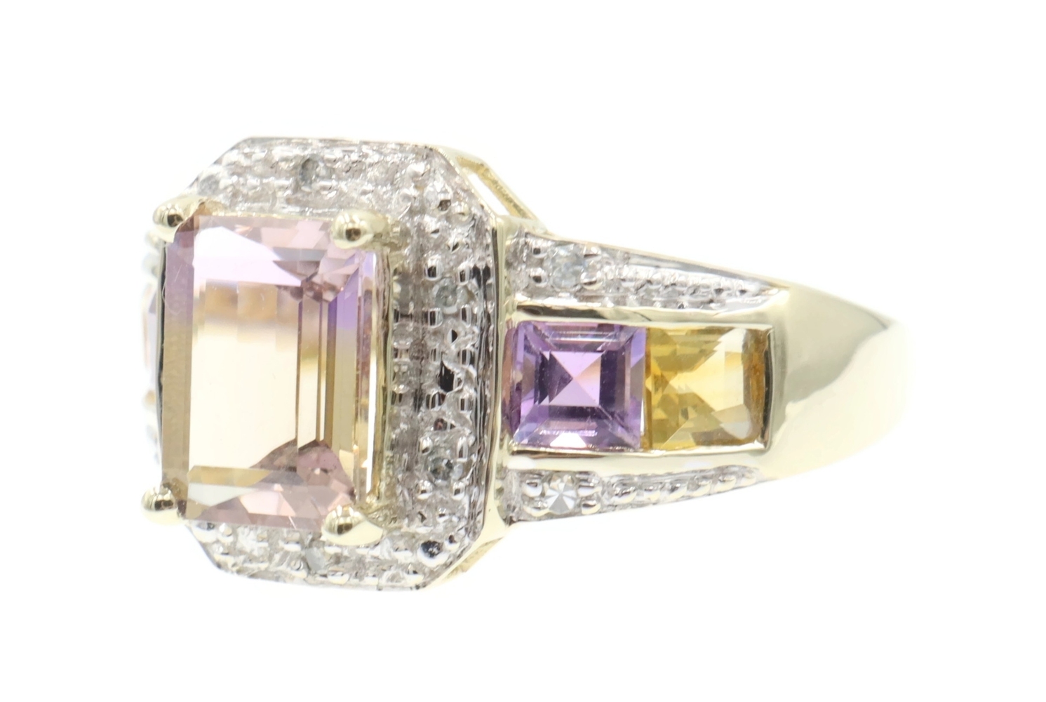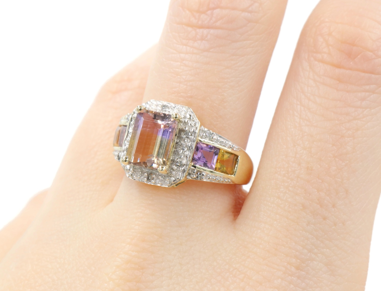 1.45 Ct Emerald Cut Ametrine w/ Amethyst, Citrine & Diamonds 10KT Gold Ring STS | USA Pawn