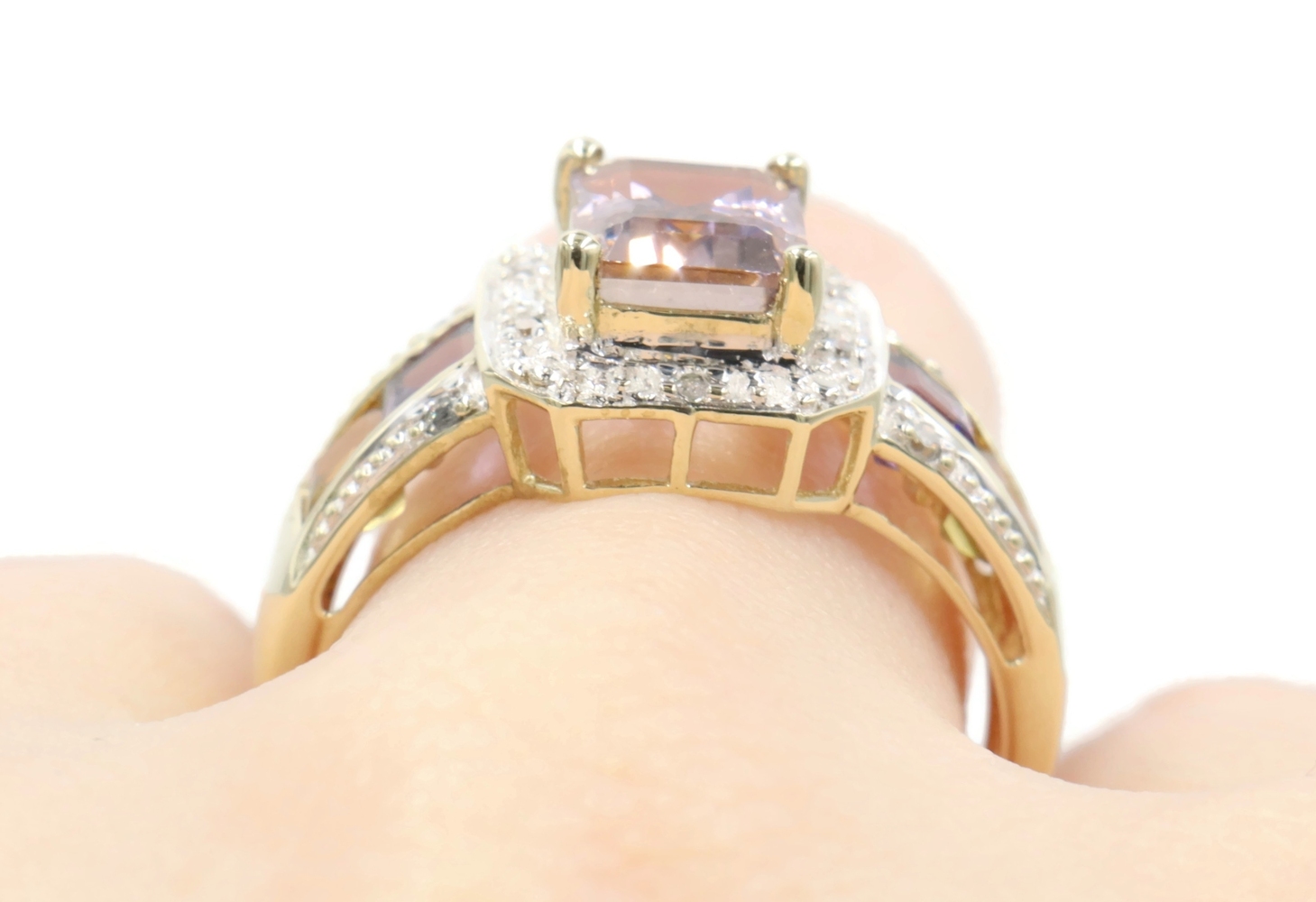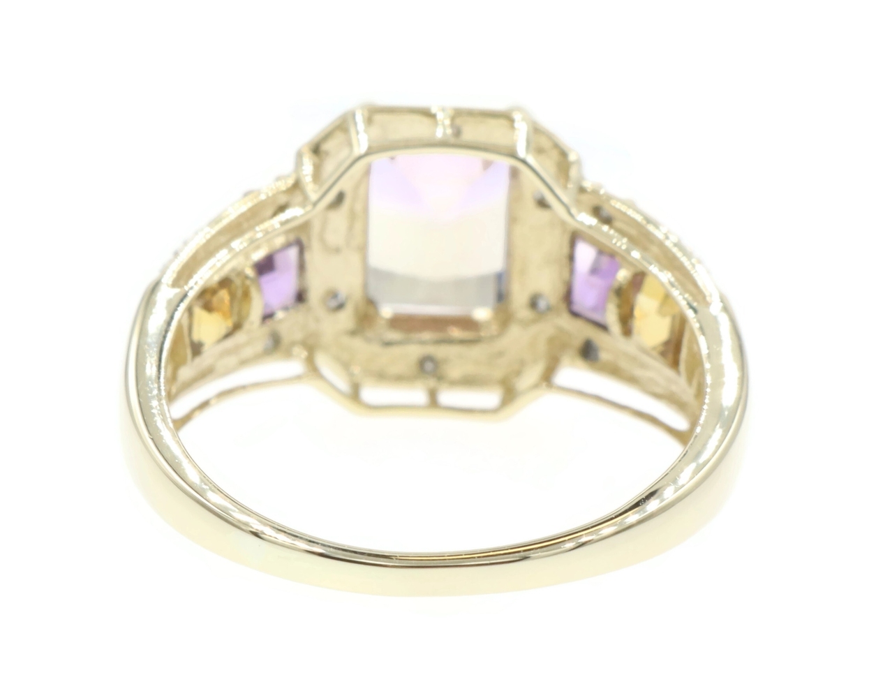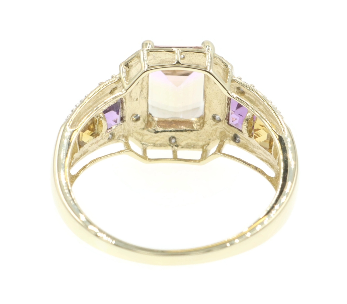 1.45 Ct Emerald Cut Ametrine w/ Amethyst, Citrine & Diamonds 10KT Gold Ring STS. This ring is a size 8.