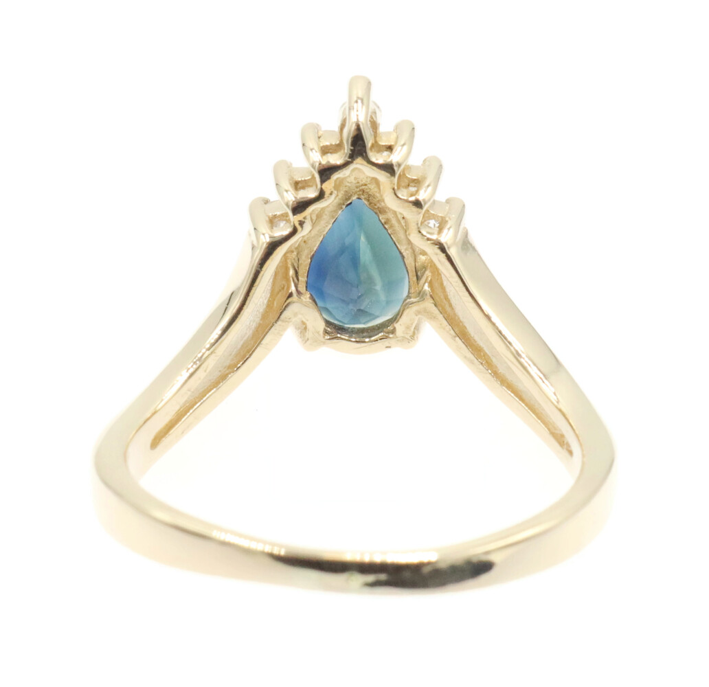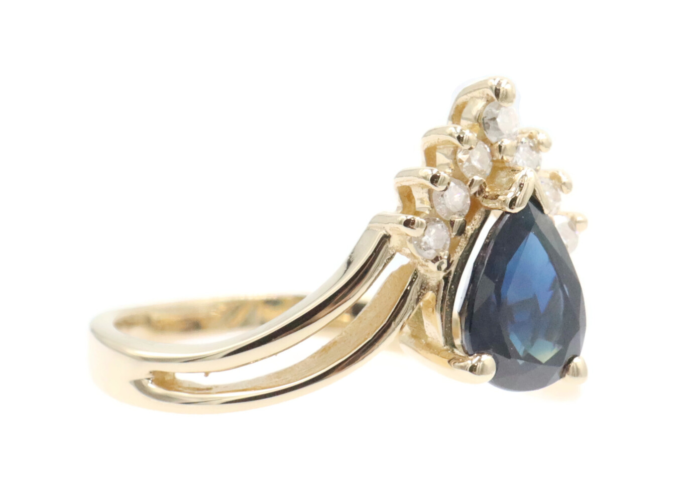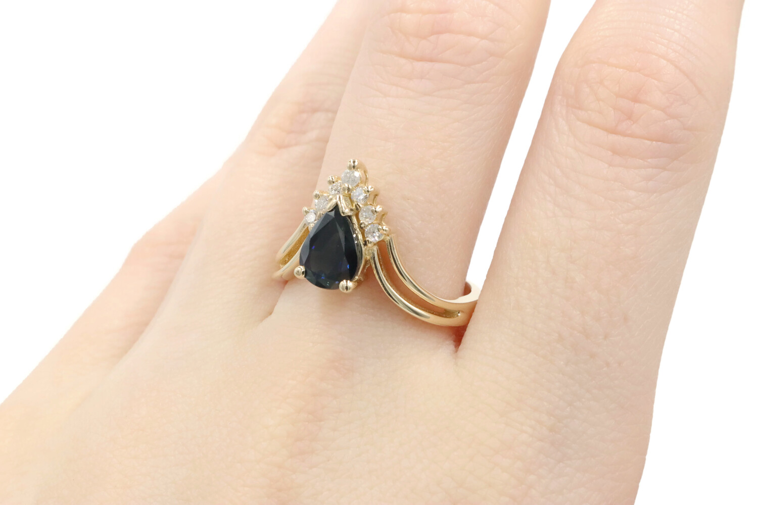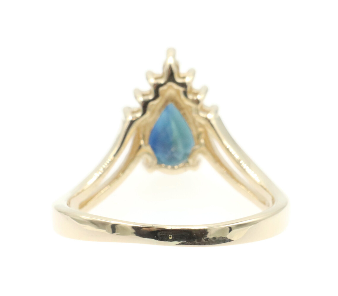 1.45 Ct Pear Lab-Created Sapphire & Natural Diamond 14KT Gold V-Style Ring BH. This ring is a size 8.