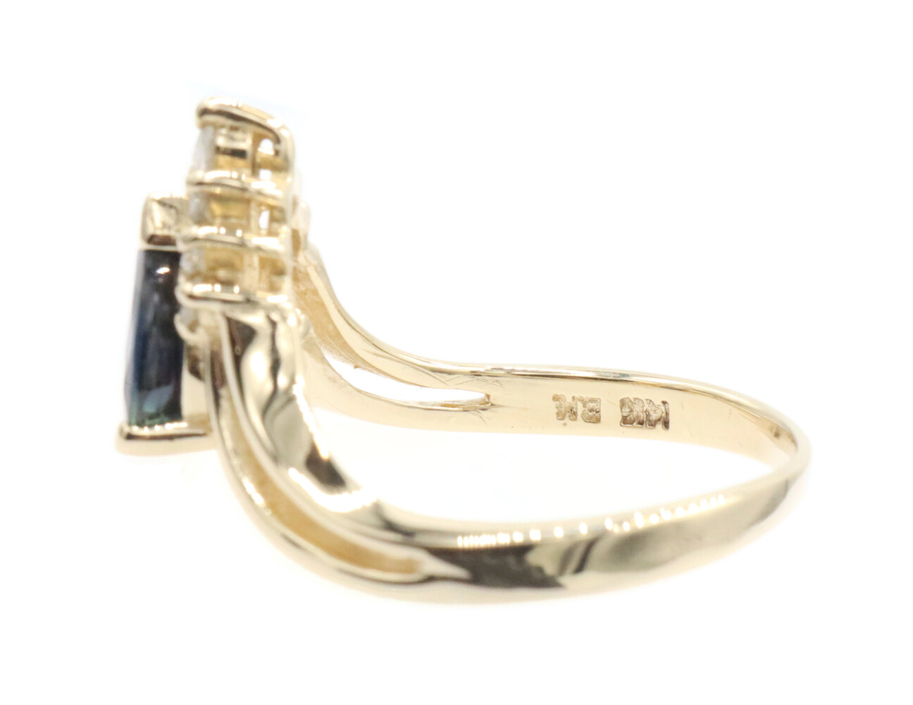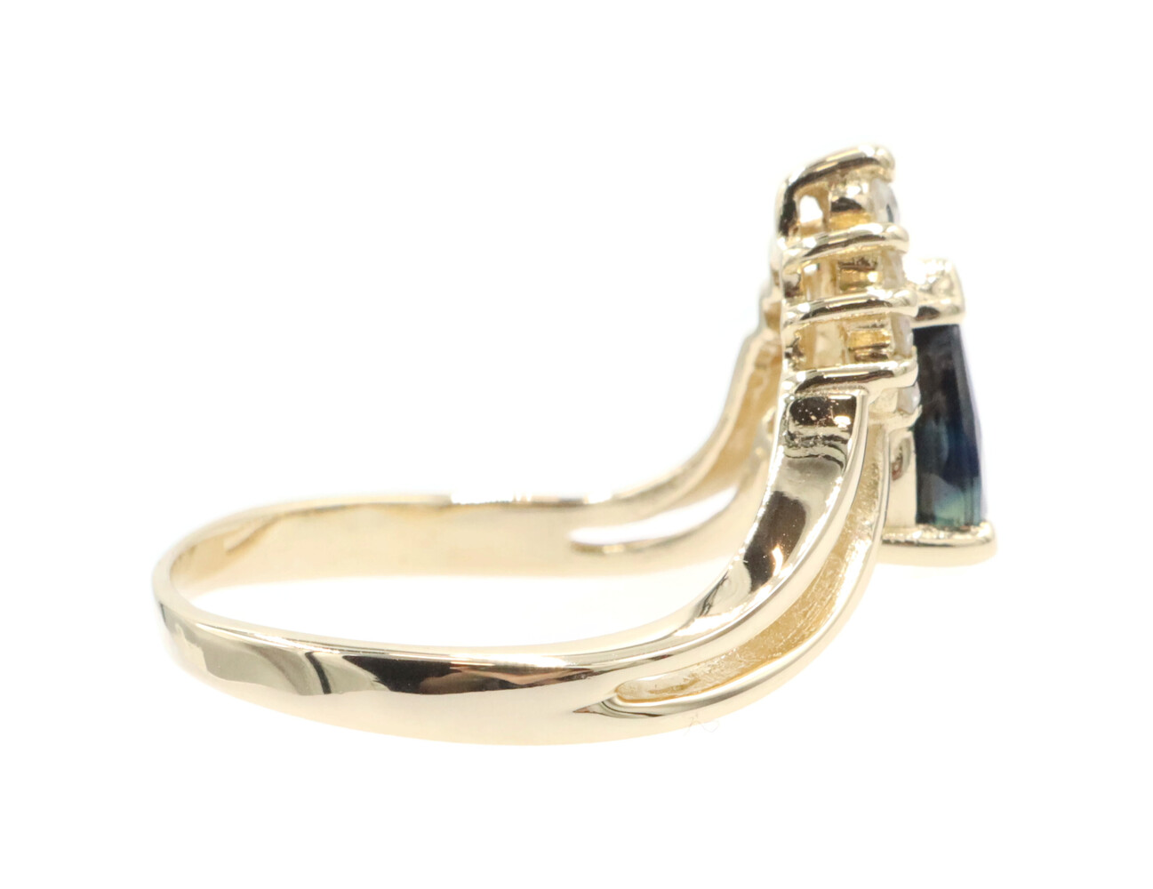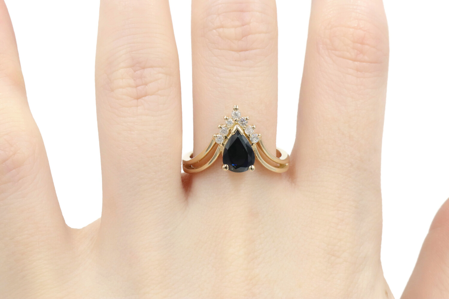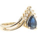1.45 Ct Pear Lab-Created Sapphire & Natural Diamond 14KT Gold V-Style Ring BH. This ring is a size 8.