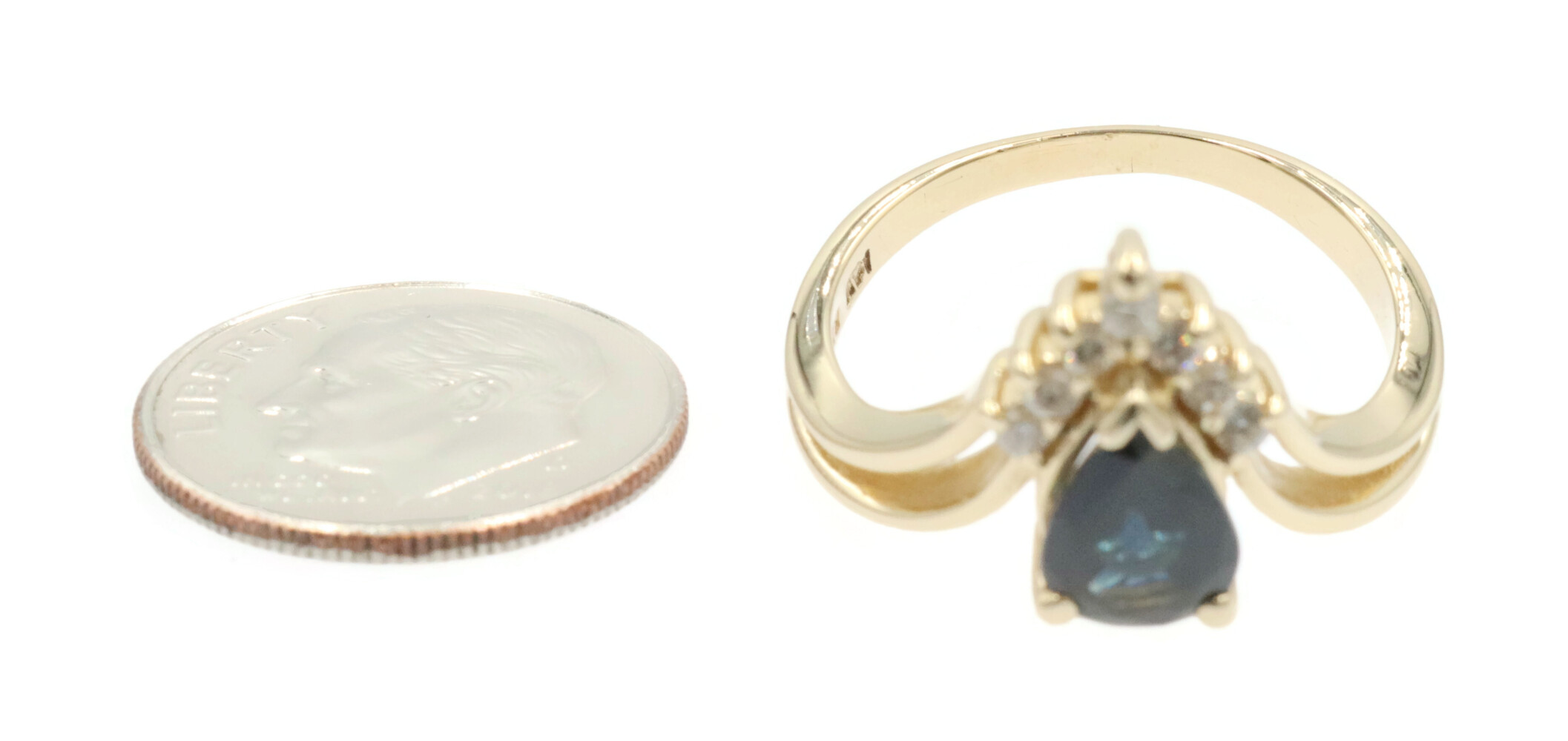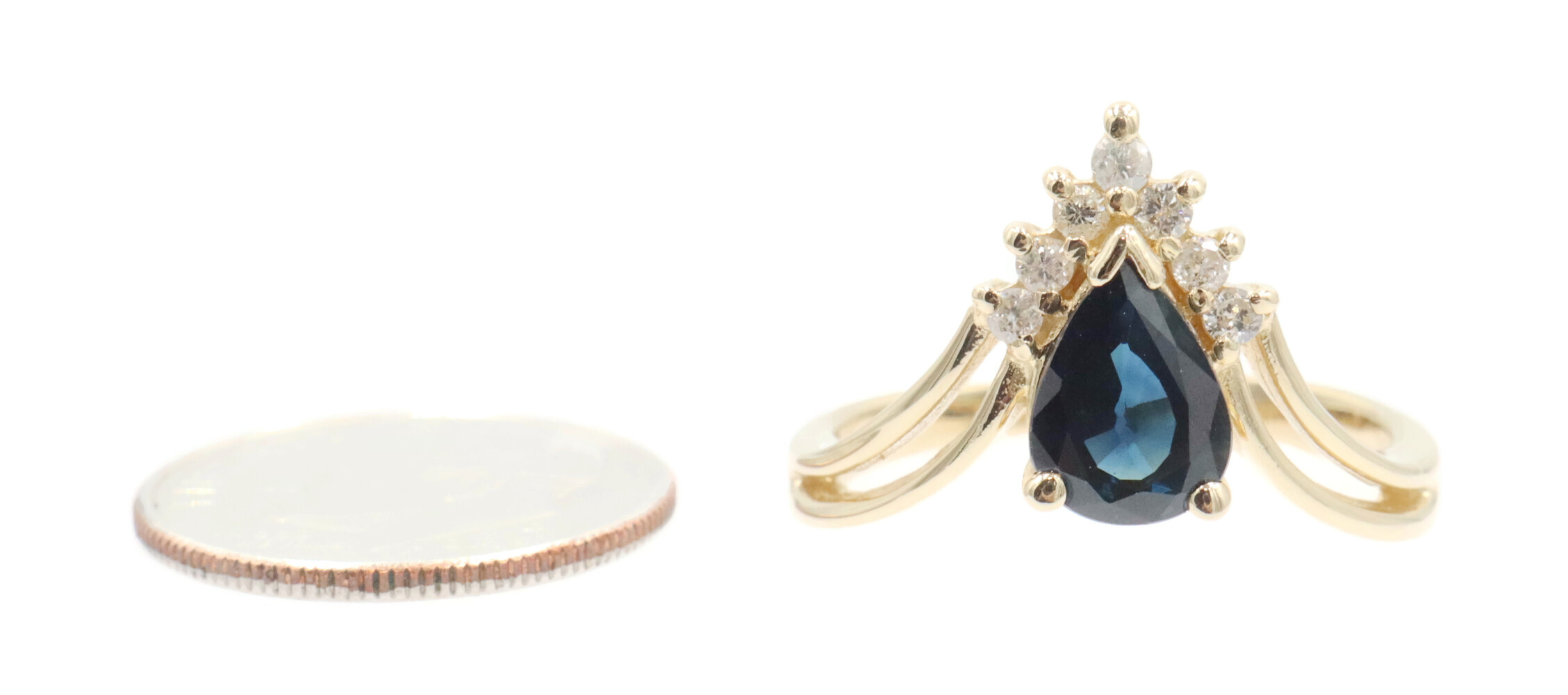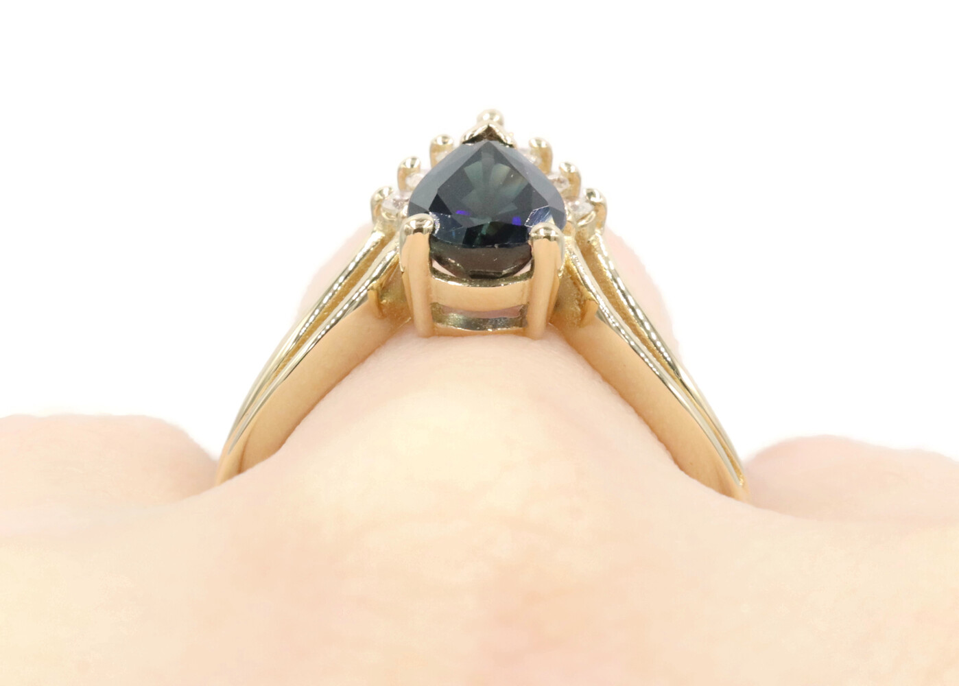 1.45 Ct Pear Lab-Created Sapphire & Natural Diamond 14KT Gold V-Style Ring BH | USA Pawn