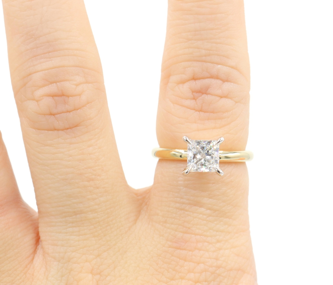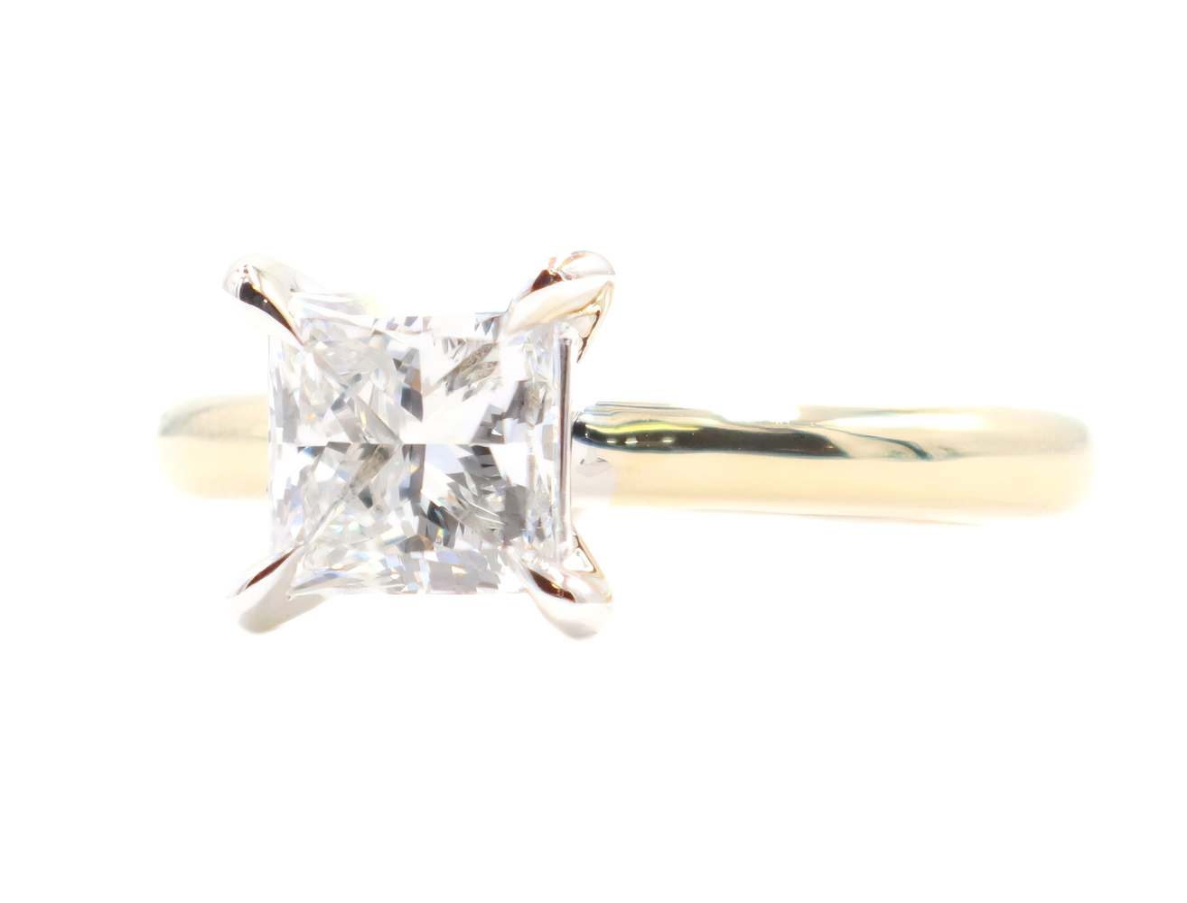 1.48 ctw Princess Cut Lab Grown IGI E VS1 14KT Yellow Gold Solitaire Ring 4.2g | USA Pawn