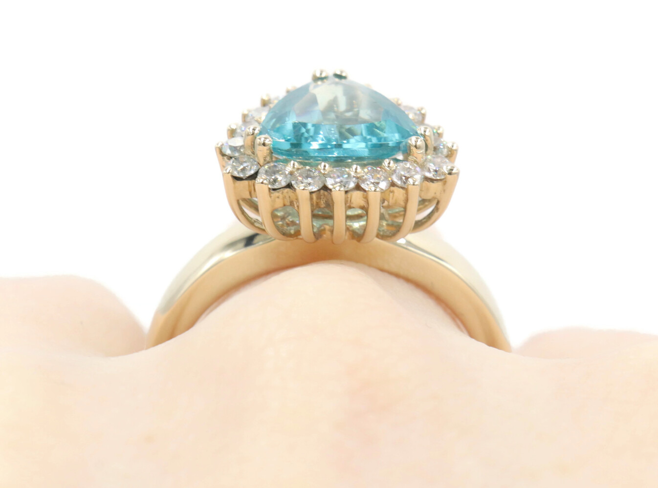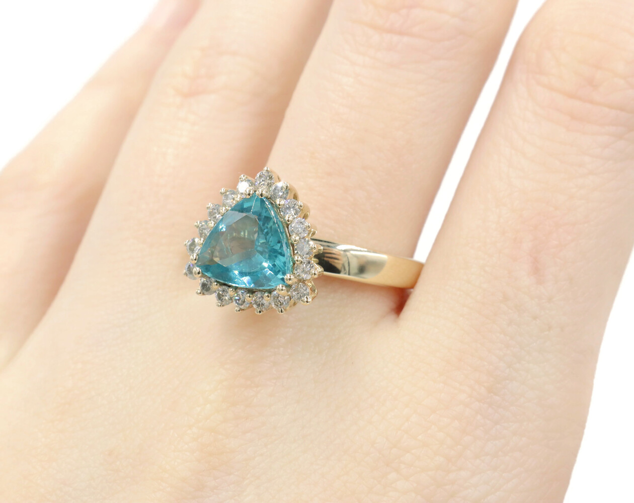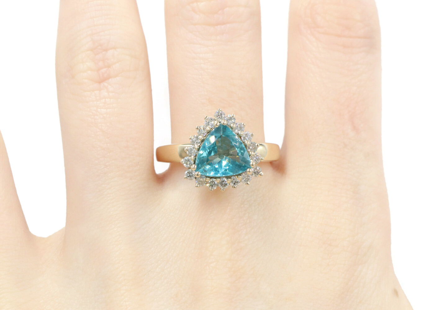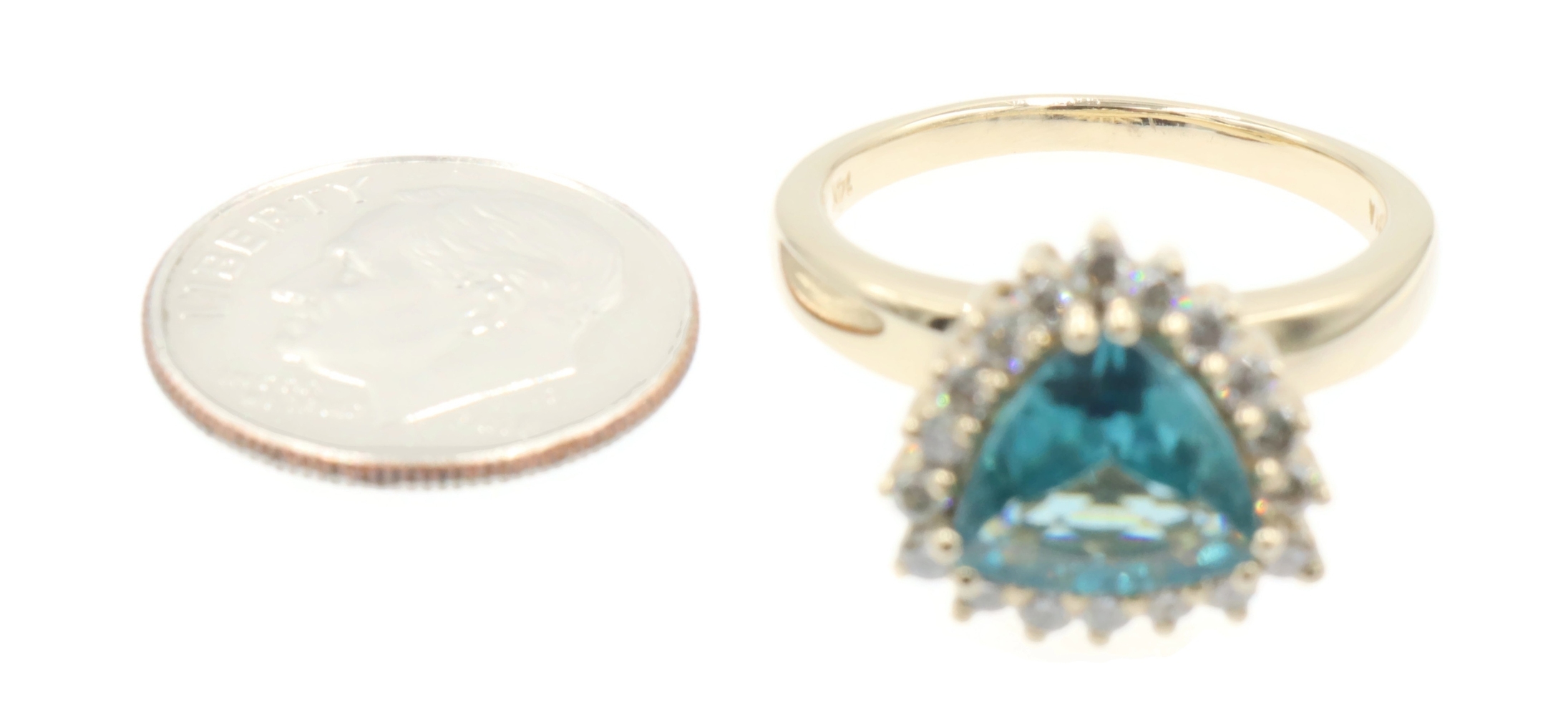 1.80 Ctw Trilliant Blue Topaz & Round Diamond Halo 14KT Yellow Gold Ring 6.51g | USA Pawn