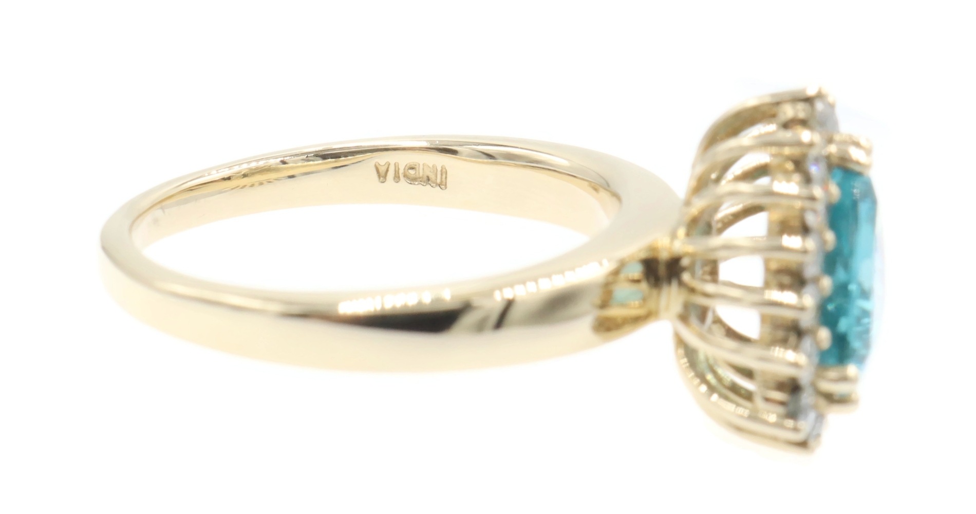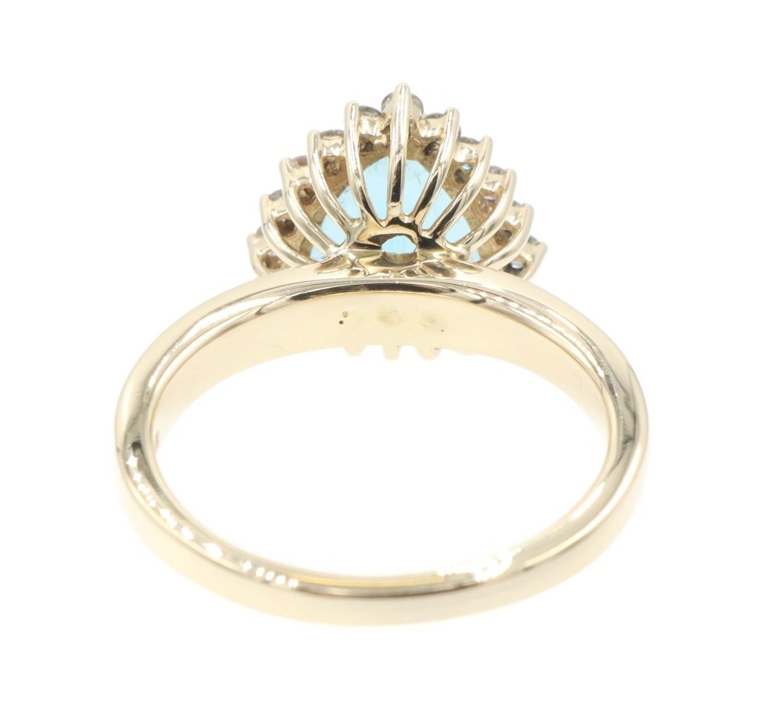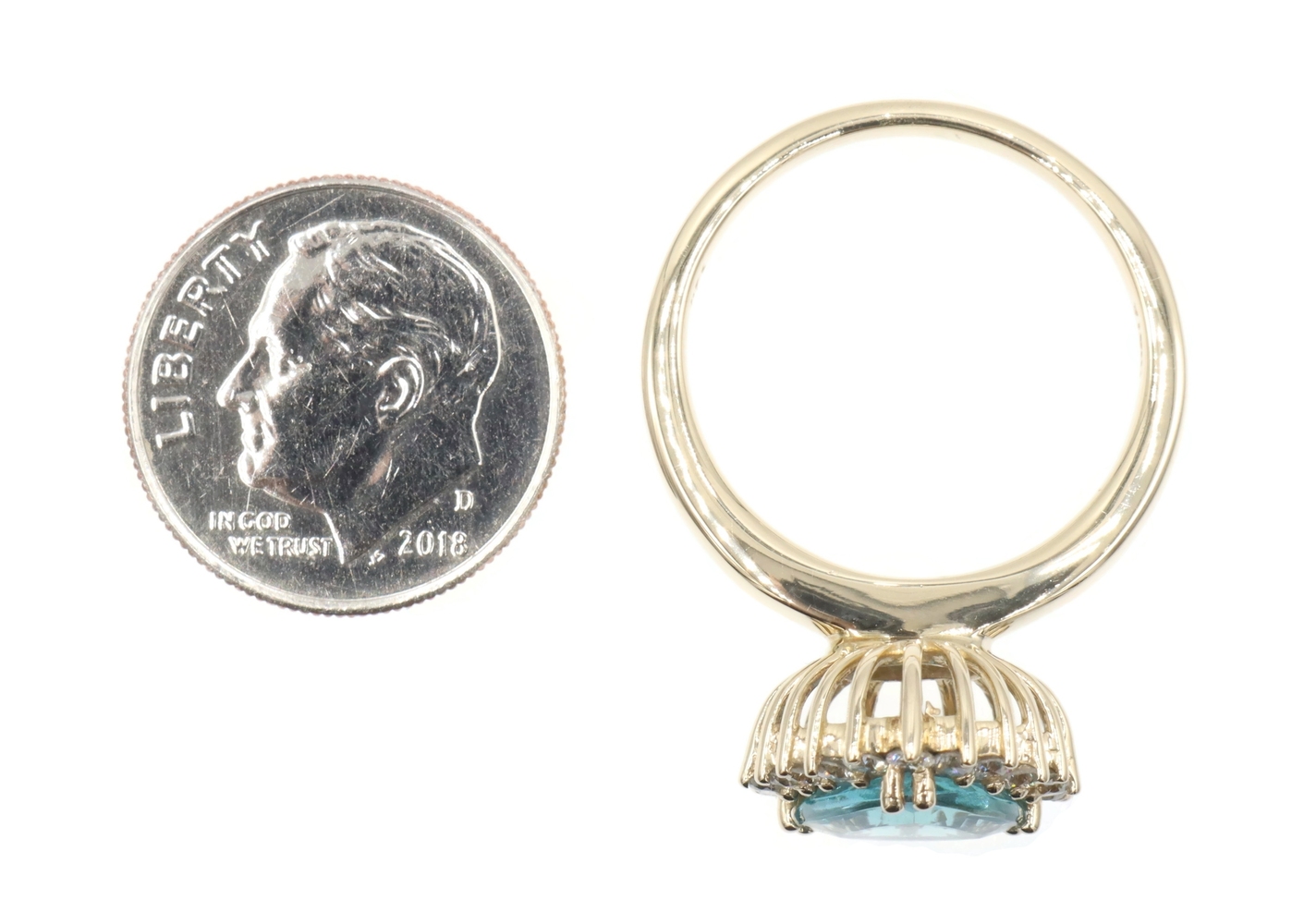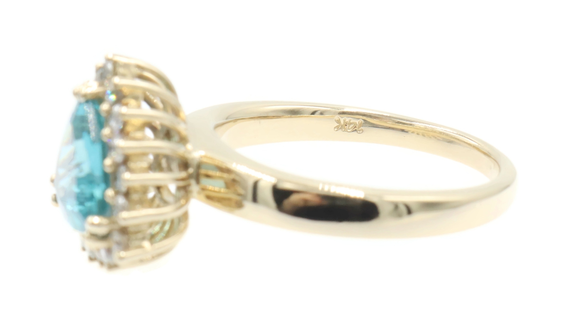 1.80 Ctw Trilliant Blue Topaz & Round Diamond Halo 14KT Yellow Gold Ring 6.51g | USA Pawn
