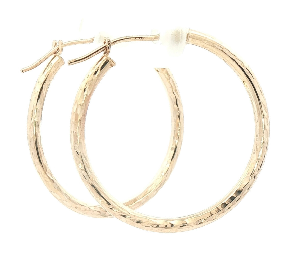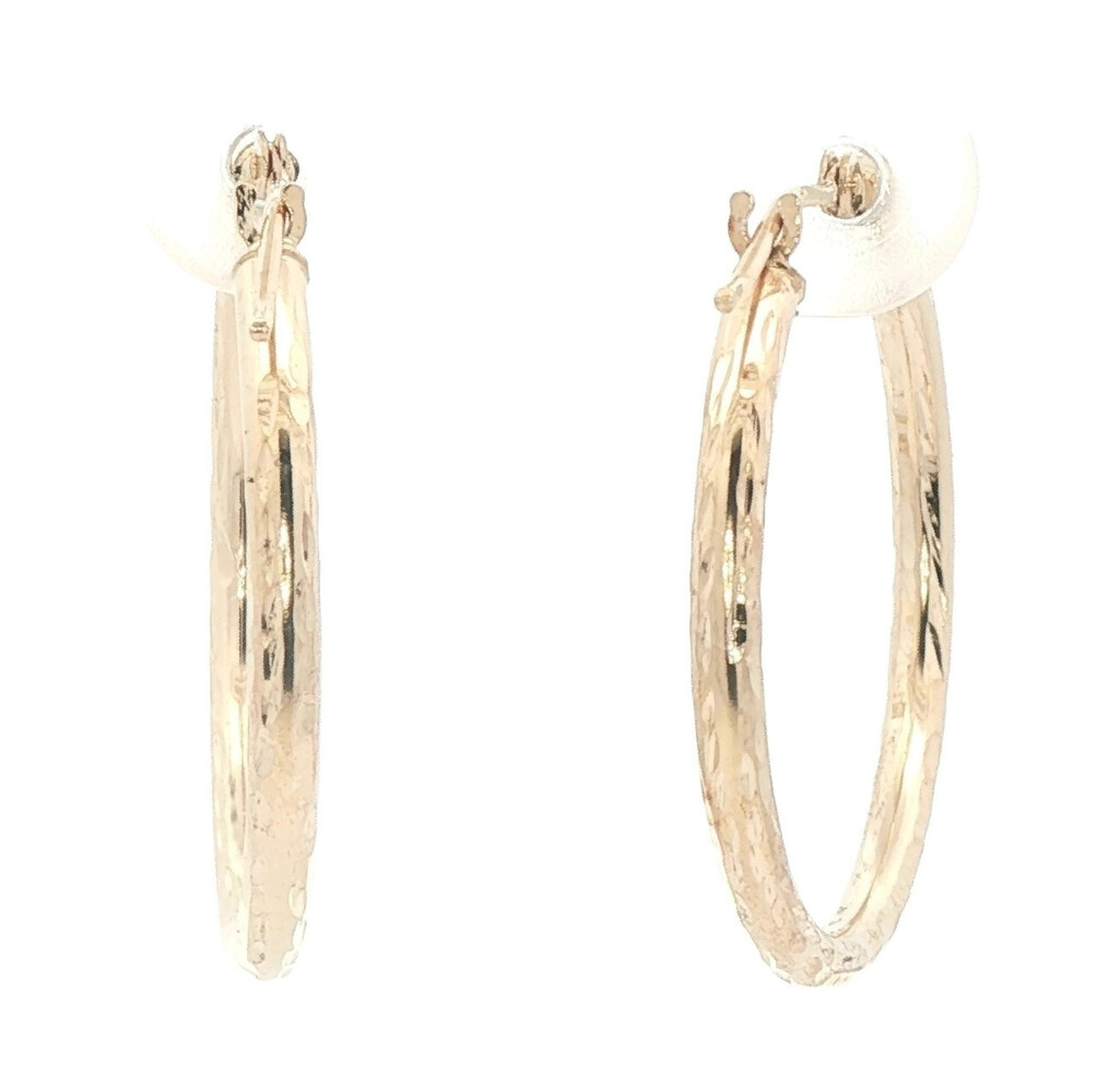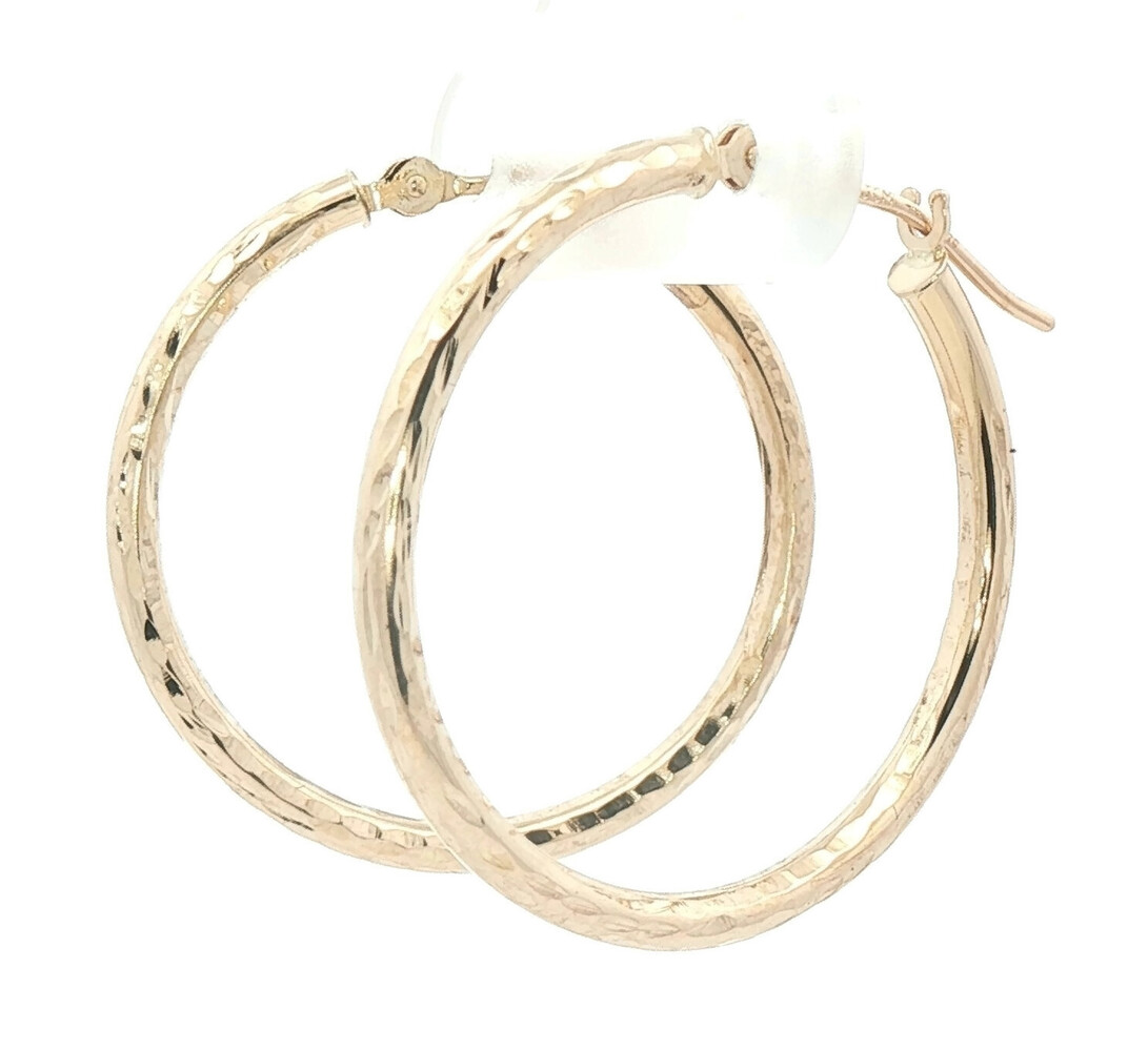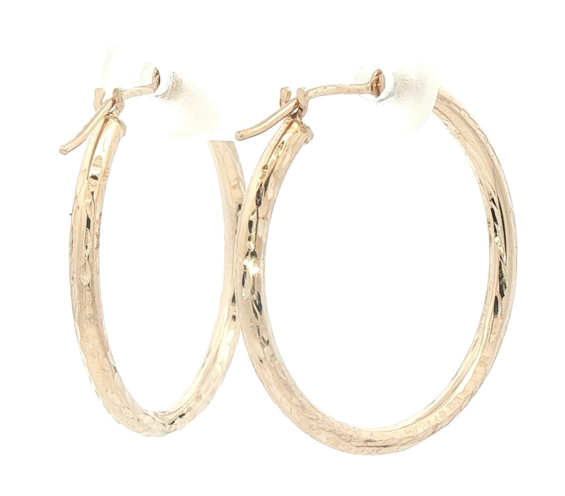 1" Diamond Cut 14KT Yellow Gold High Shine Round Hoop Earrings - 1.24g by JCM