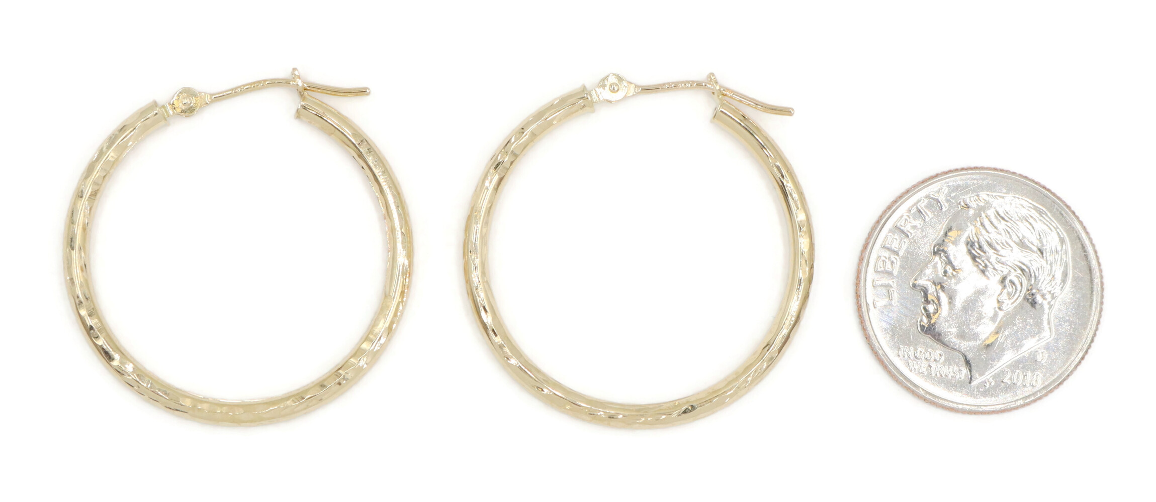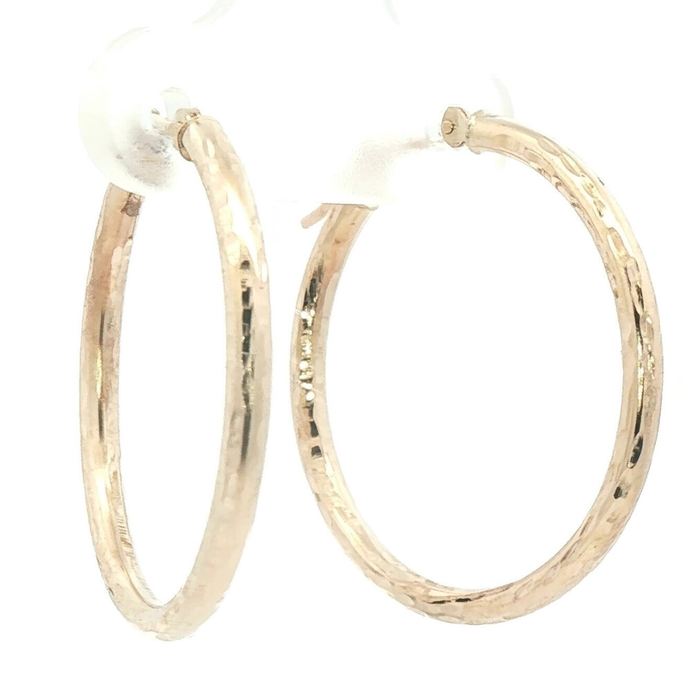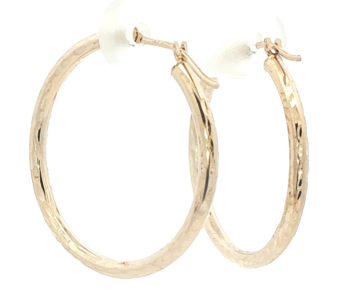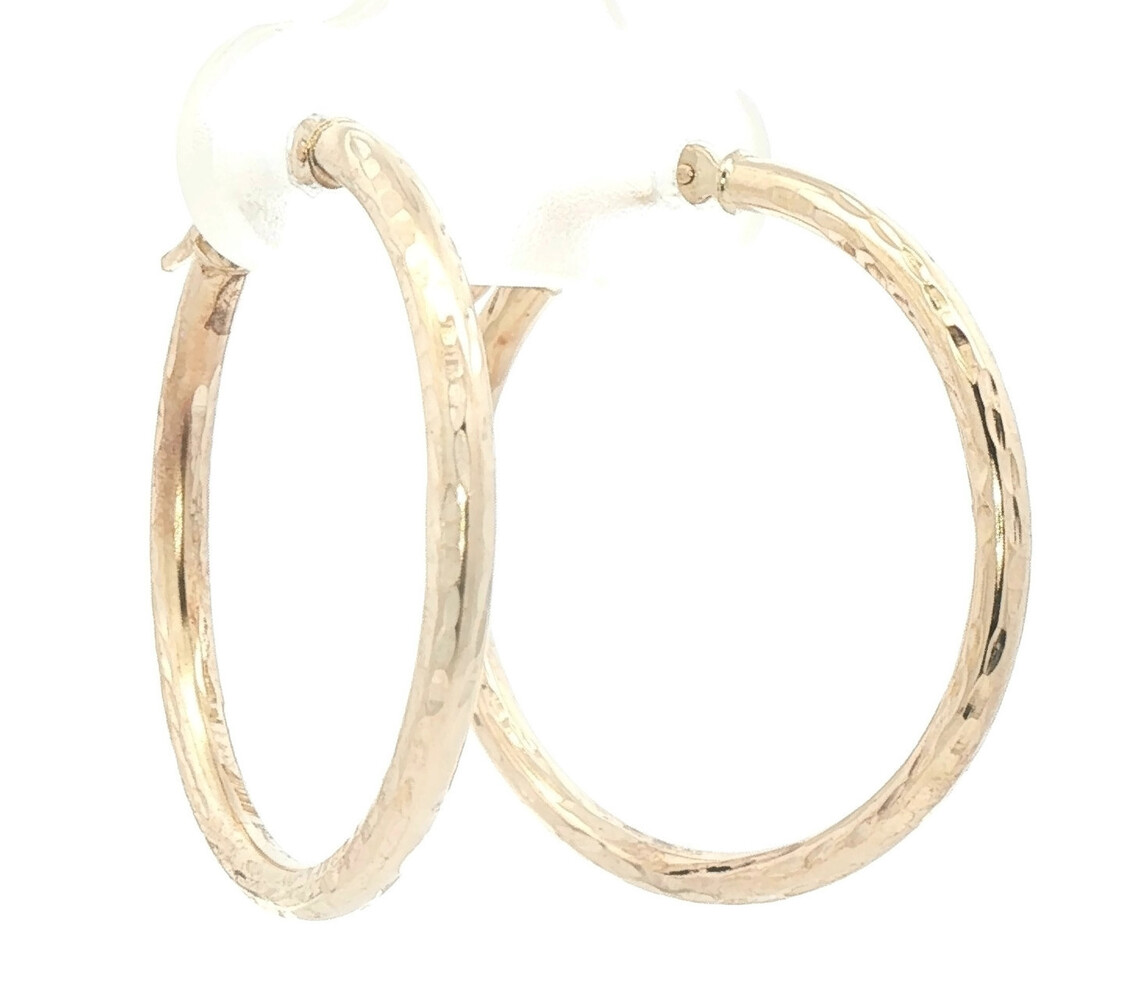 1" Diamond Cut 14KT Yellow Gold High Shine Round Hoop Earrings - 1.24g by JCM