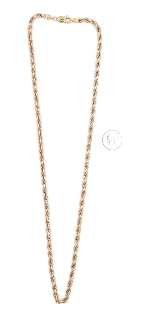10KT Rose Gold 4.1mm Wide Diamond Cut Classic 22.5" Rope Chain Necklace - 30.5g | USA Pawn