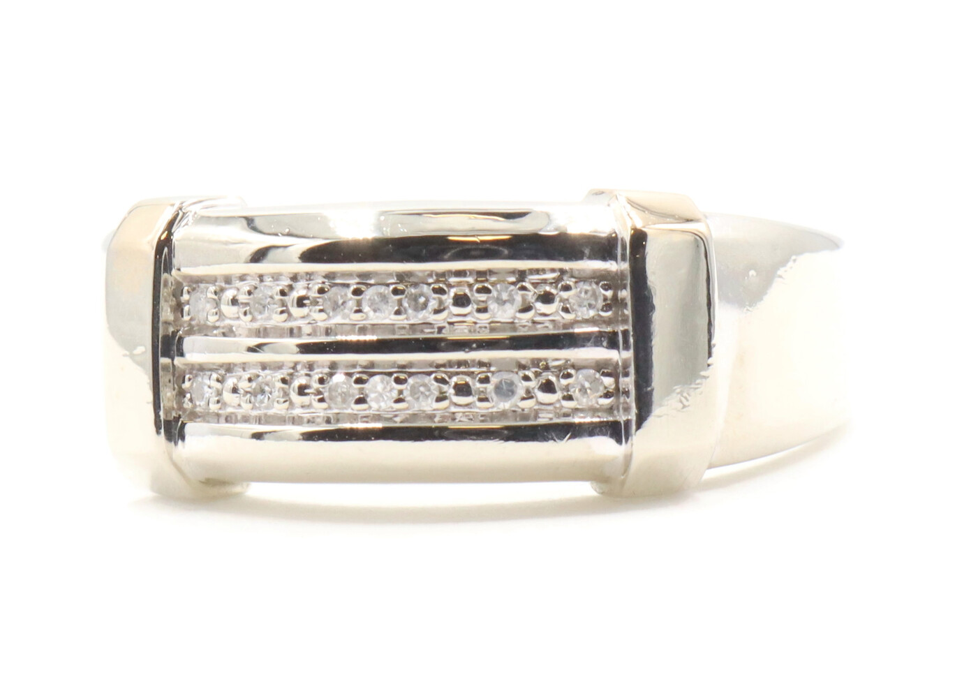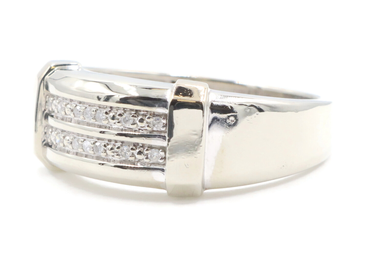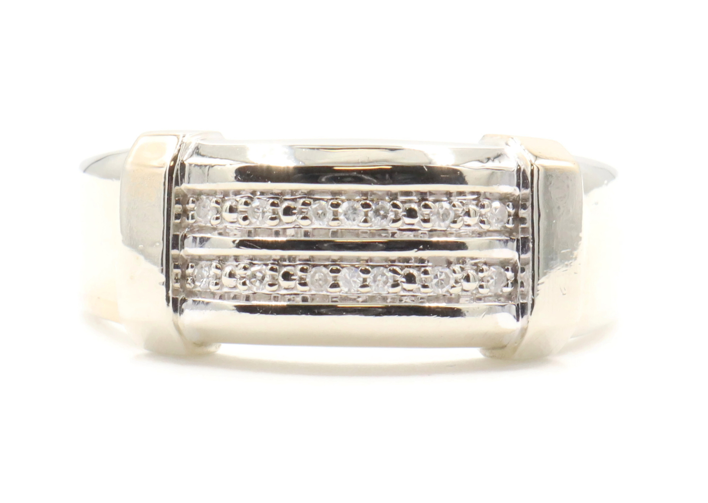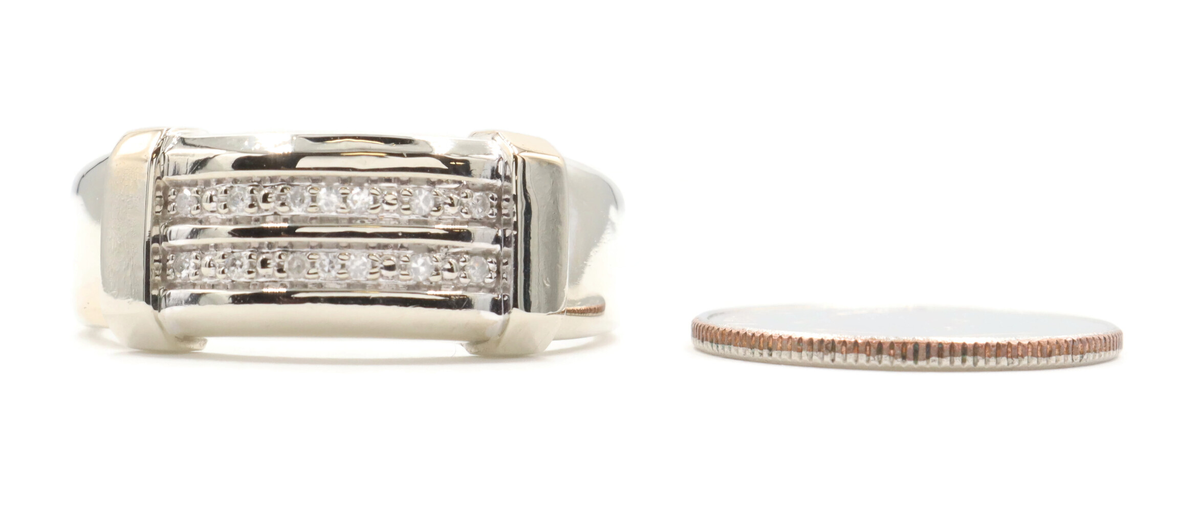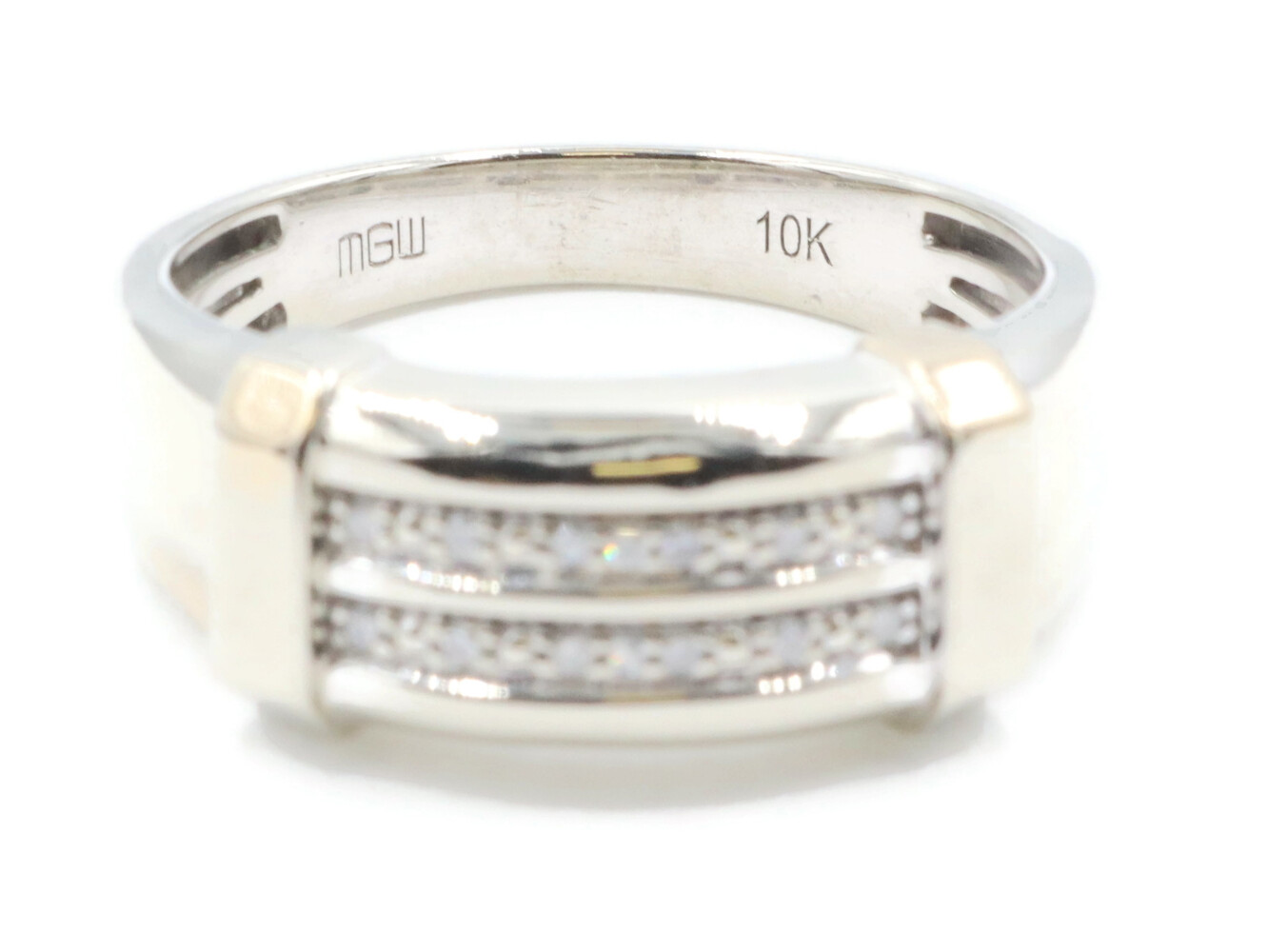 10KT White Gold Two Row 0.14 ctw Round Cut Diamond 9.2mm Men's Ring by MGW 3.8g | USA Pawn