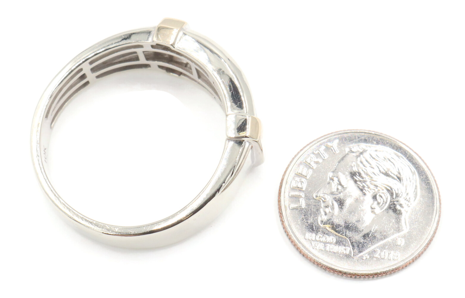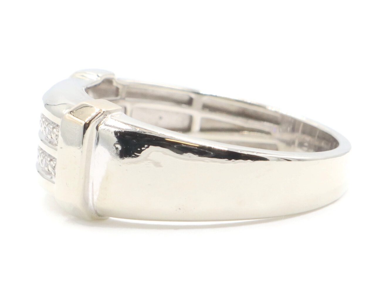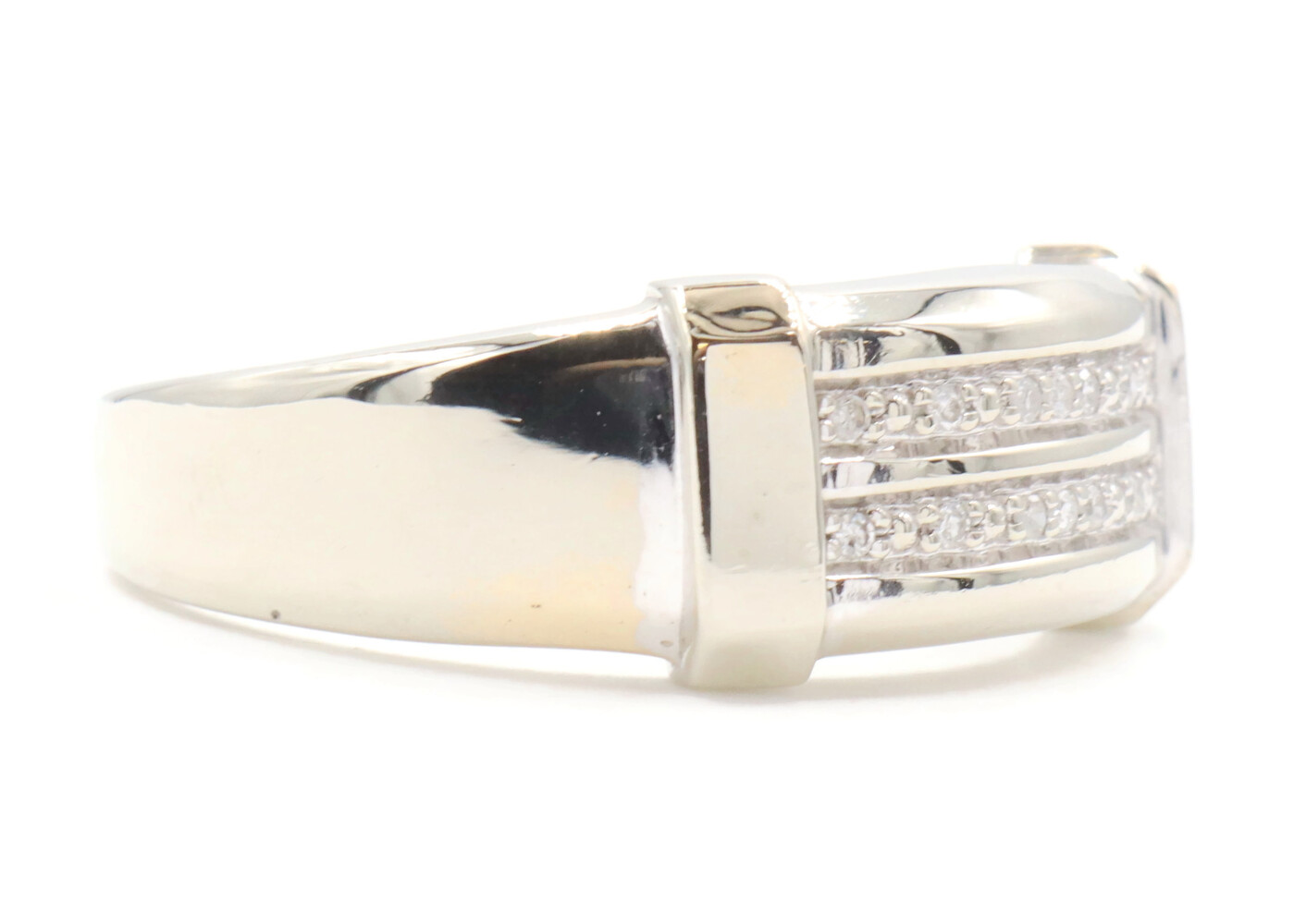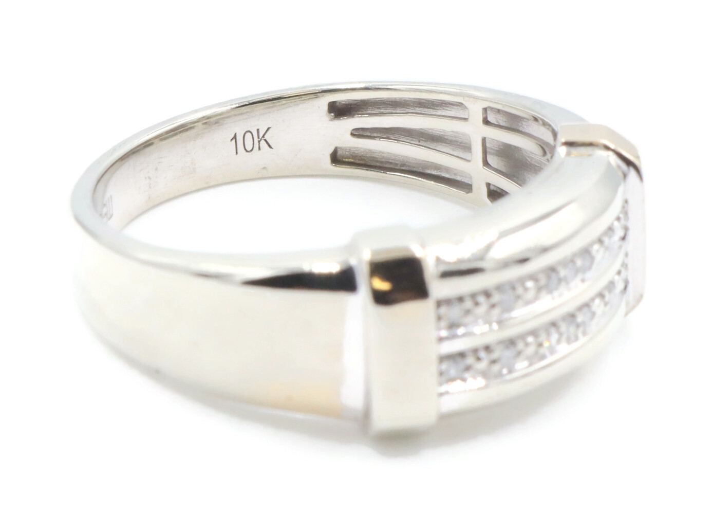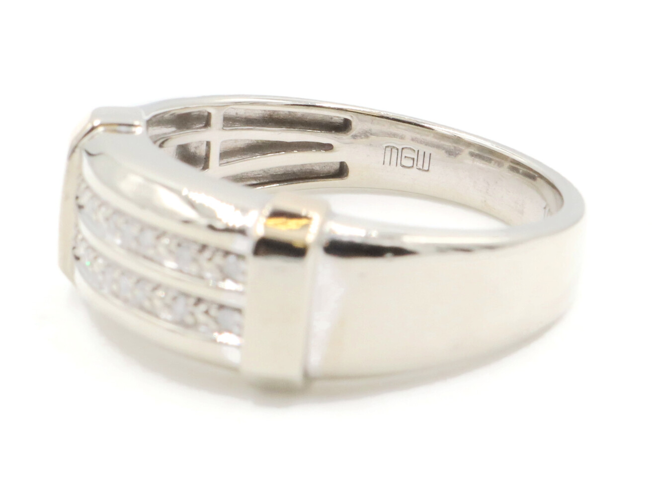 10KT White Gold Two Row 0.14 ctw Round Cut Diamond 9.2mm Men's Ring by MGW 3.8g | USA Pawn