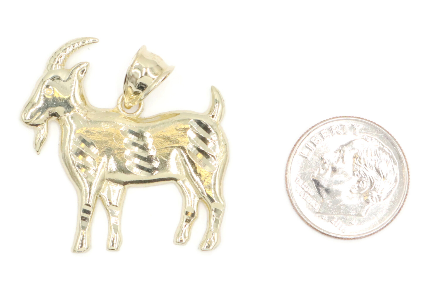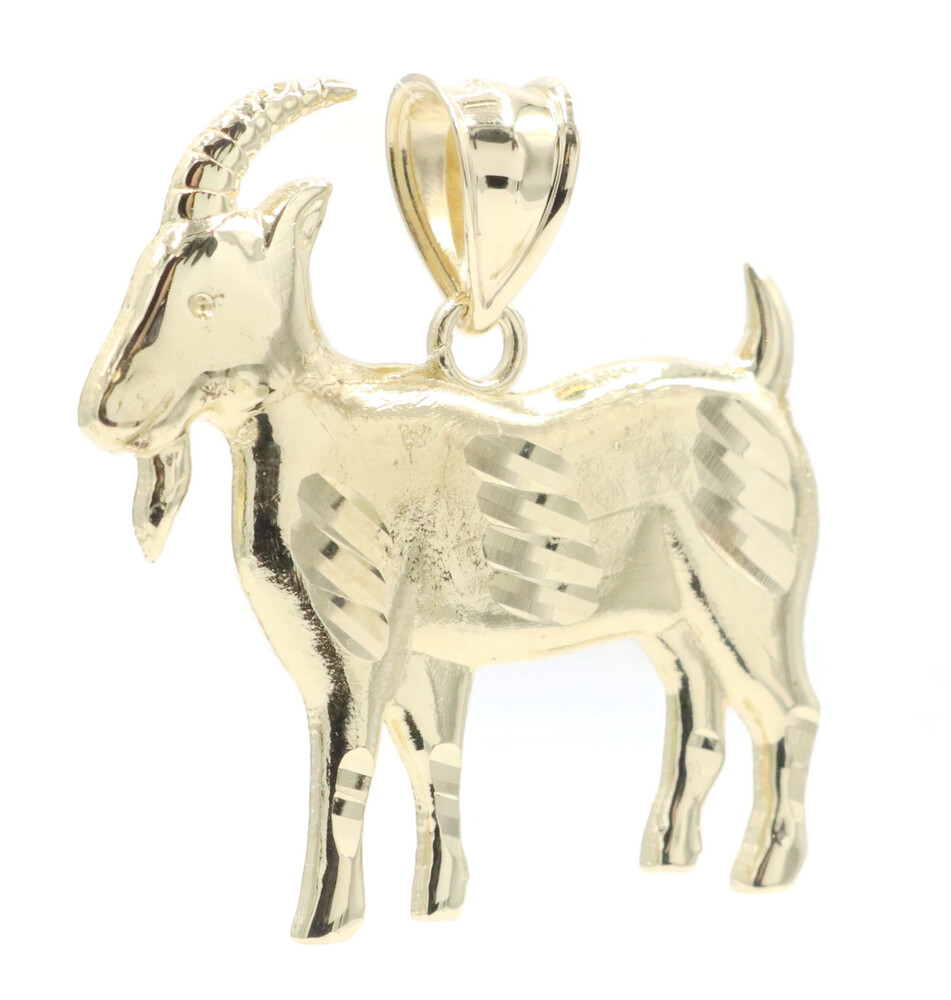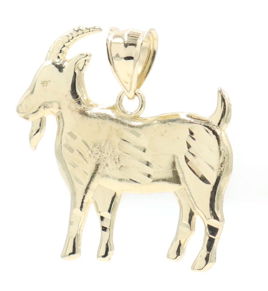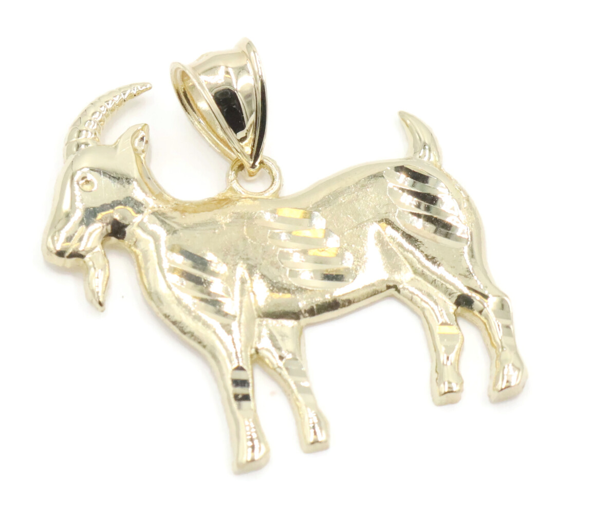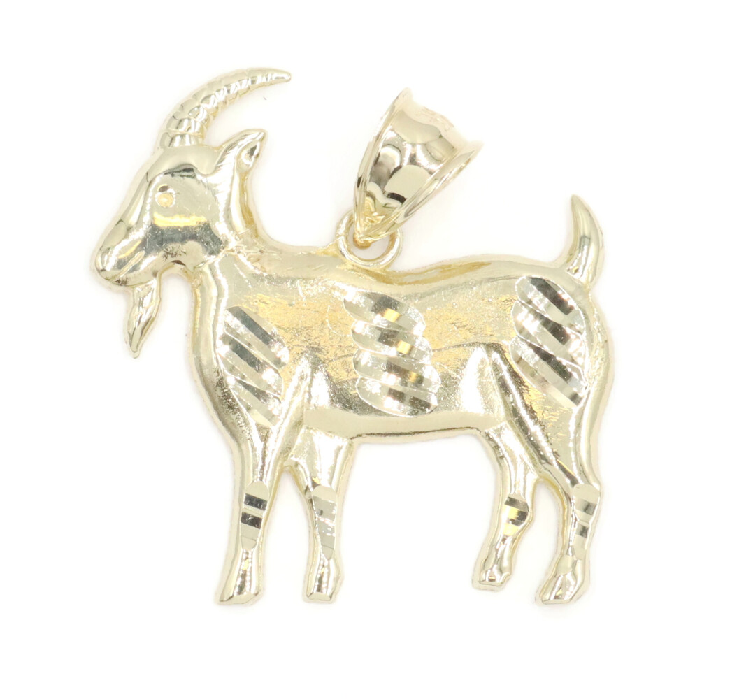 10KT Yellow Gold 1.2" High Shine Diamond The Goat Graphic Necklace Pendant 2.6g