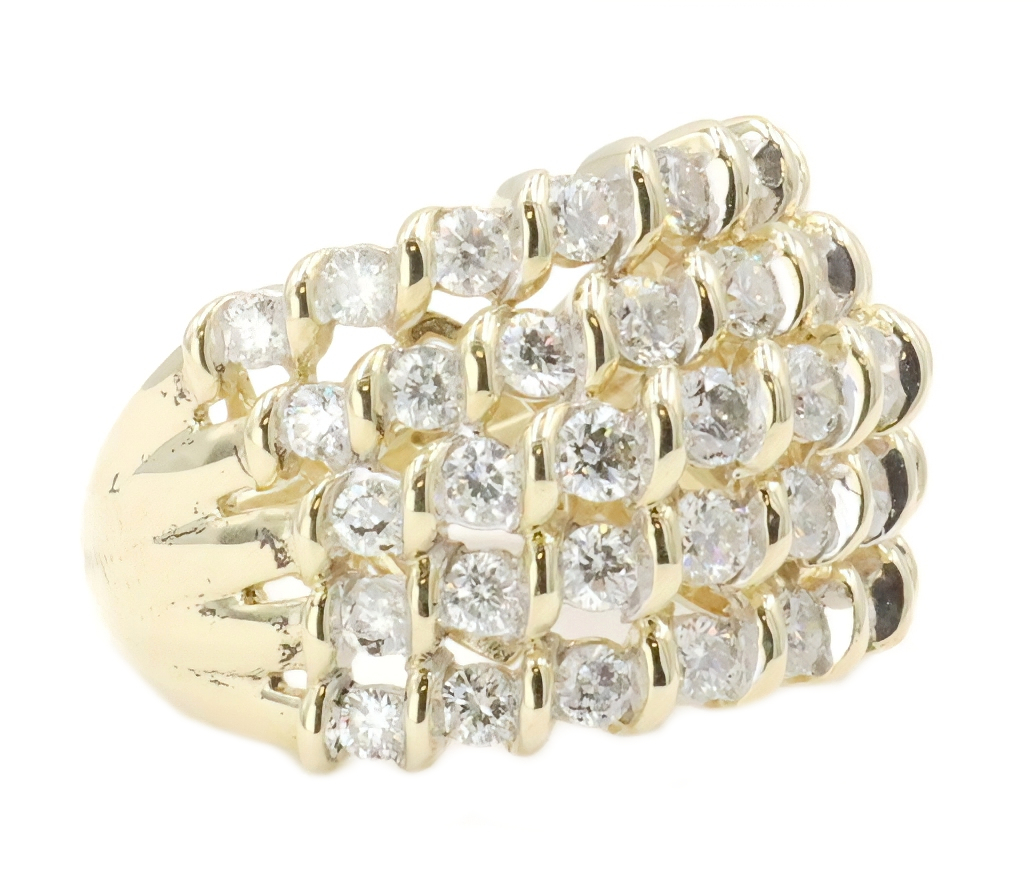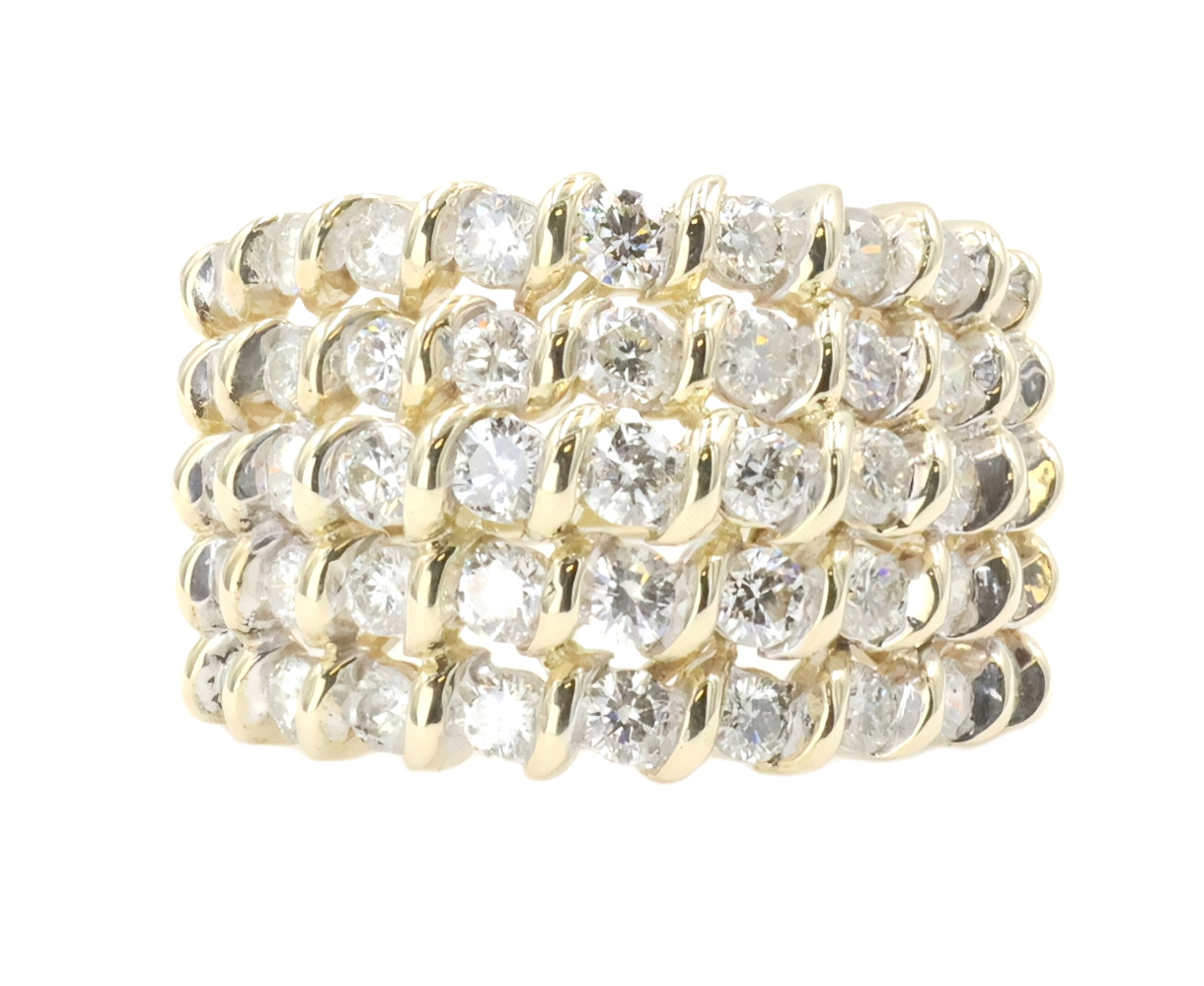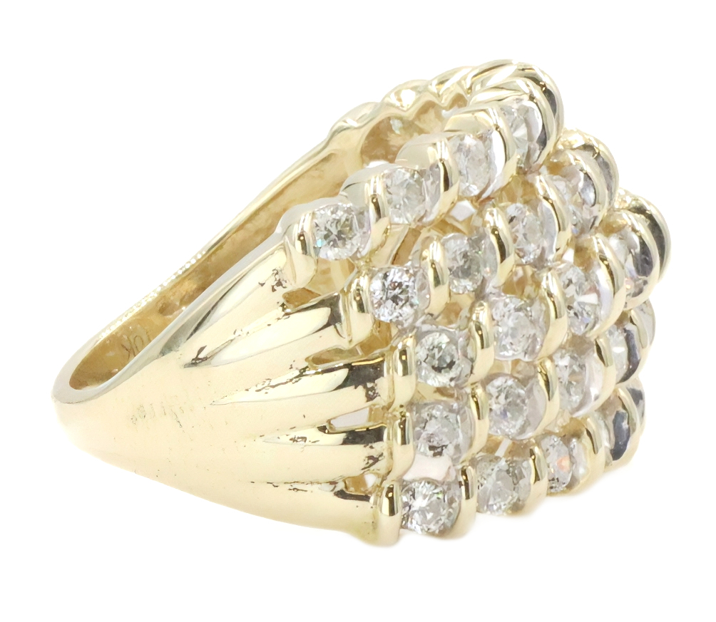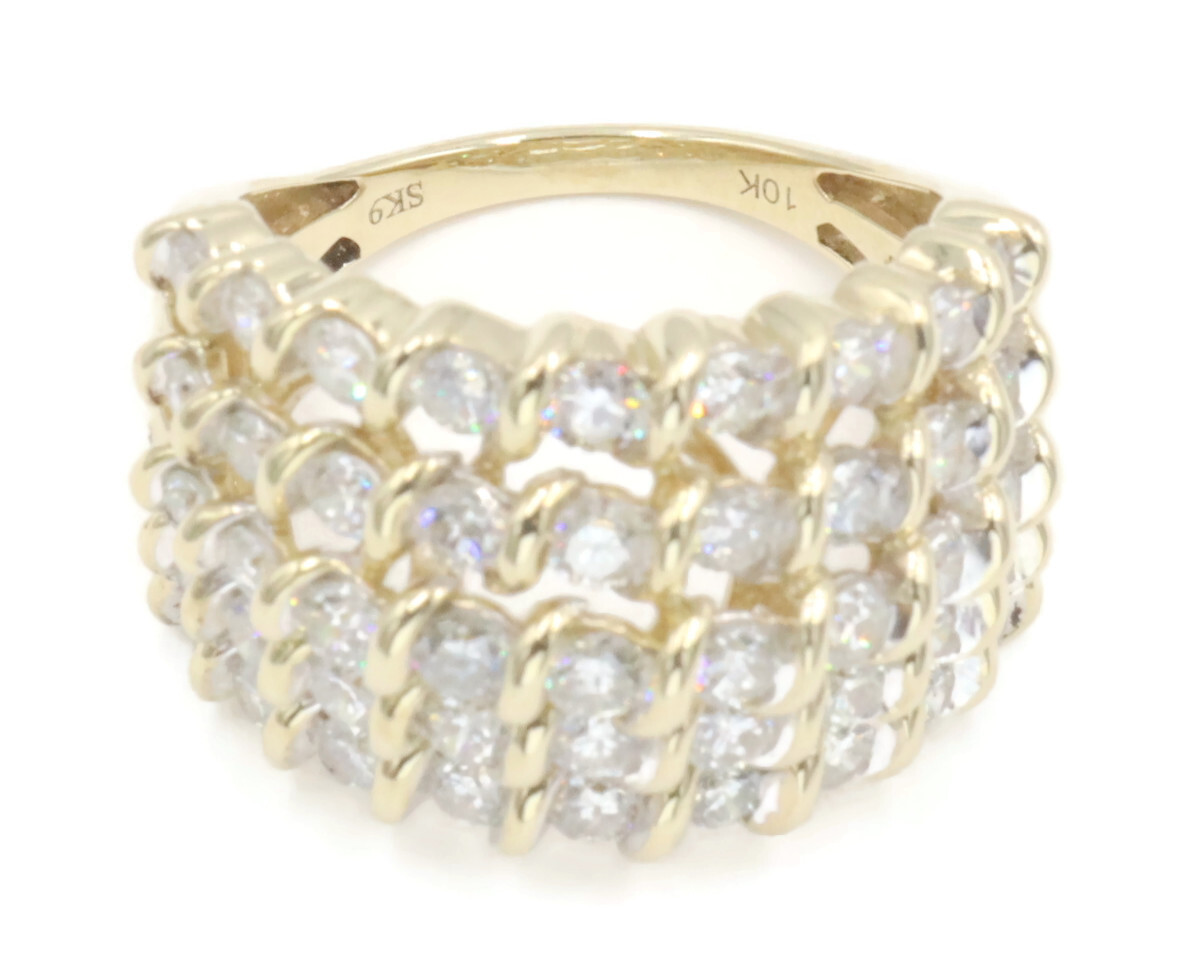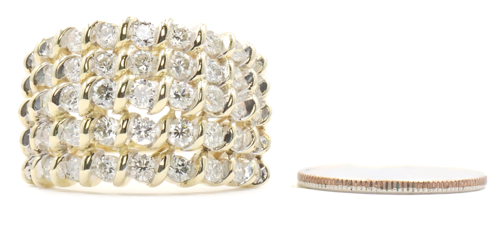 10KT Yellow Gold 1.85 ctw Round Diamond 5 Row Multi Layer Women's Estate Ring | USA Pawn