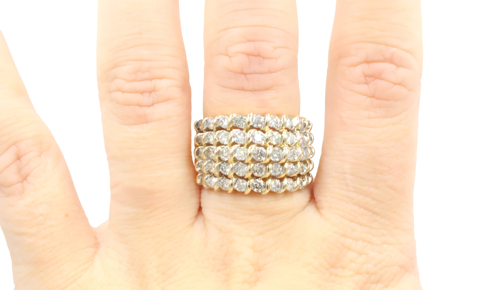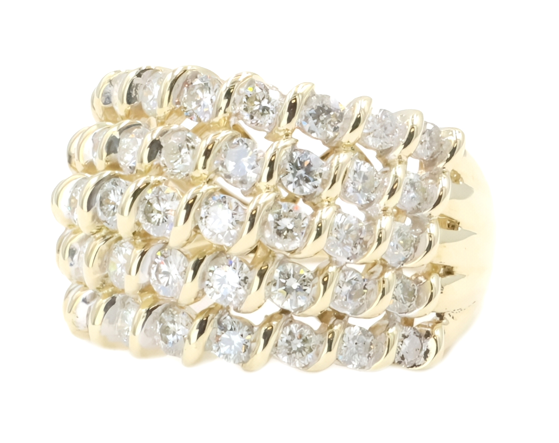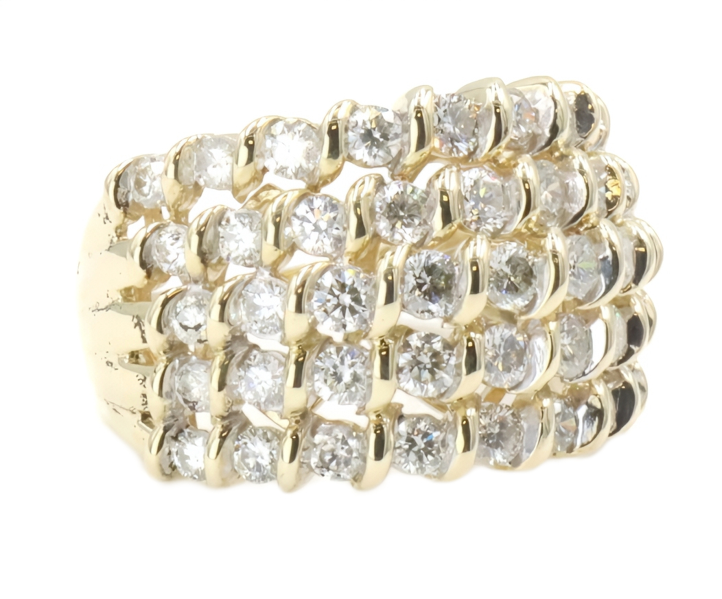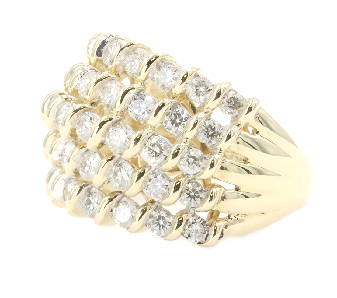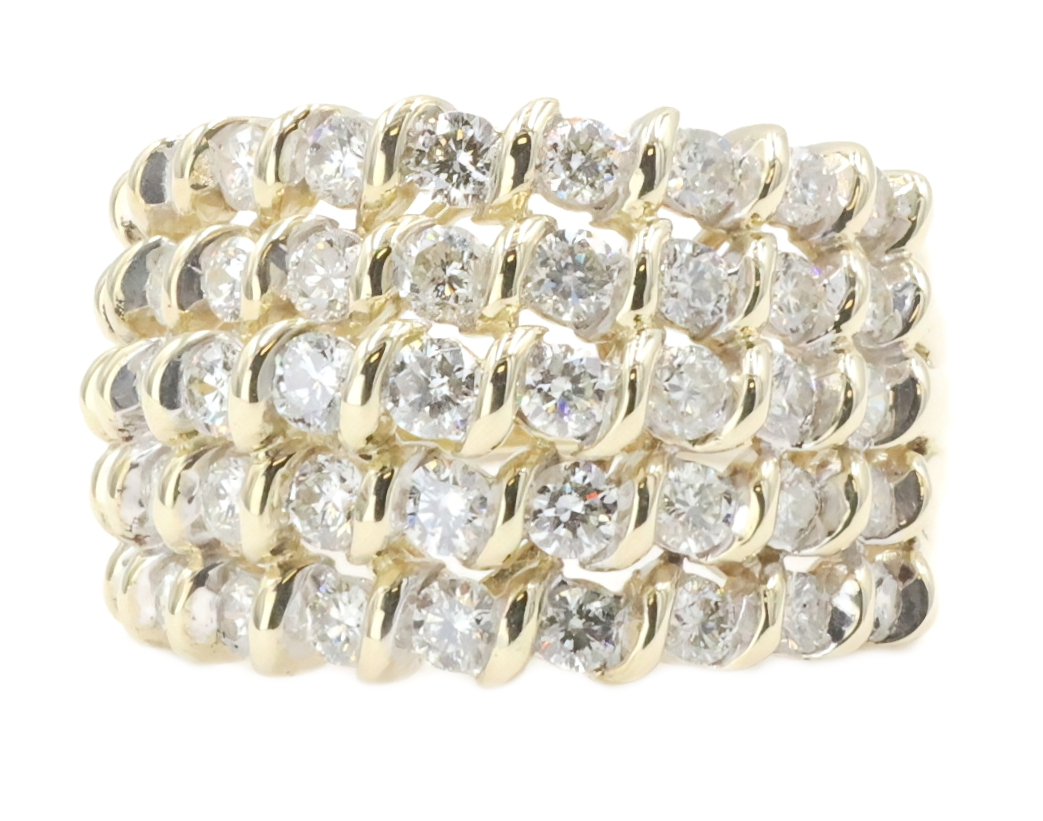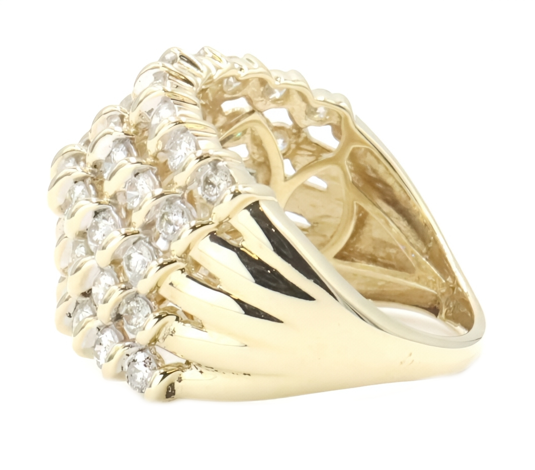 10KT Yellow Gold 1.85 ctw Round Diamond 5 Row Multi Layer Women's Estate Ring | USA Pawn