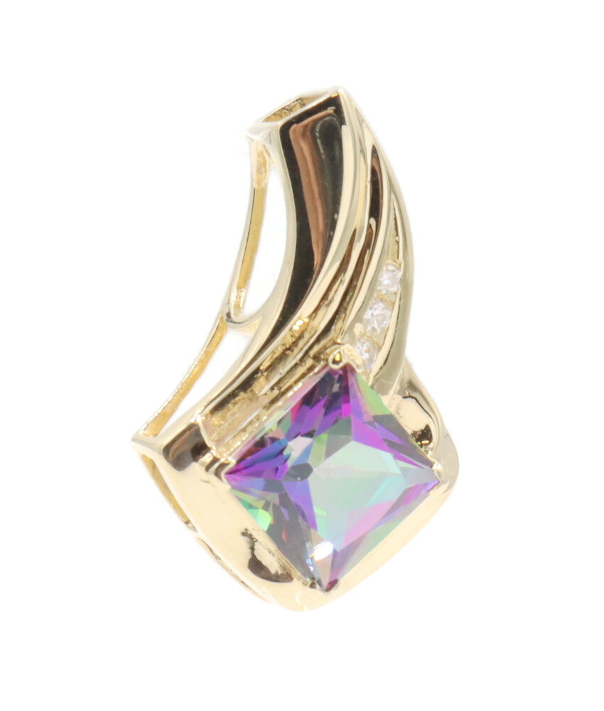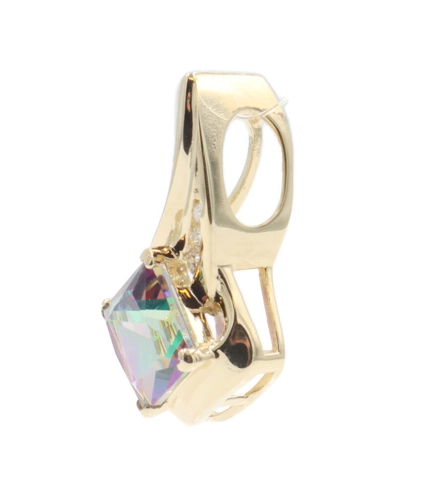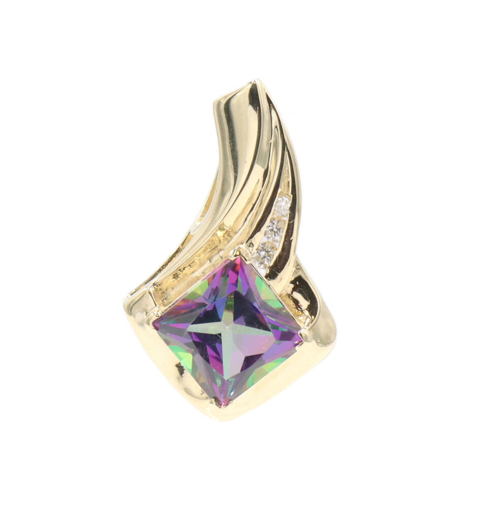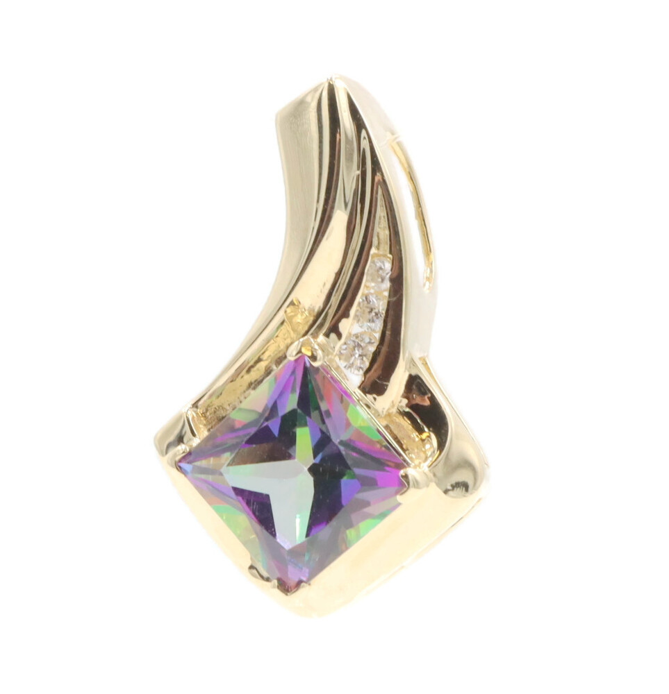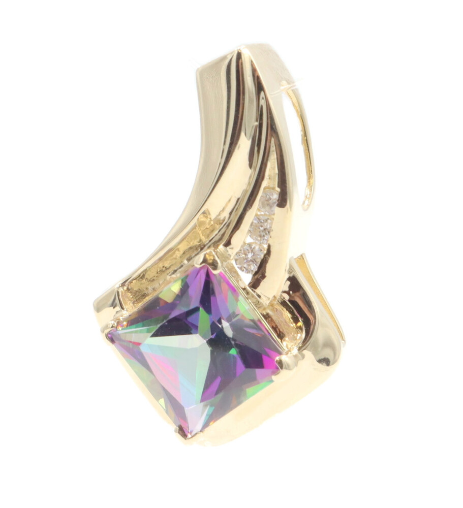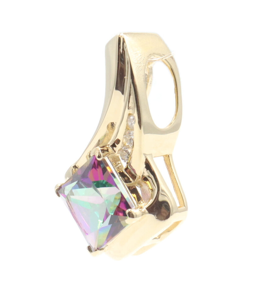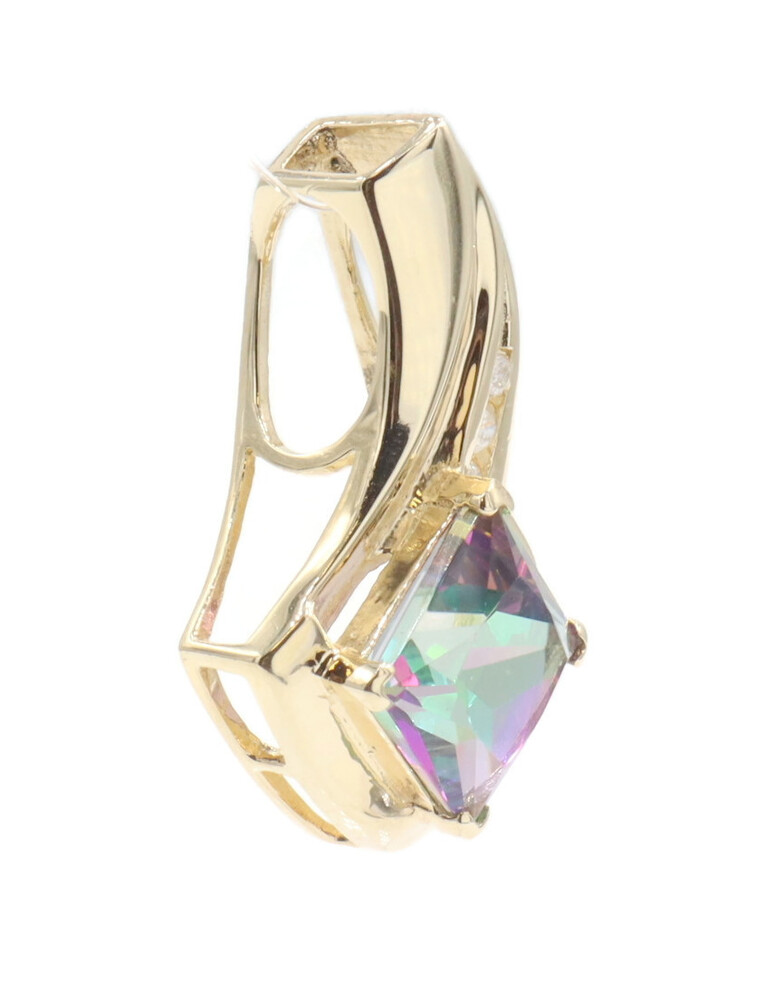 10KT Yellow Gold 3.20 ctw Princess Cut Mystic Topaz & 0.10 ctw Diamond Pendant | USA Pawn