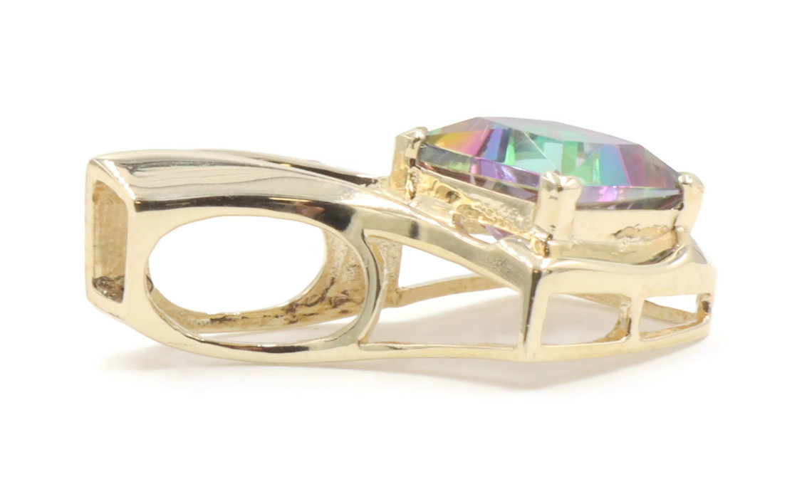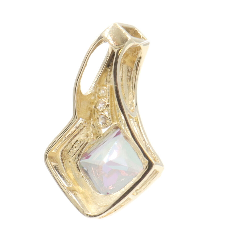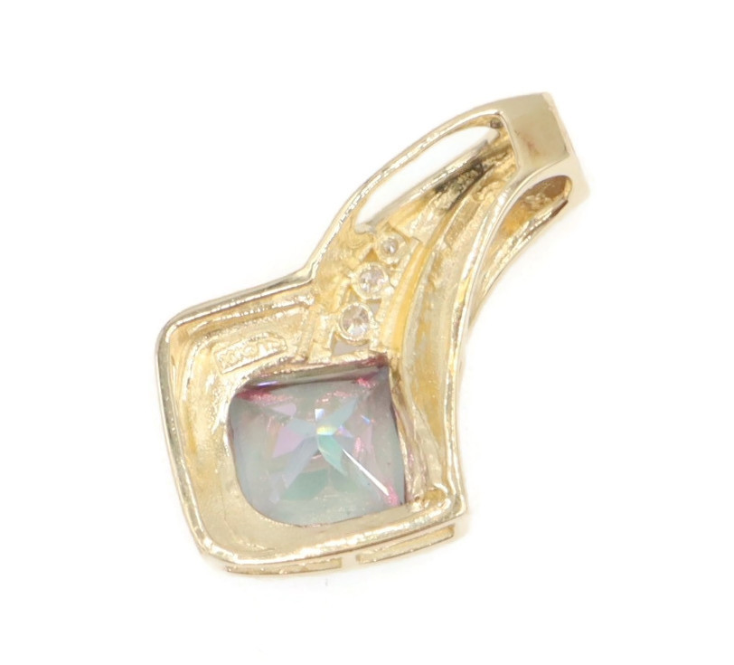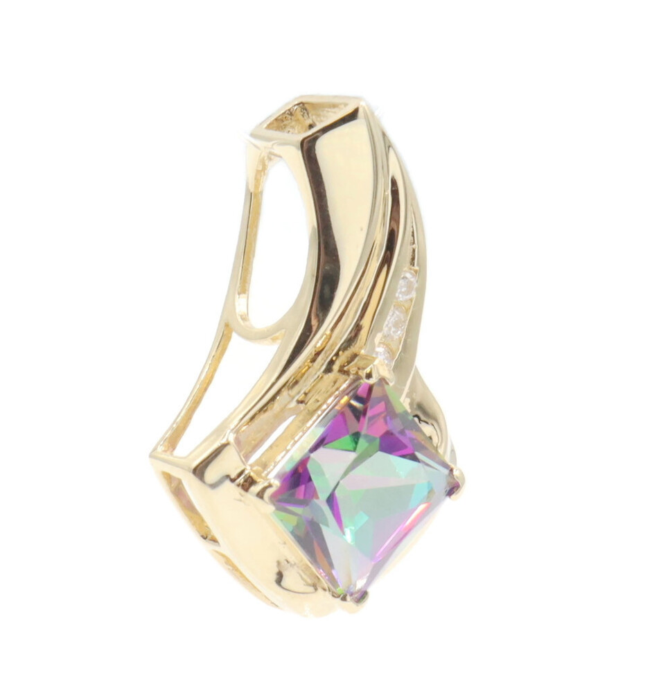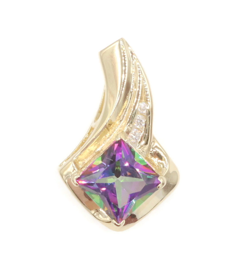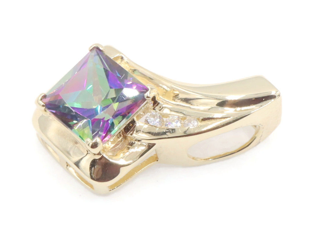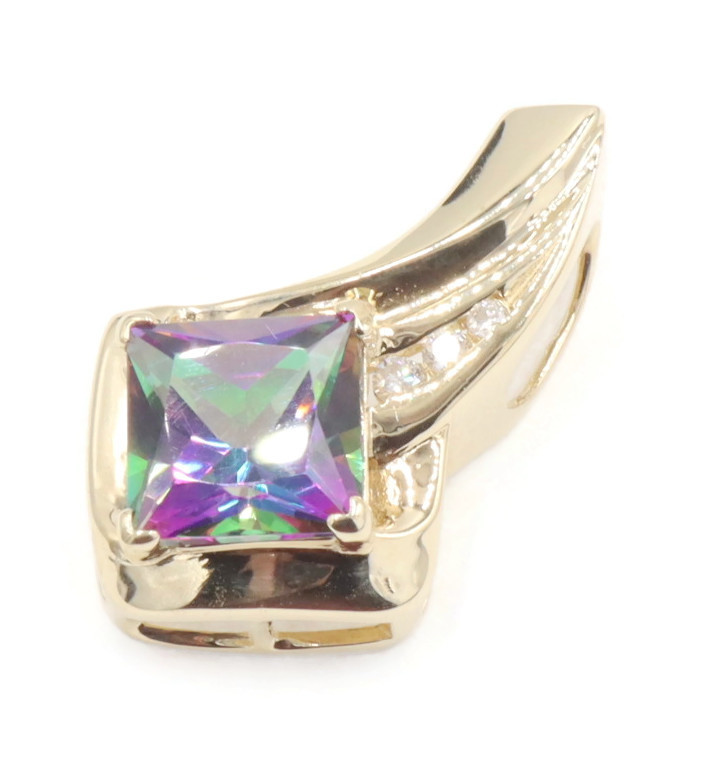 10KT Yellow Gold 3.20 ctw Princess Cut Mystic Topaz & 0.10 ctw Diamond Pendant | USA Pawn