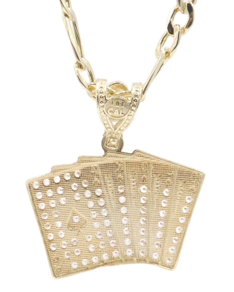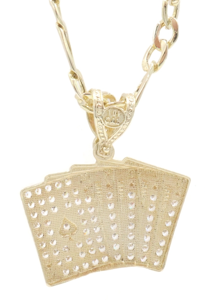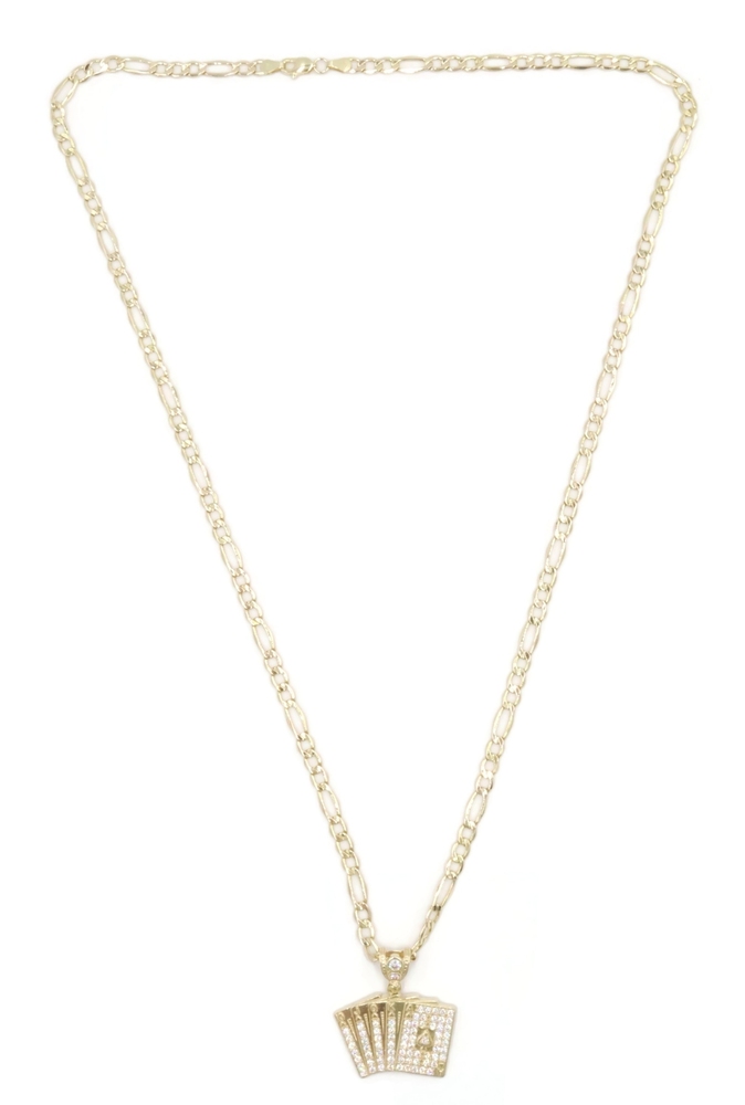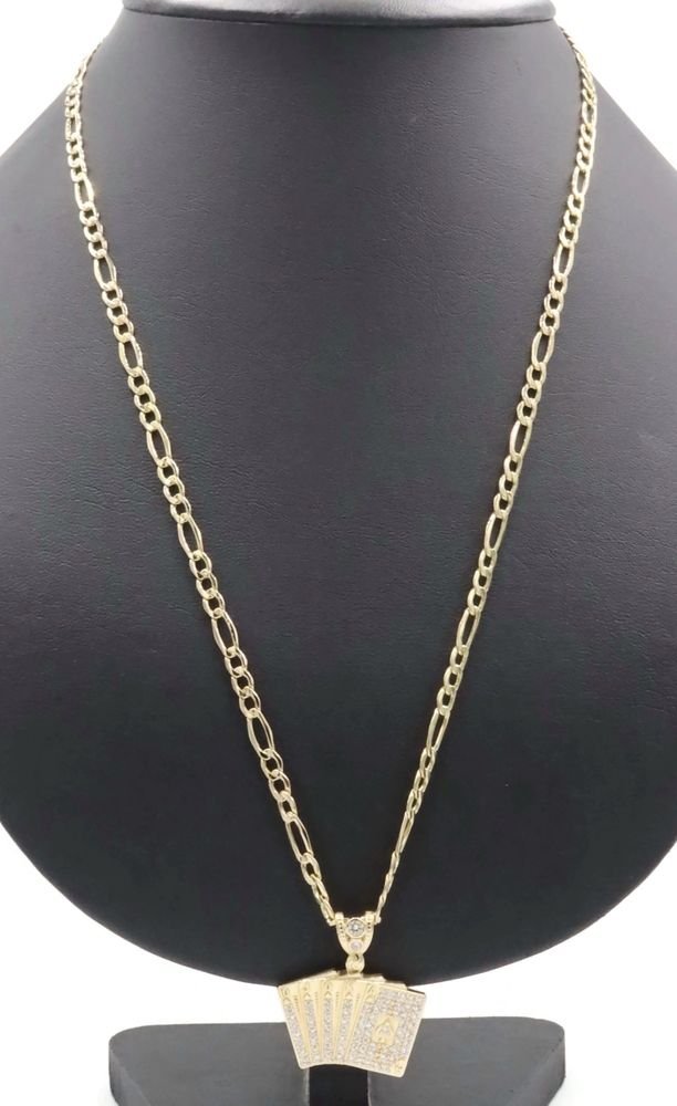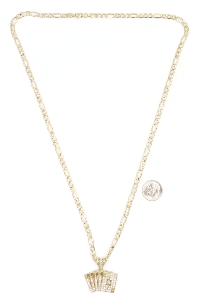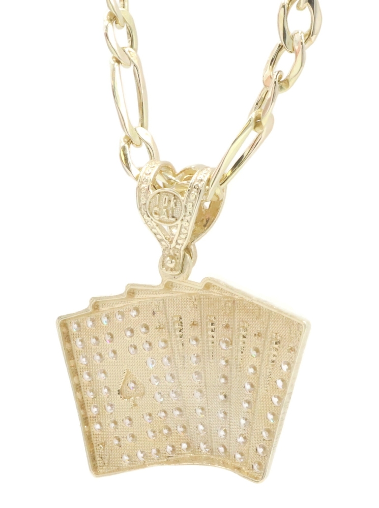 10KT Yellow Gold CZ Deck of Card Pendant with 24" Figaro Chain Necklace 9.8g | USA Pawn