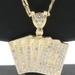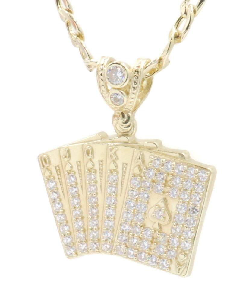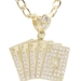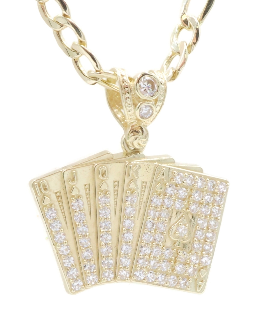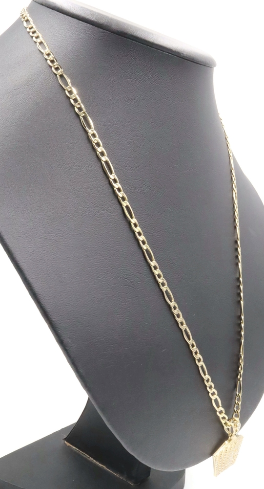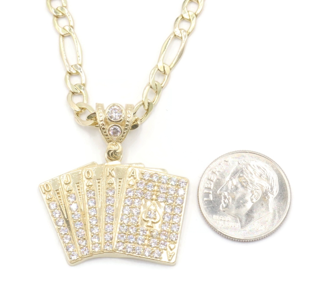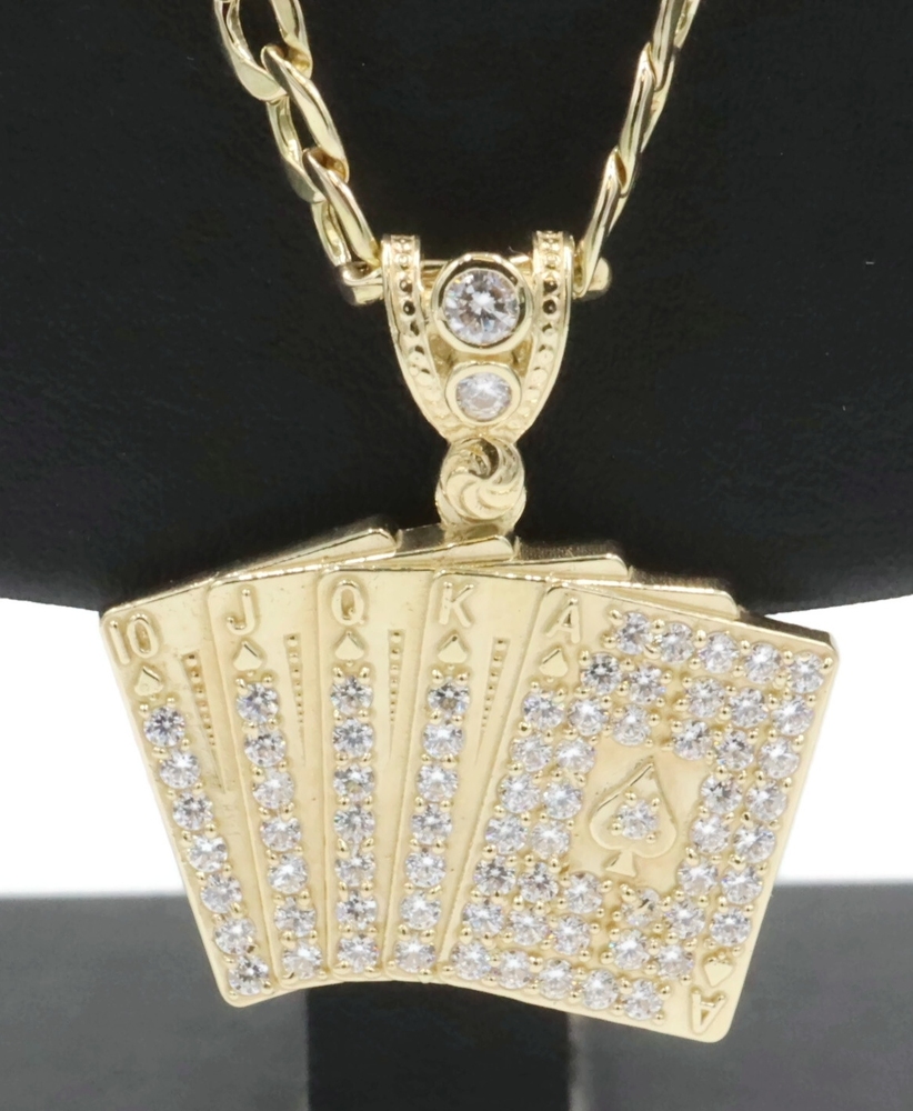 10KT Yellow Gold CZ Deck of Card Pendant with 24" Figaro Chain Necklace 9.8g | USA Pawn