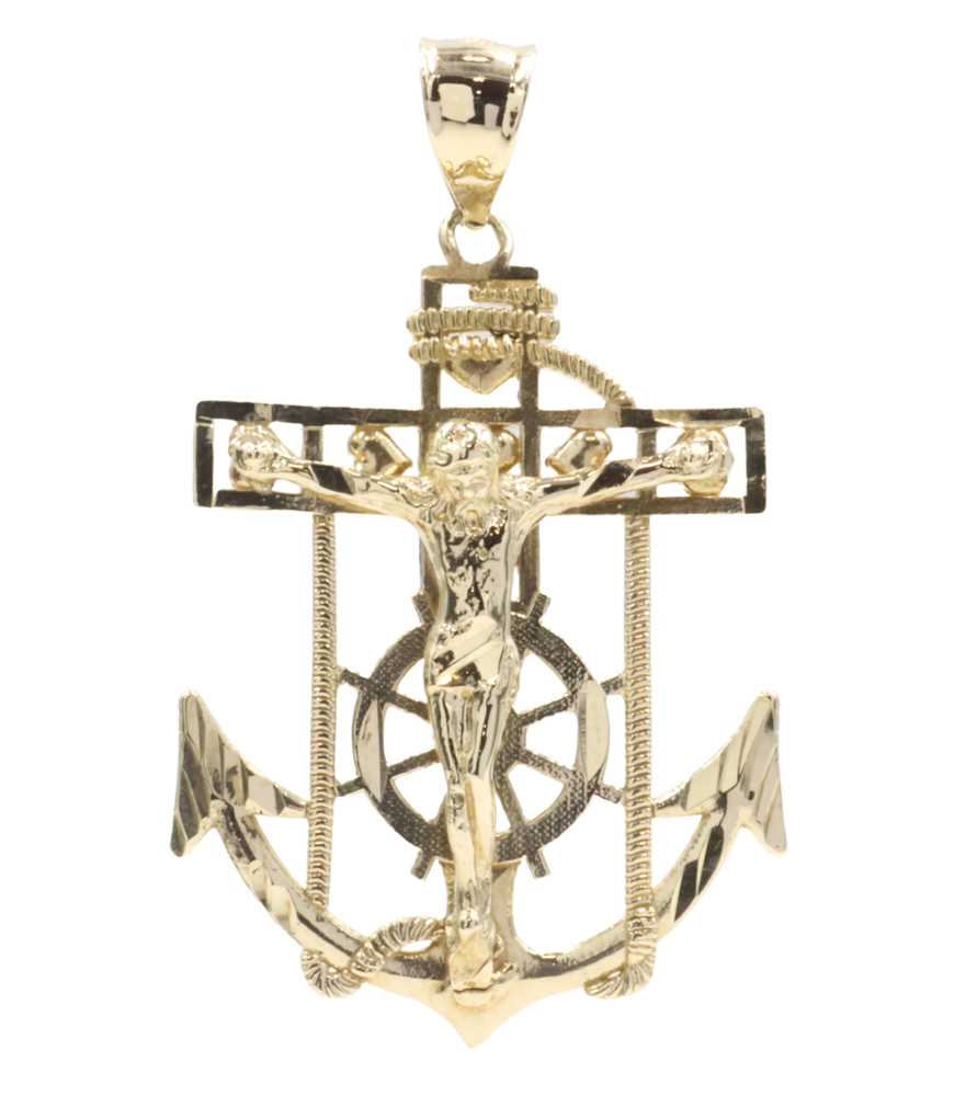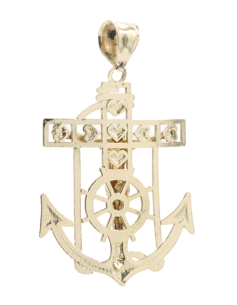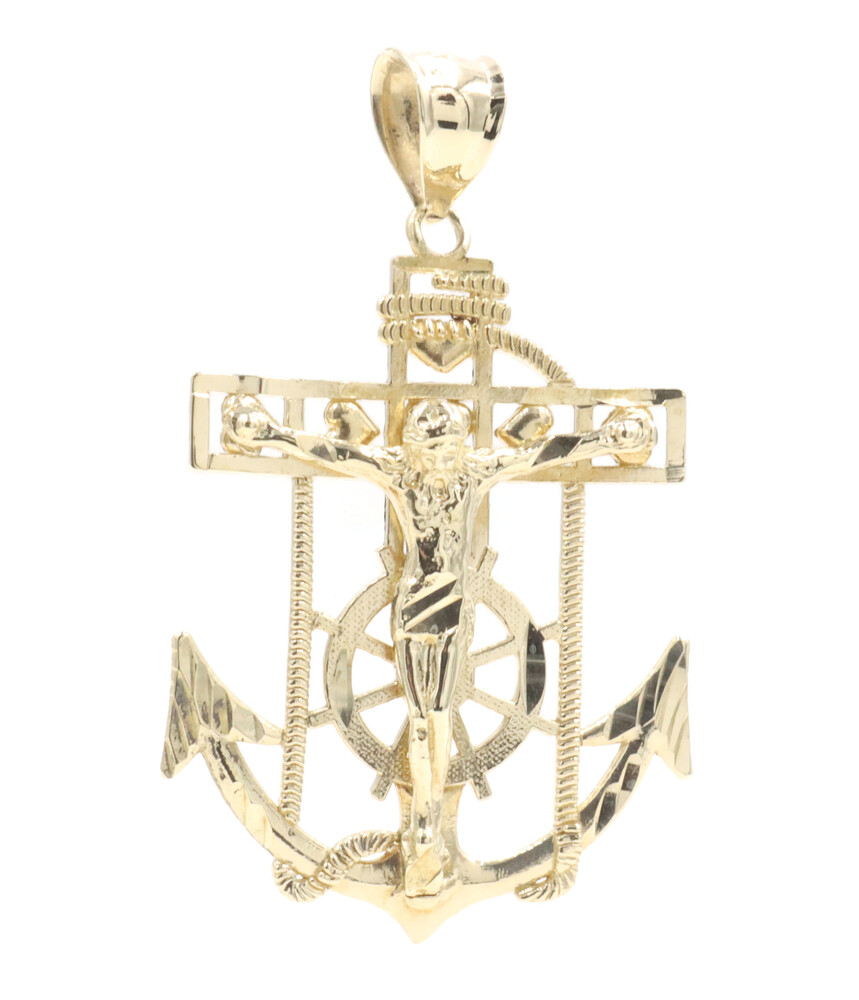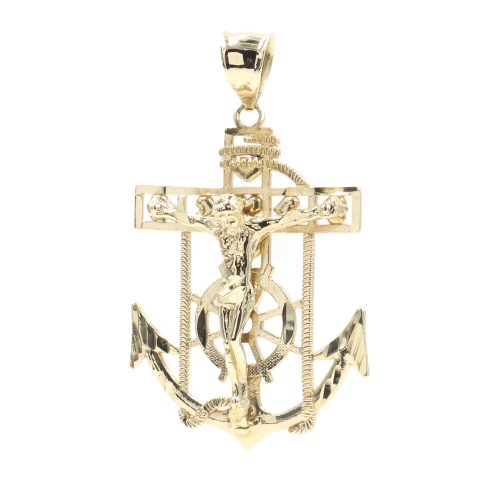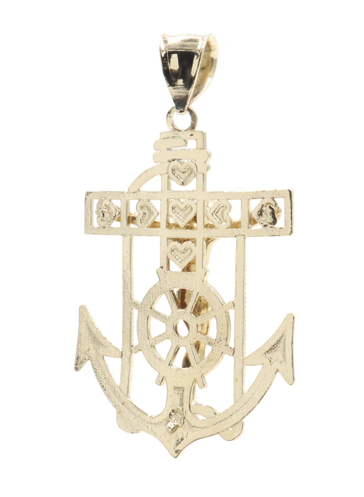 10KT Yellow Gold Detailed Crucifix 43.5mm Anchor Necklace Pendant - 4.09g by CAL | USA Pawn