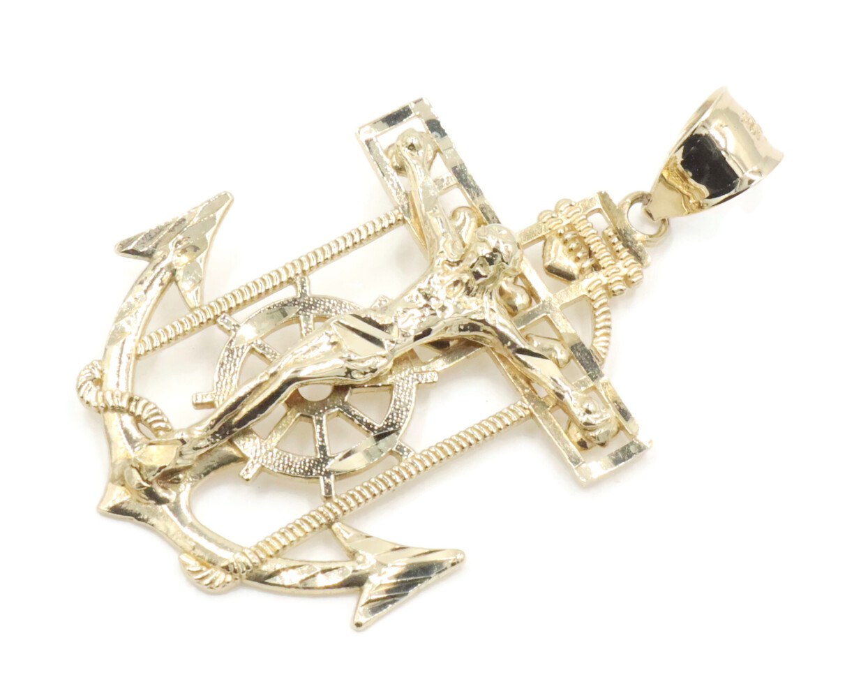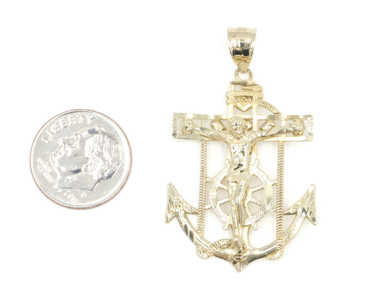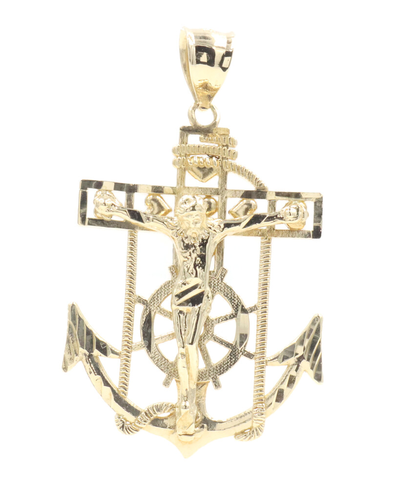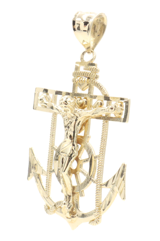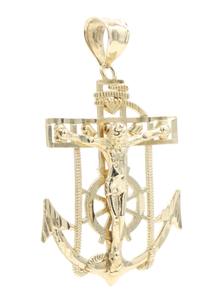 10KT Yellow Gold Detailed Crucifix 43.5mm Anchor Necklace Pendant - 4.09g by CAL | USA Pawn
