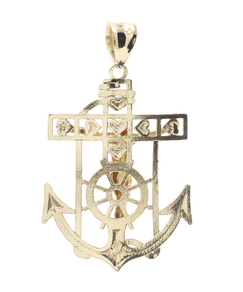 10KT Yellow Gold Detailed Crucifix 43.5mm Anchor Necklace Pendant - 4.09g by CAL
