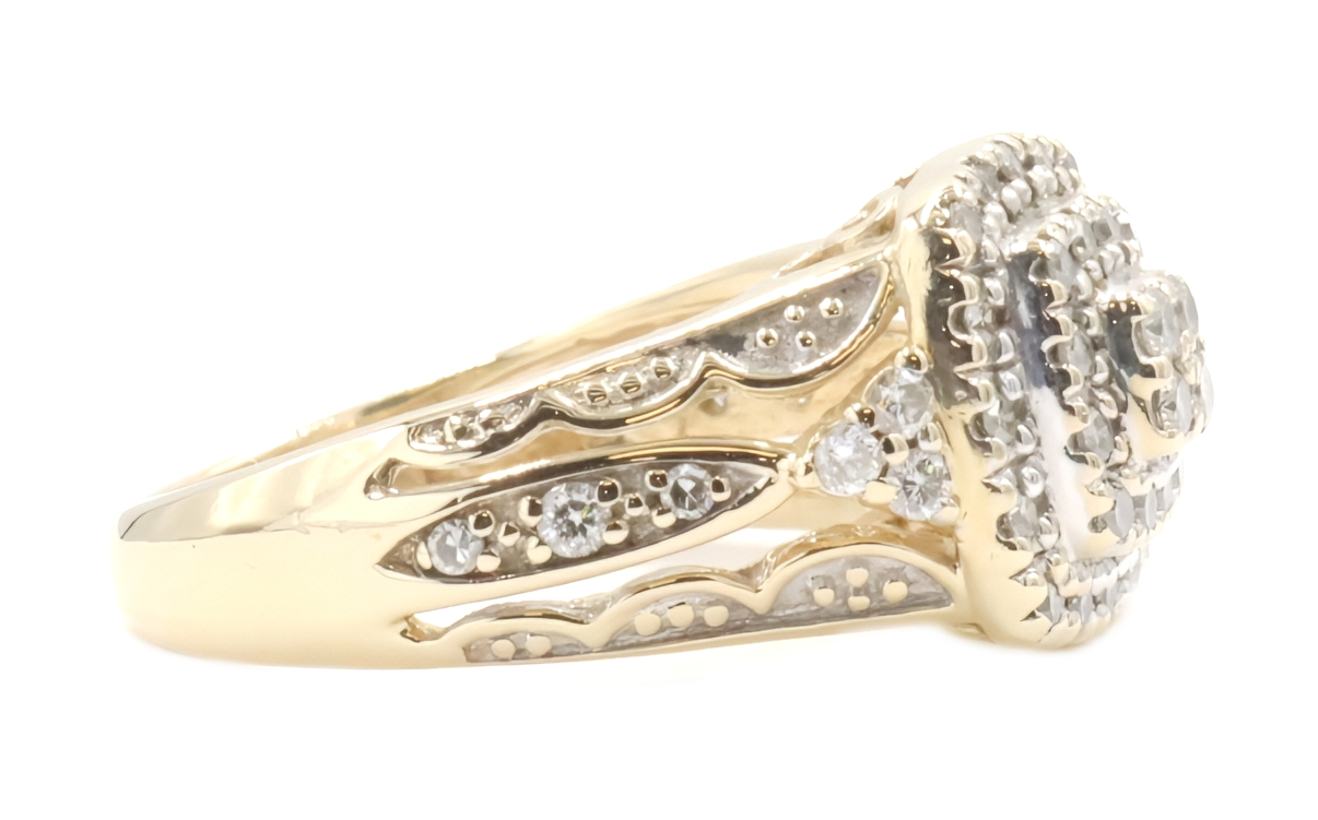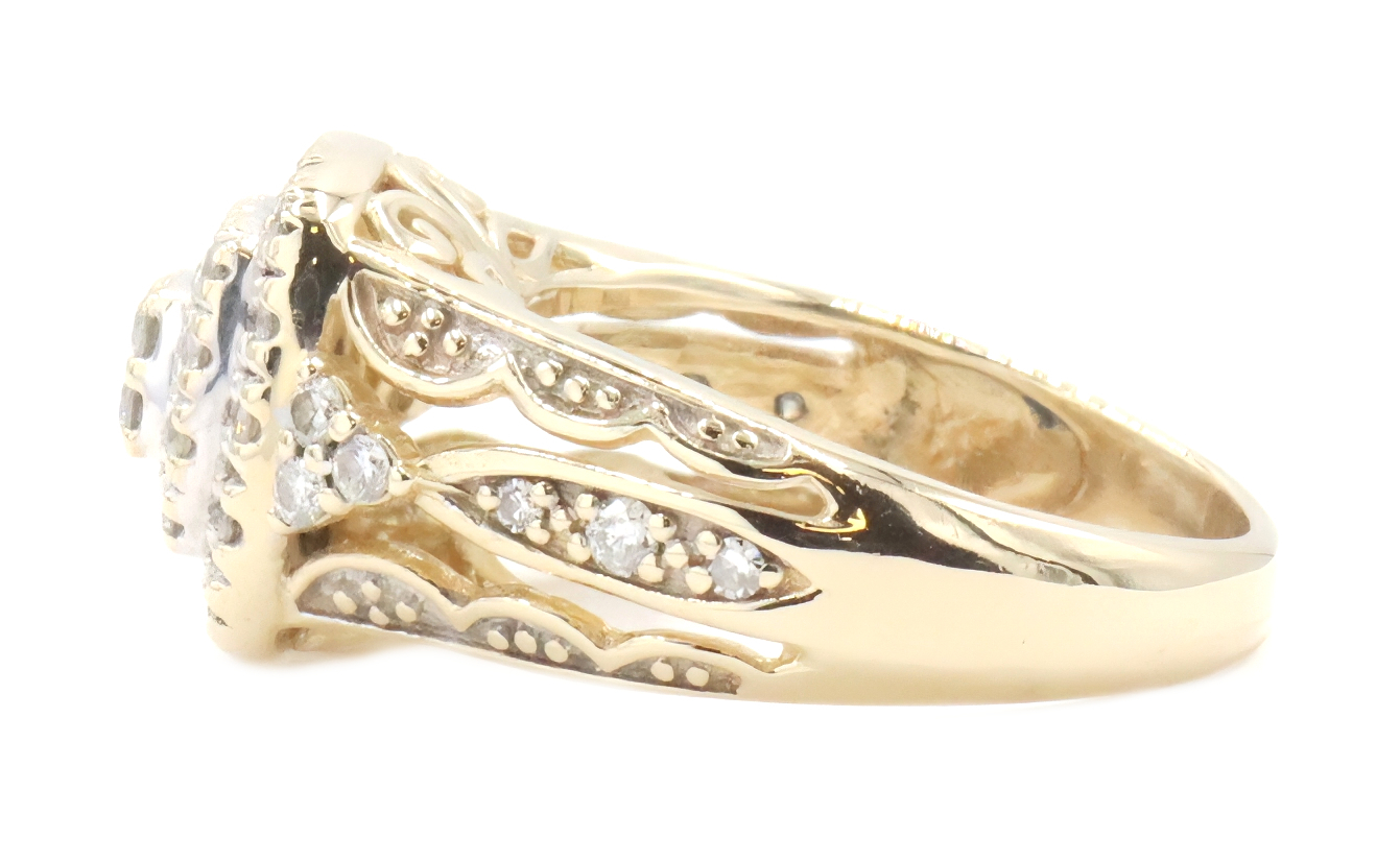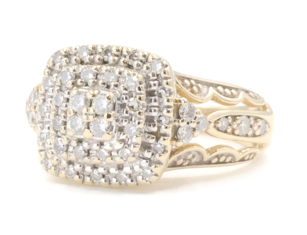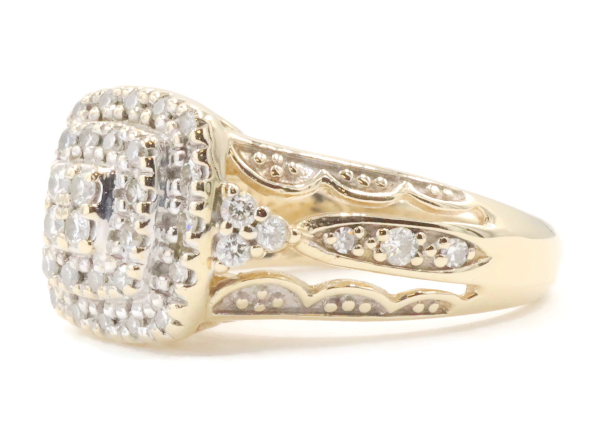 10KT Yellow Gold Women's 0.52 ctw Round Diamond Double Halo Engagement Ring | USA Pawn