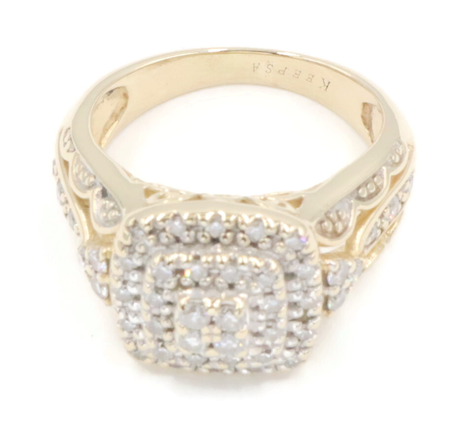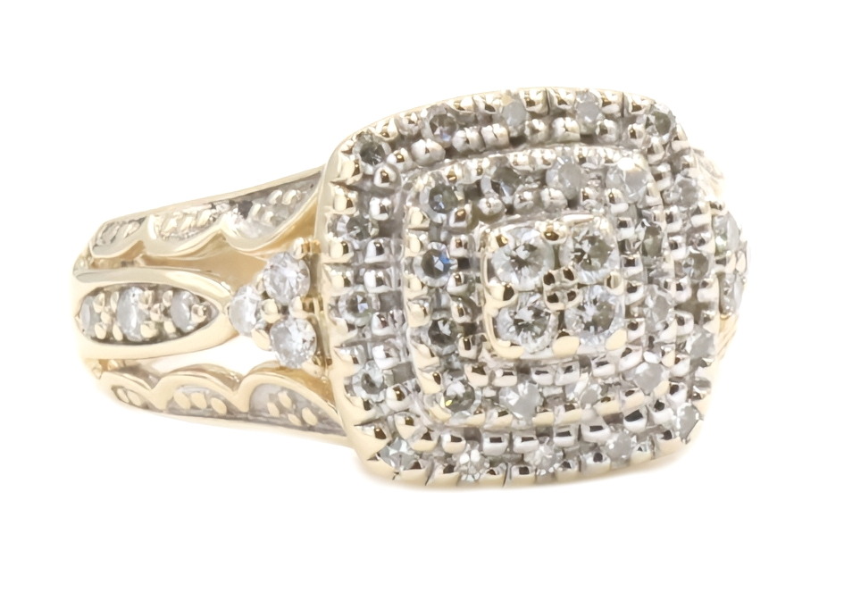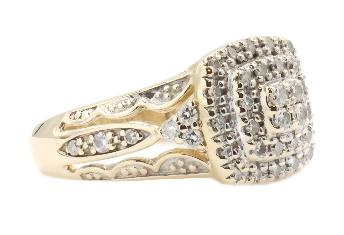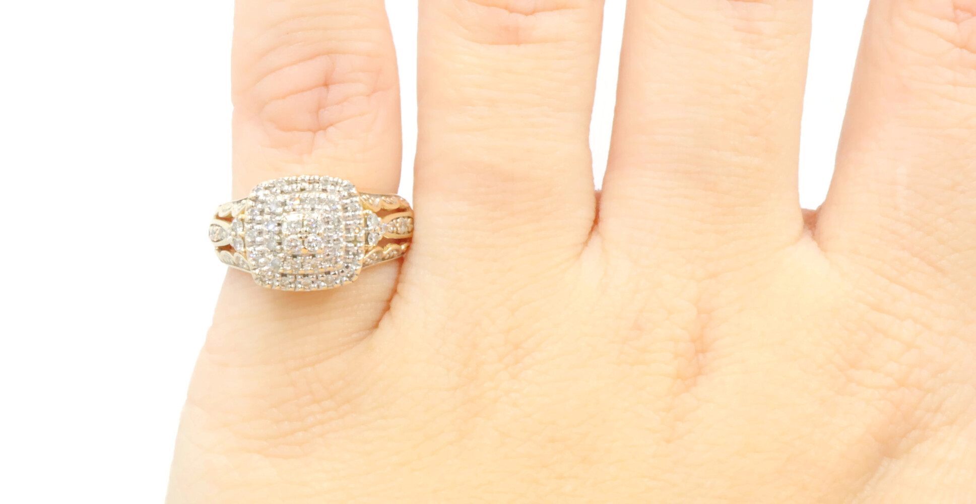 10KT Yellow Gold Women's 0.52 ctw Round Diamond Double Halo Engagement Ring | USA Pawn