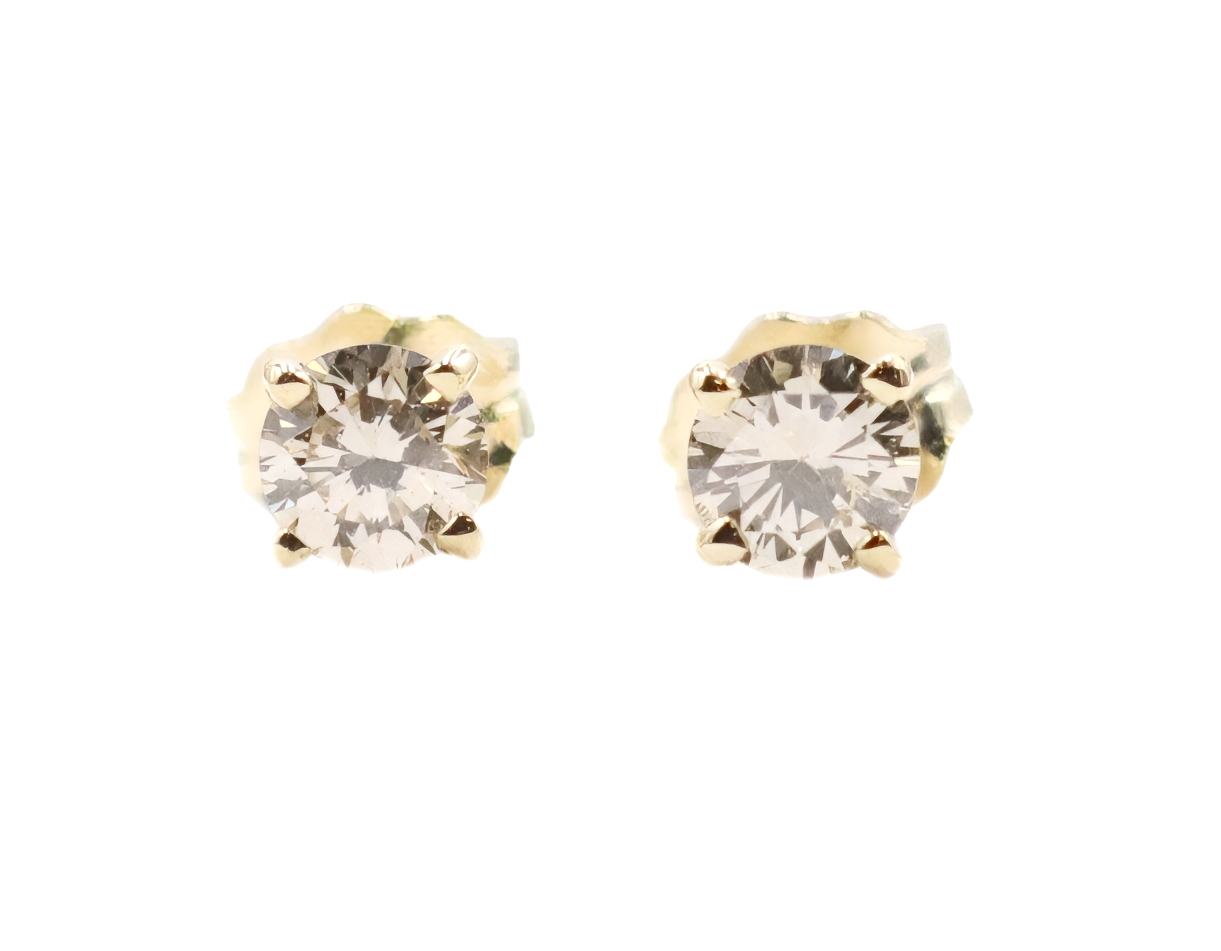1/3 cttw Round Brilliant Cut Diamond 14KT Yellow Gold Solitaire Stud Earrings.   | USA Pawn