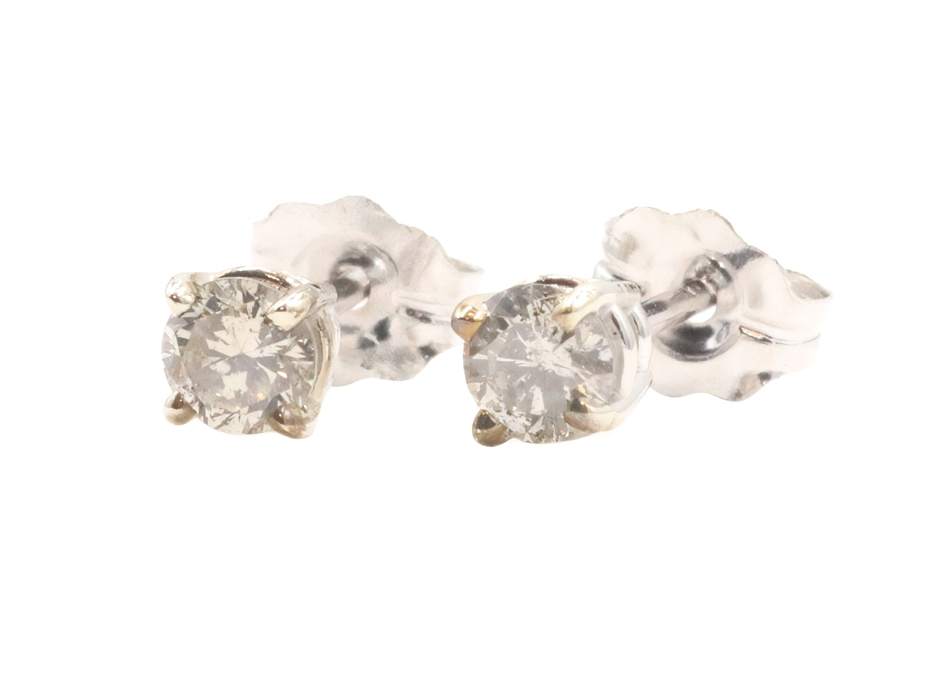 1/3 cttw Round Brilliant Cut Diamond Solitaire Stud Earrings in 14KT White Gold | USA Pawn