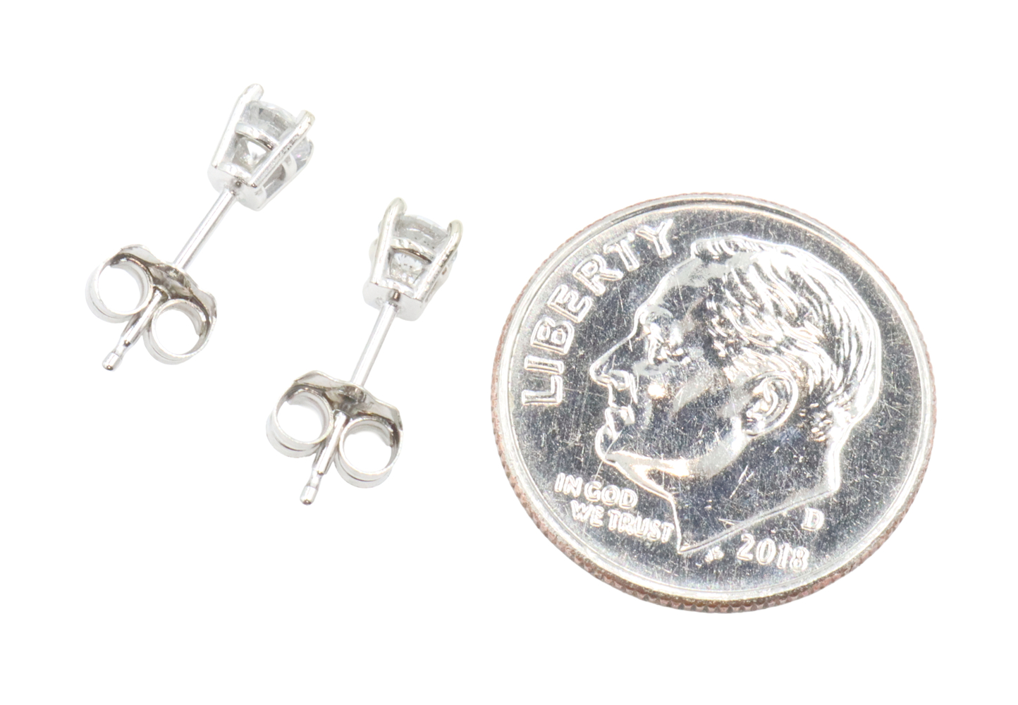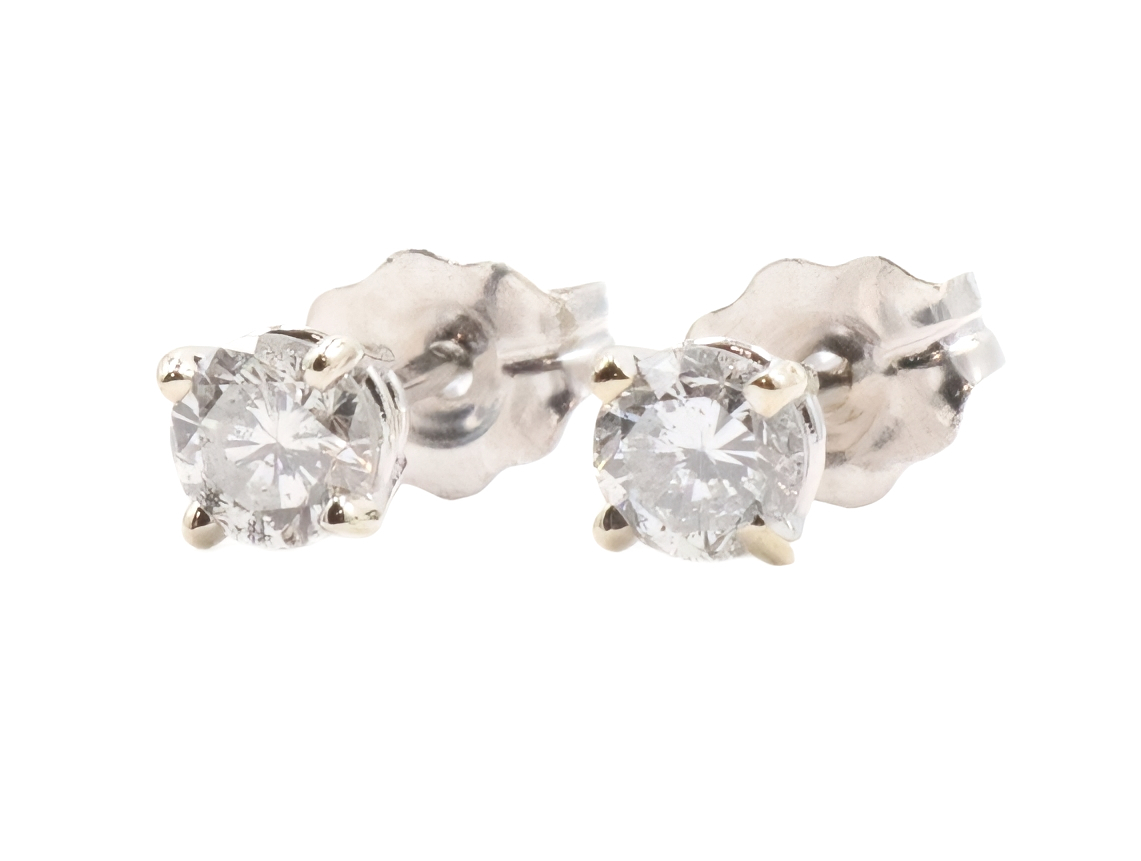1/3 cttw Round Brilliant Diamond Solitaire Stud Earrings in 14K White Gold. These earrings come with 14Kt white gold earring backs.