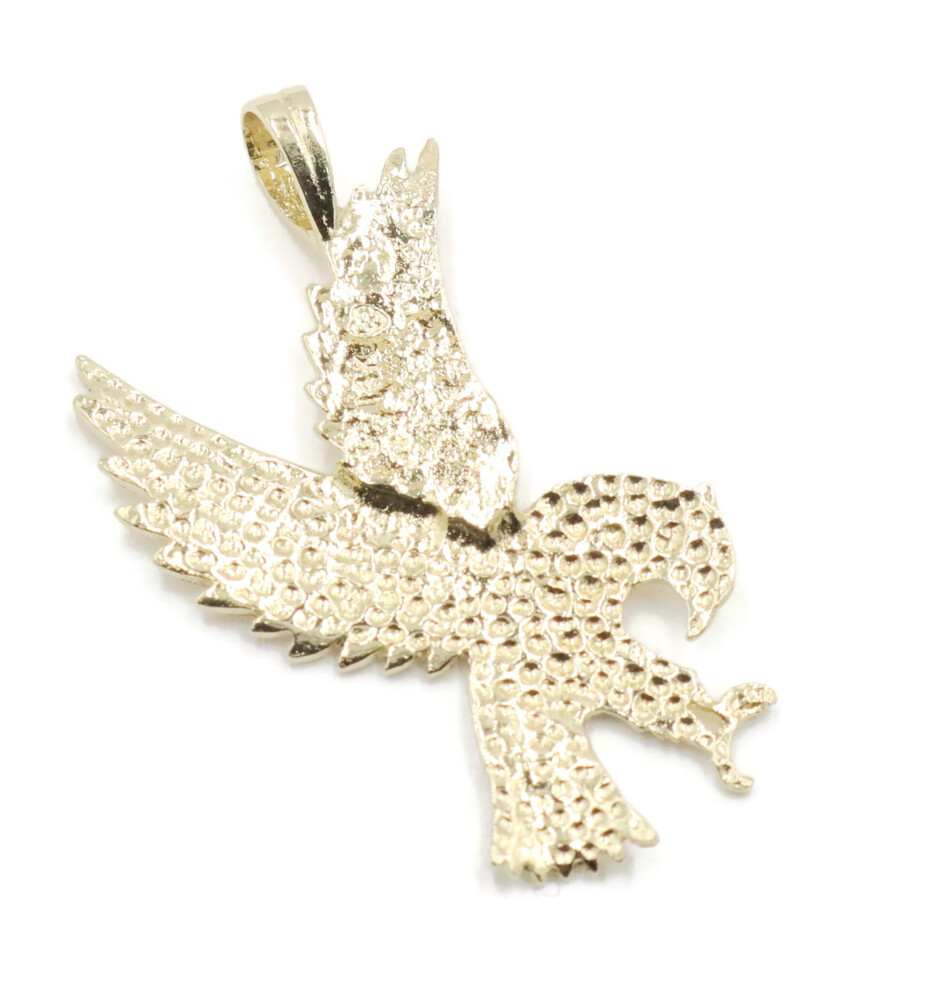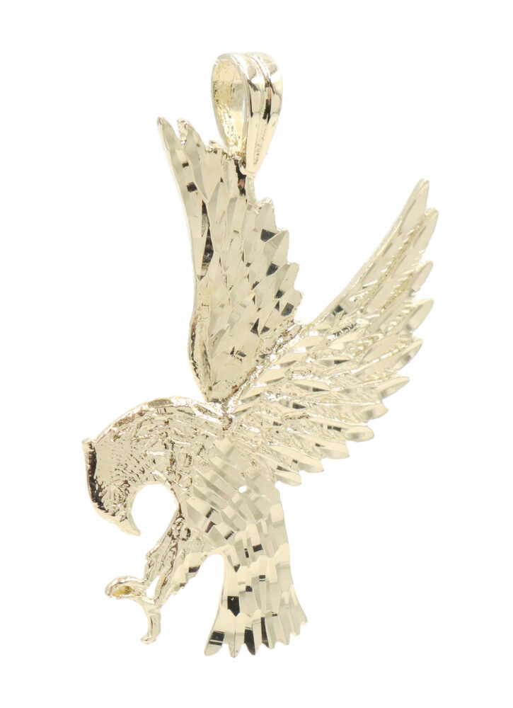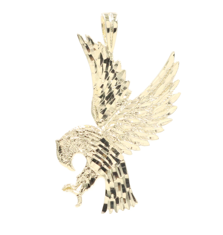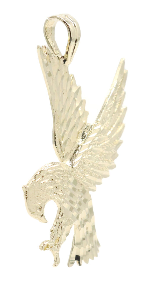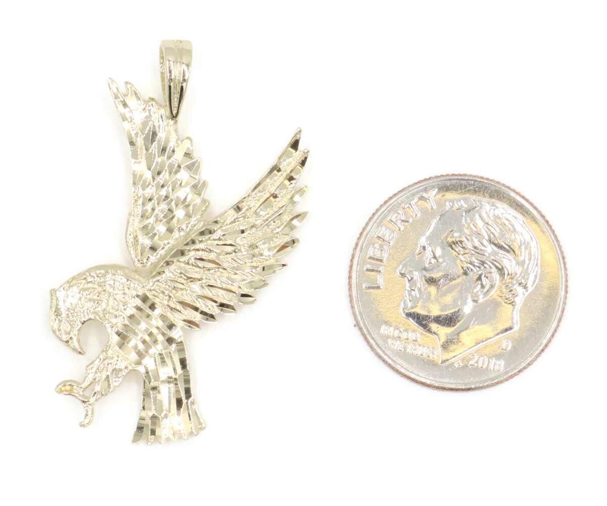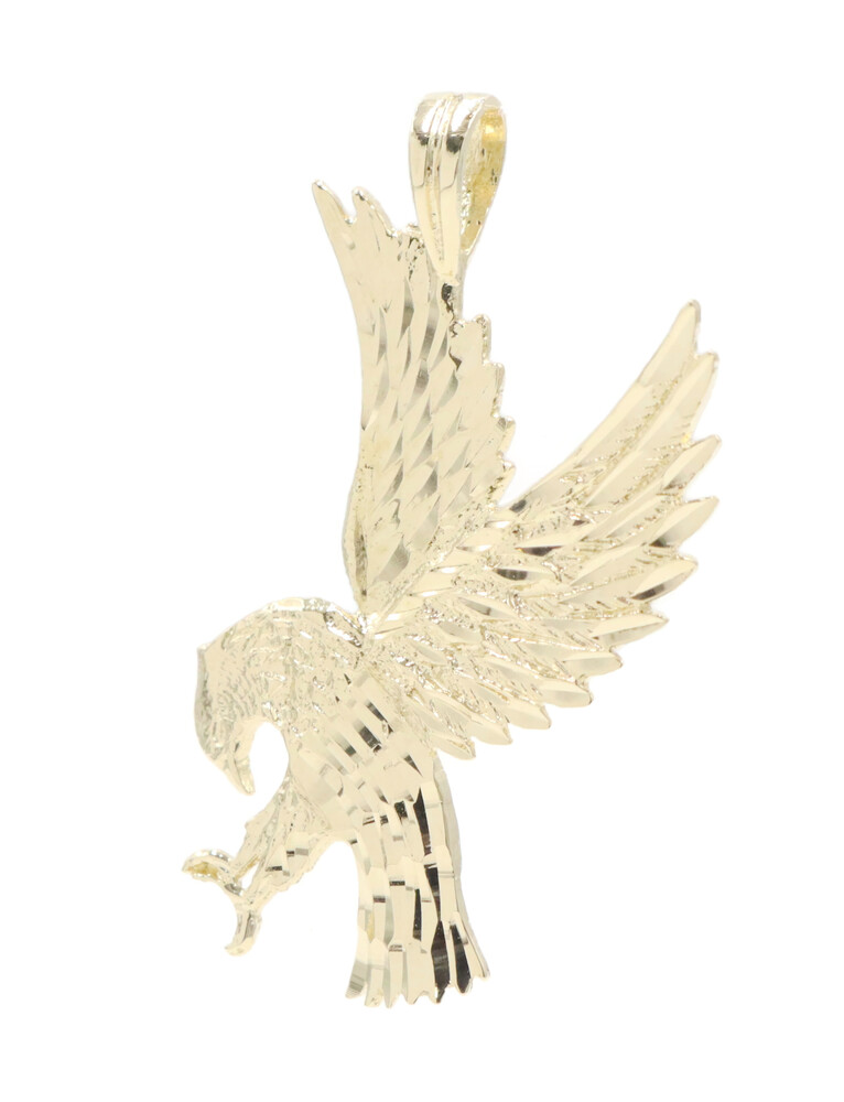 14KT Yellow Gold 1.3" High Shine Diamond Cut Soaring Eagle Necklace Pendant 2.1g | USA Pawn