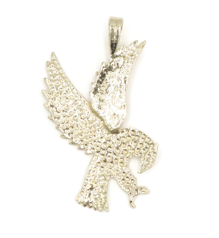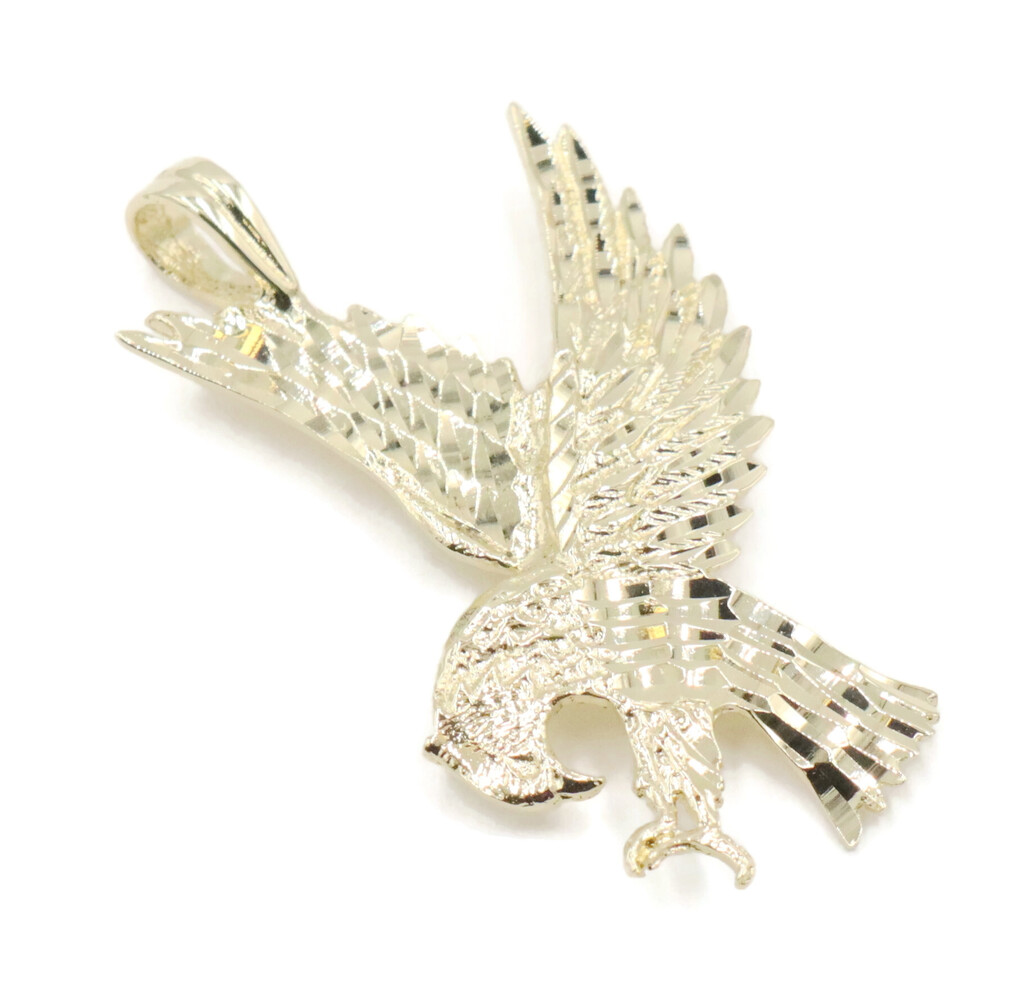 14KT Yellow Gold 1.3" High Shine Diamond Cut Soaring Eagle Necklace Pendant 2.1g