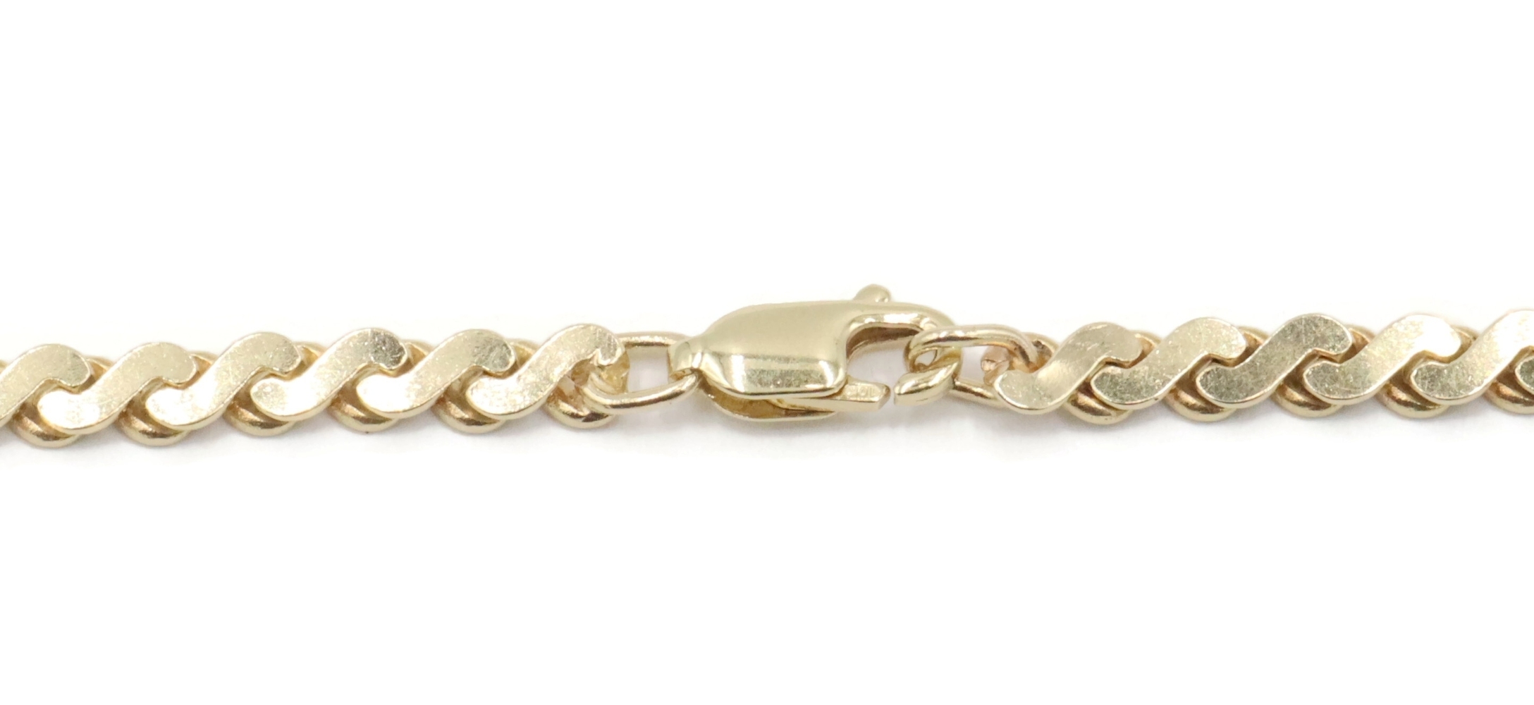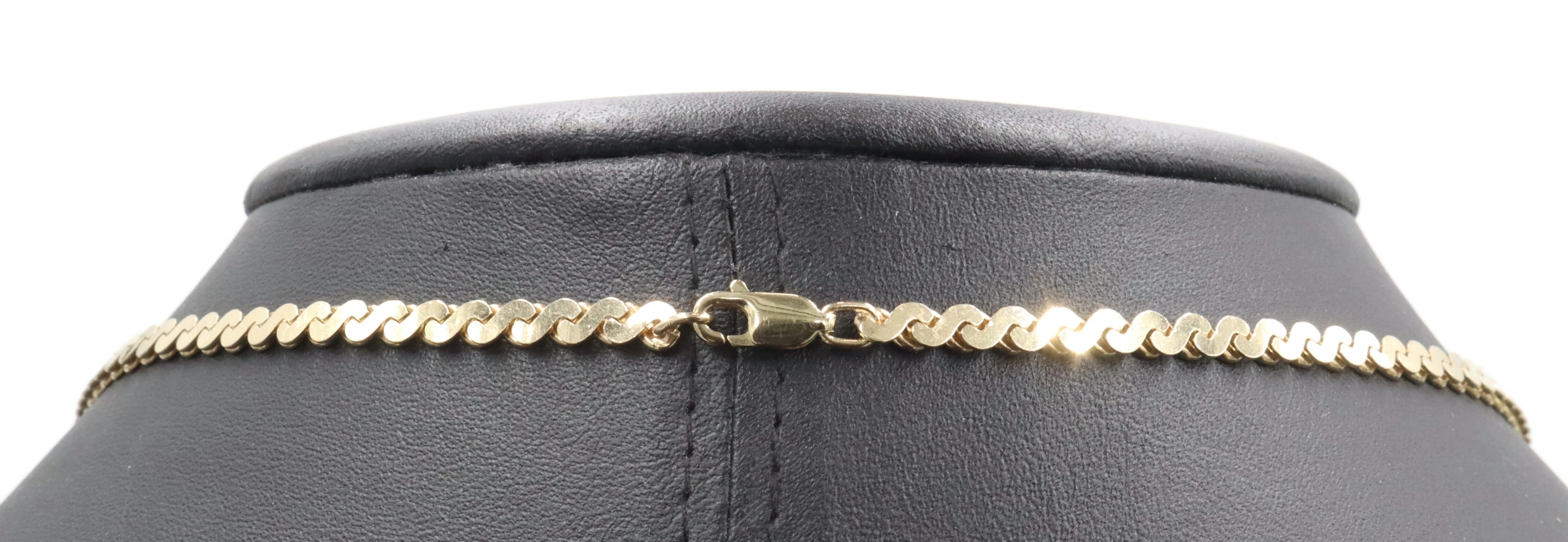 14KT Yellow Gold Classic 3.4mm Serpentine Chain Necklace 19.5" - 19.19g Heavy. This is a 14KT yellow gold serpentine chain necklace with a 10KT yellow gold clasp.