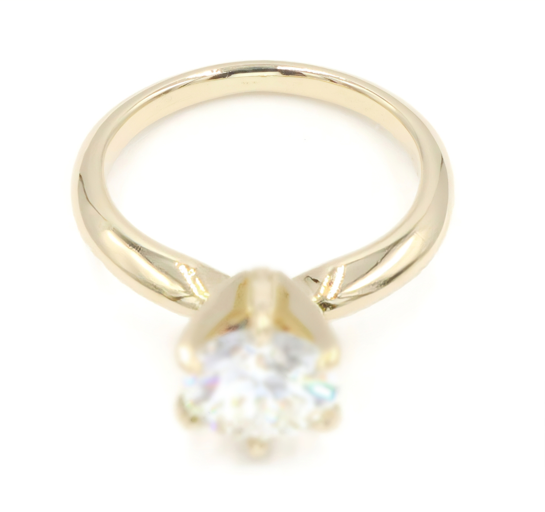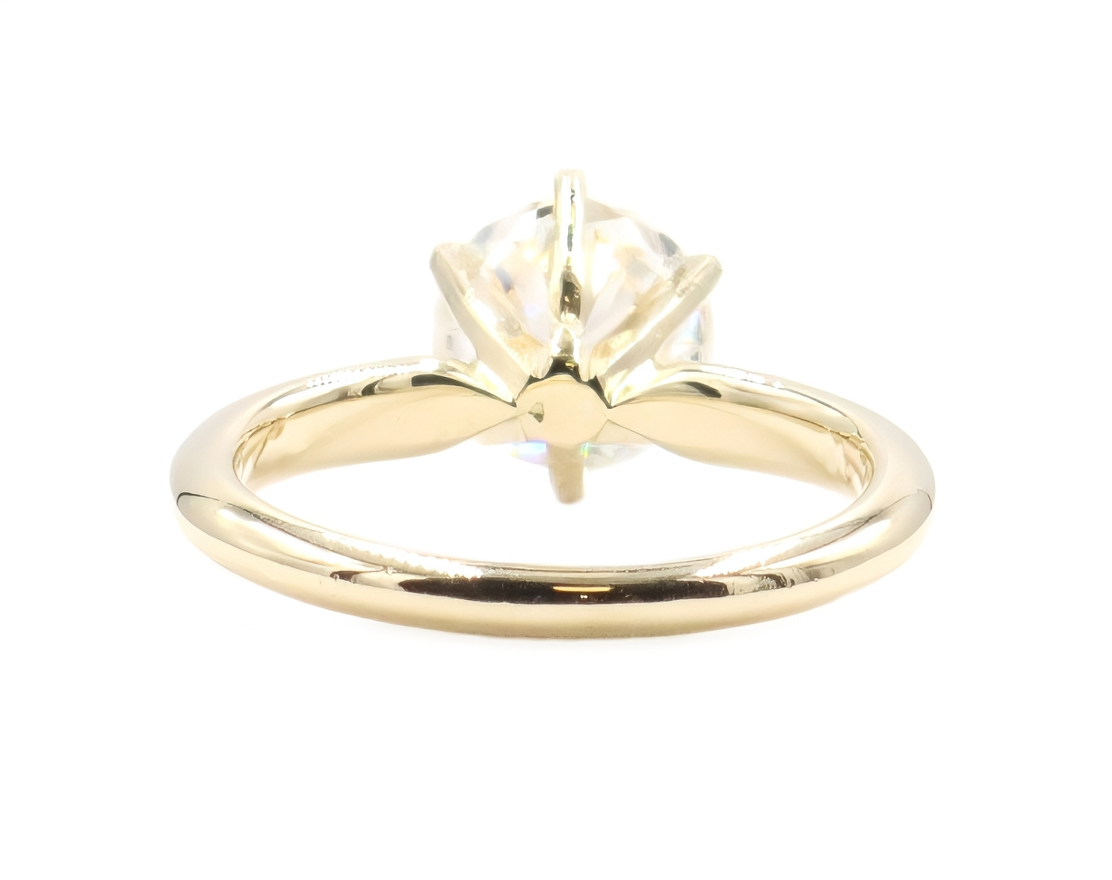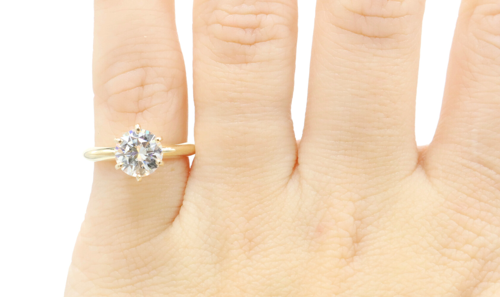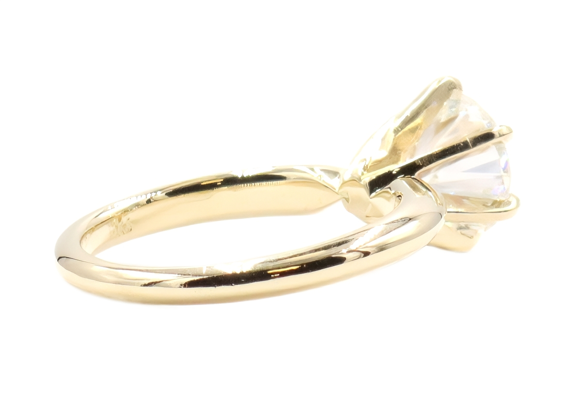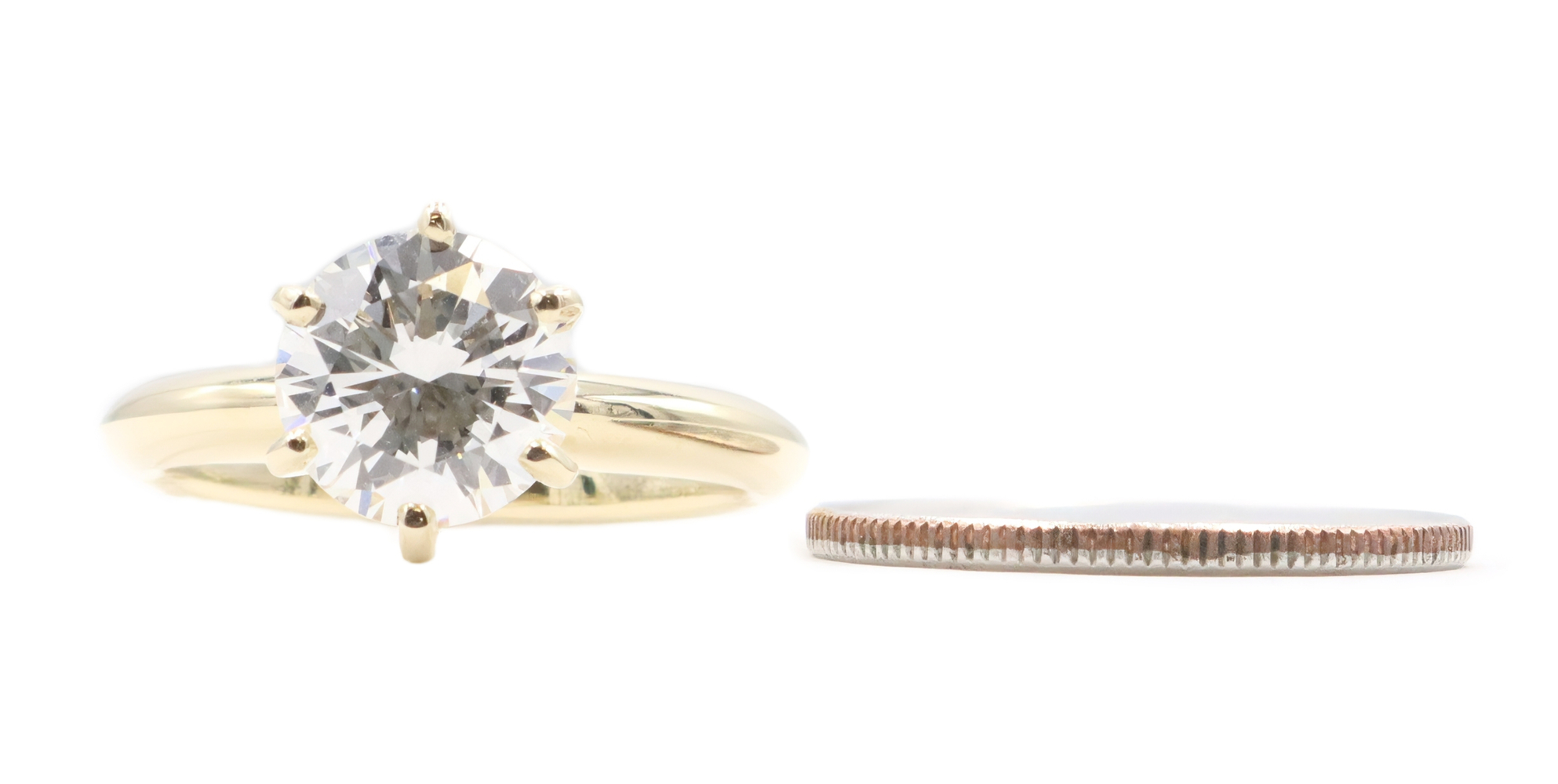 14KT Yellow Gold GIA Graded 1.58 ct. SI-1 H Round Brilliant Solitaire Ring 3.5g. This ring is a size 5. Featuring one stunning round brilliant cut diamond with a carat weight of 1.58 ct. This diamond measures approximately 7.720 mm x 7.680mm x 4.500mm with a clarity range of SI-1, H color and a very good cut. The GIA report number 5232808380 is laser inscribed on the of the gridle.